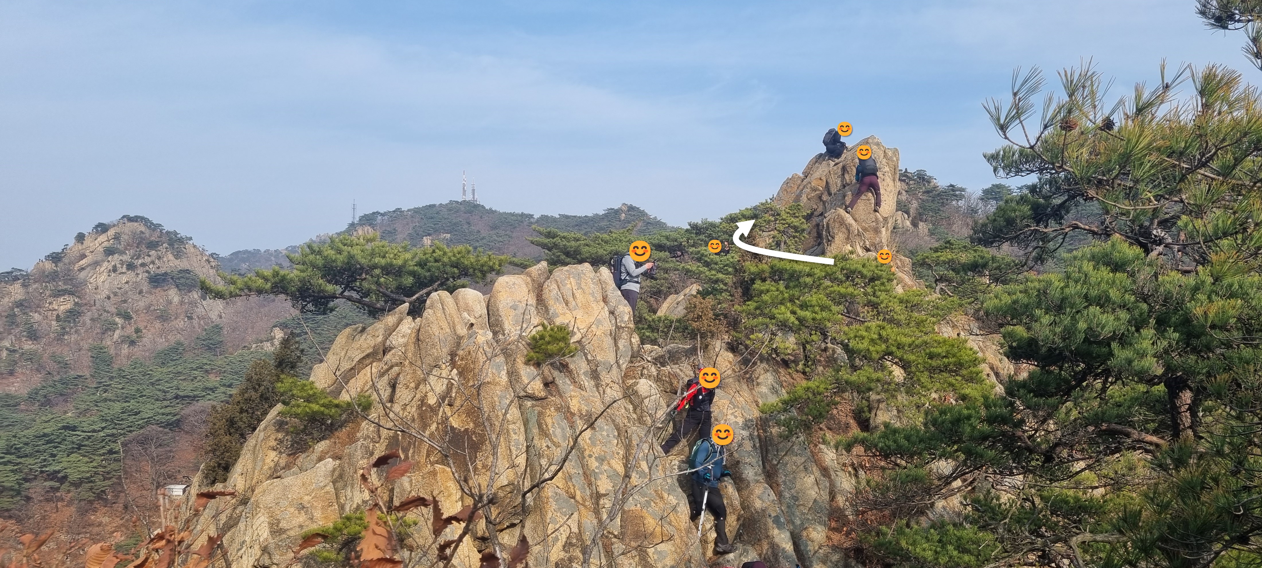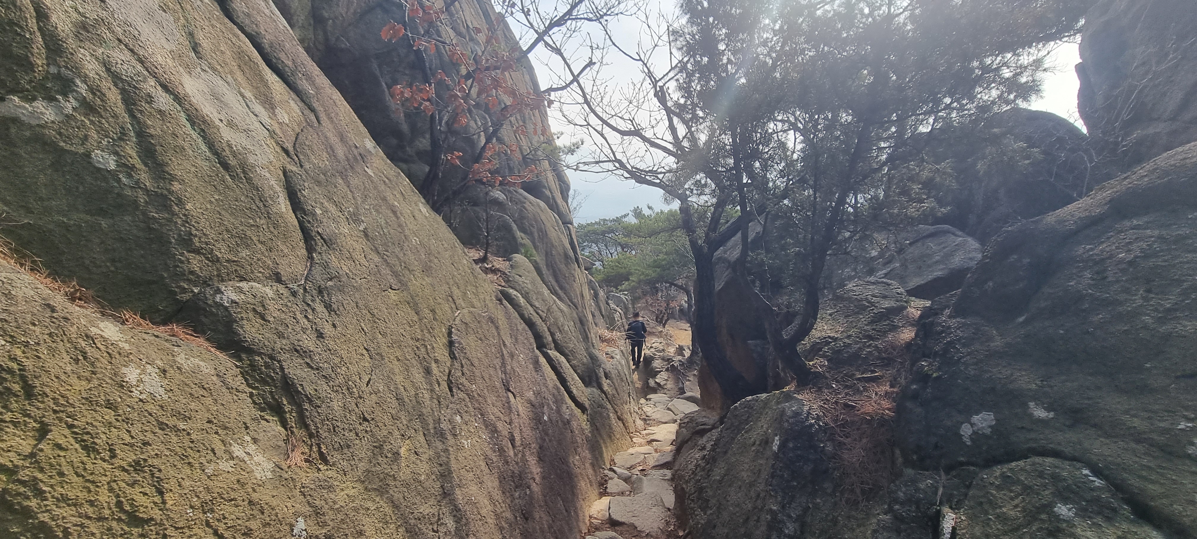 사진 속 두 분의 등산객처럼, 바위 봉우리를 다 타고 넘어갈 수도 있지만,