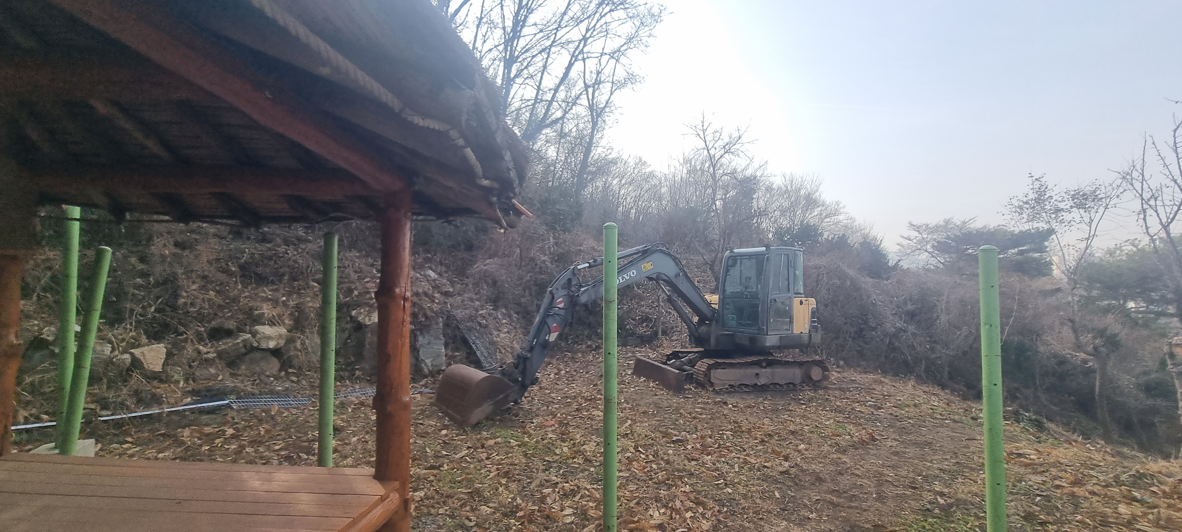 캠핑장 마트를 지나, 공사중인 어설픈 정자 옆을 뚫고 올라온 셈인데......😑