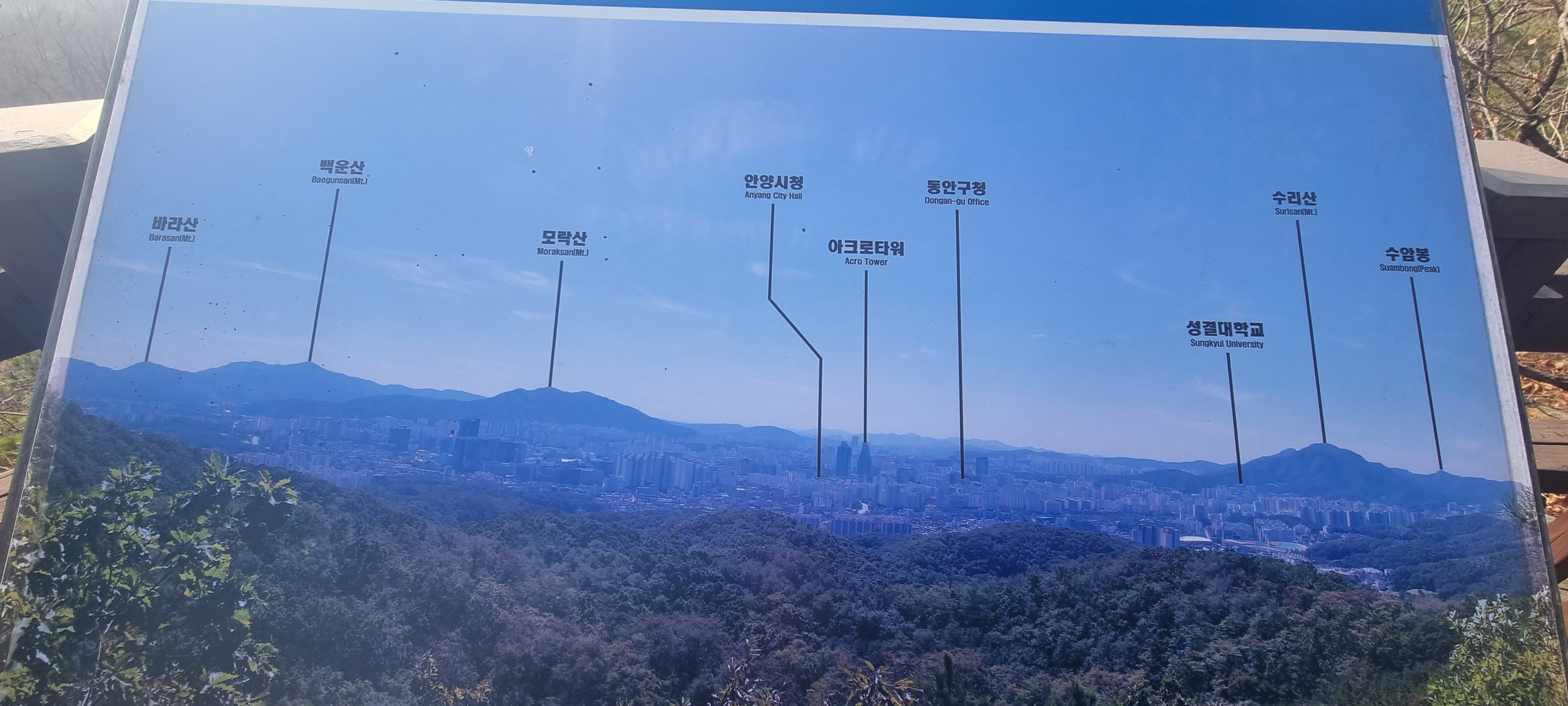 식사하면서, 눈앞에 보이는 국기봉과 관양능선! 😊