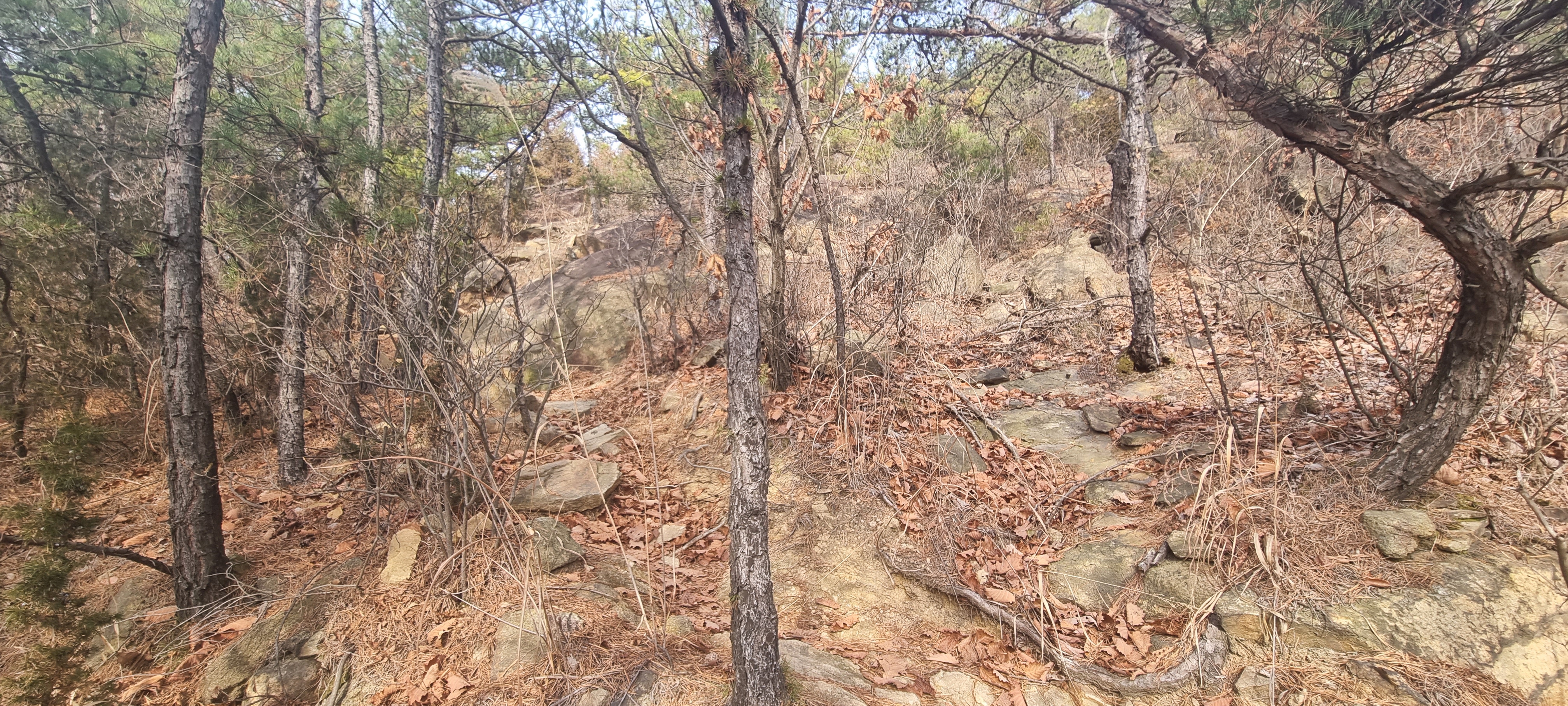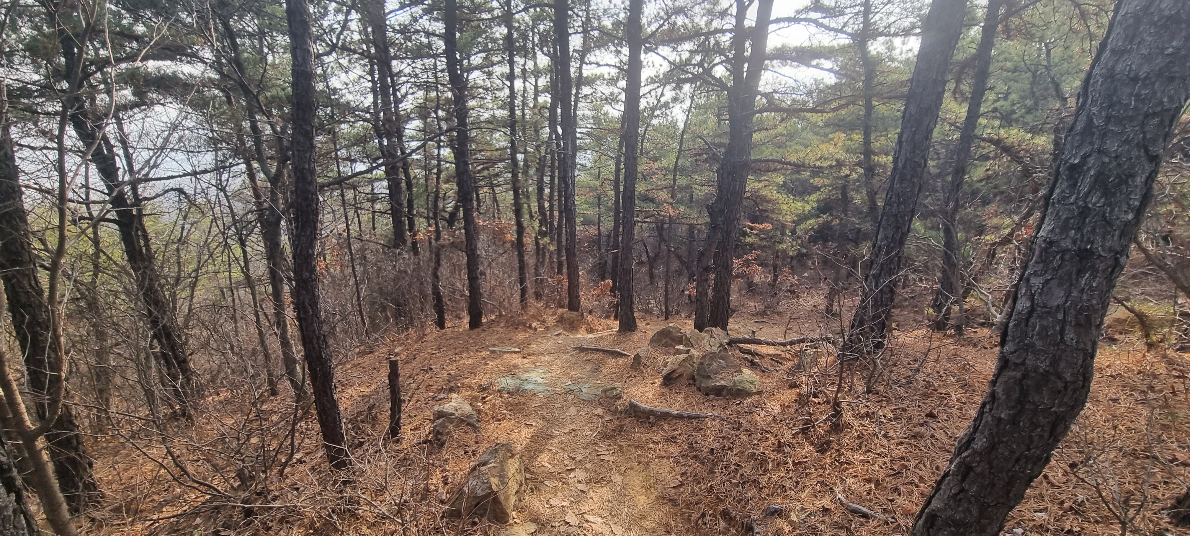 캠핑장 철책을 따라 가면 길이 끊기고. 우측으로 무작정 (언덕) 산등성이를 올라야 합니다.