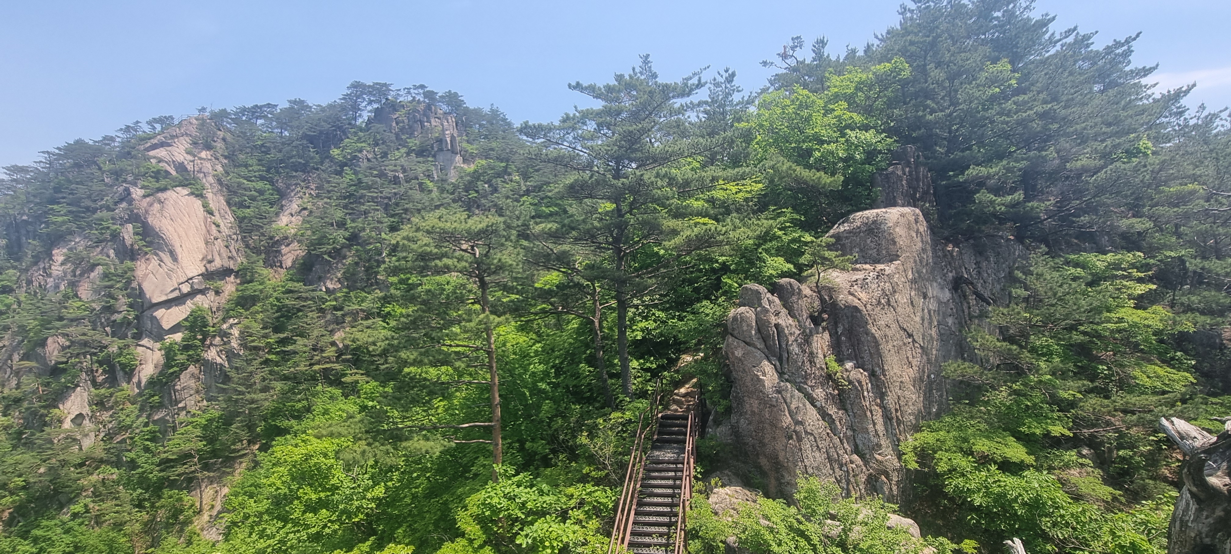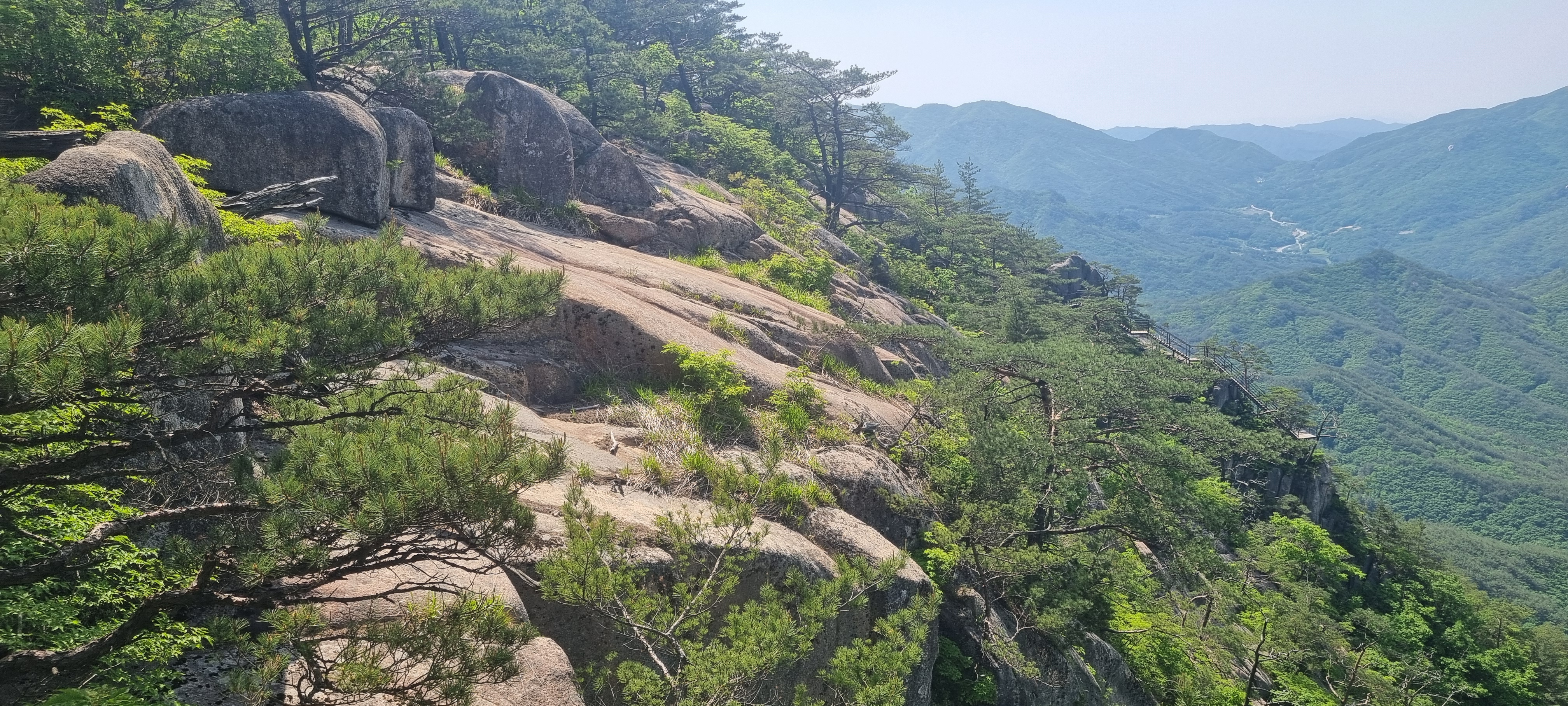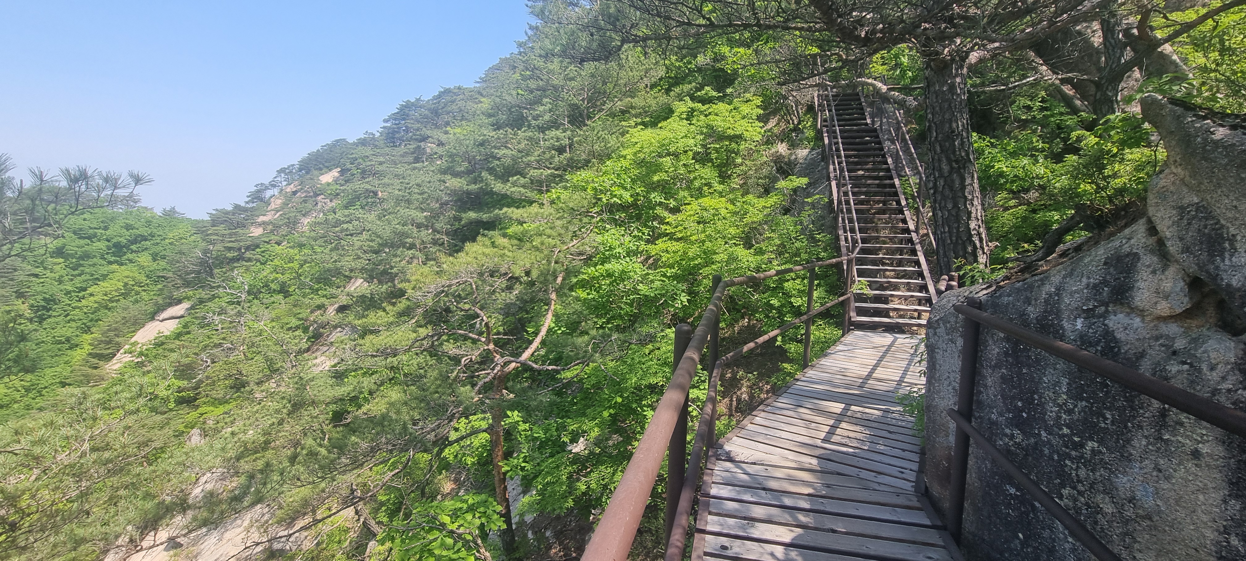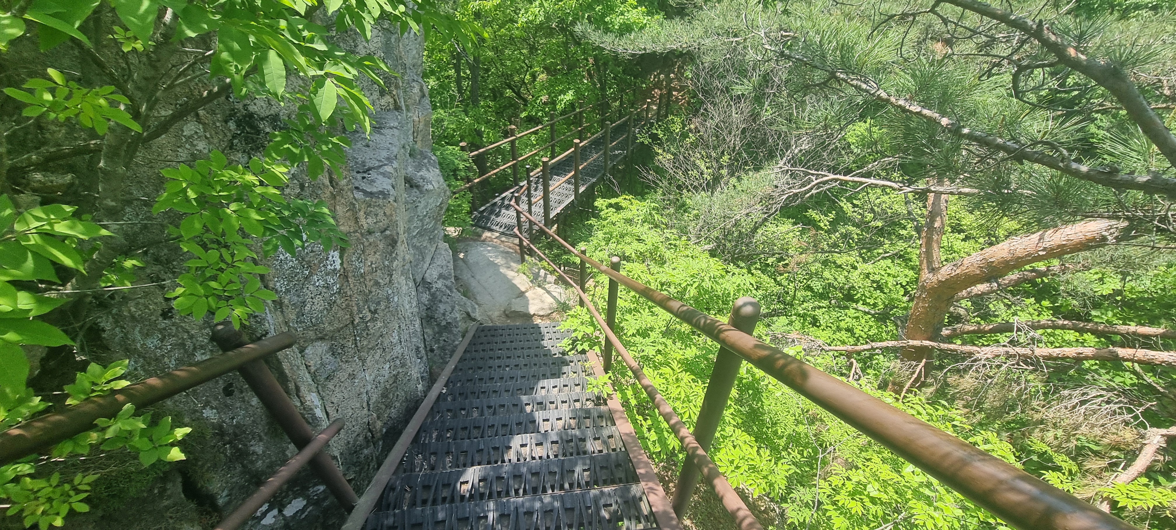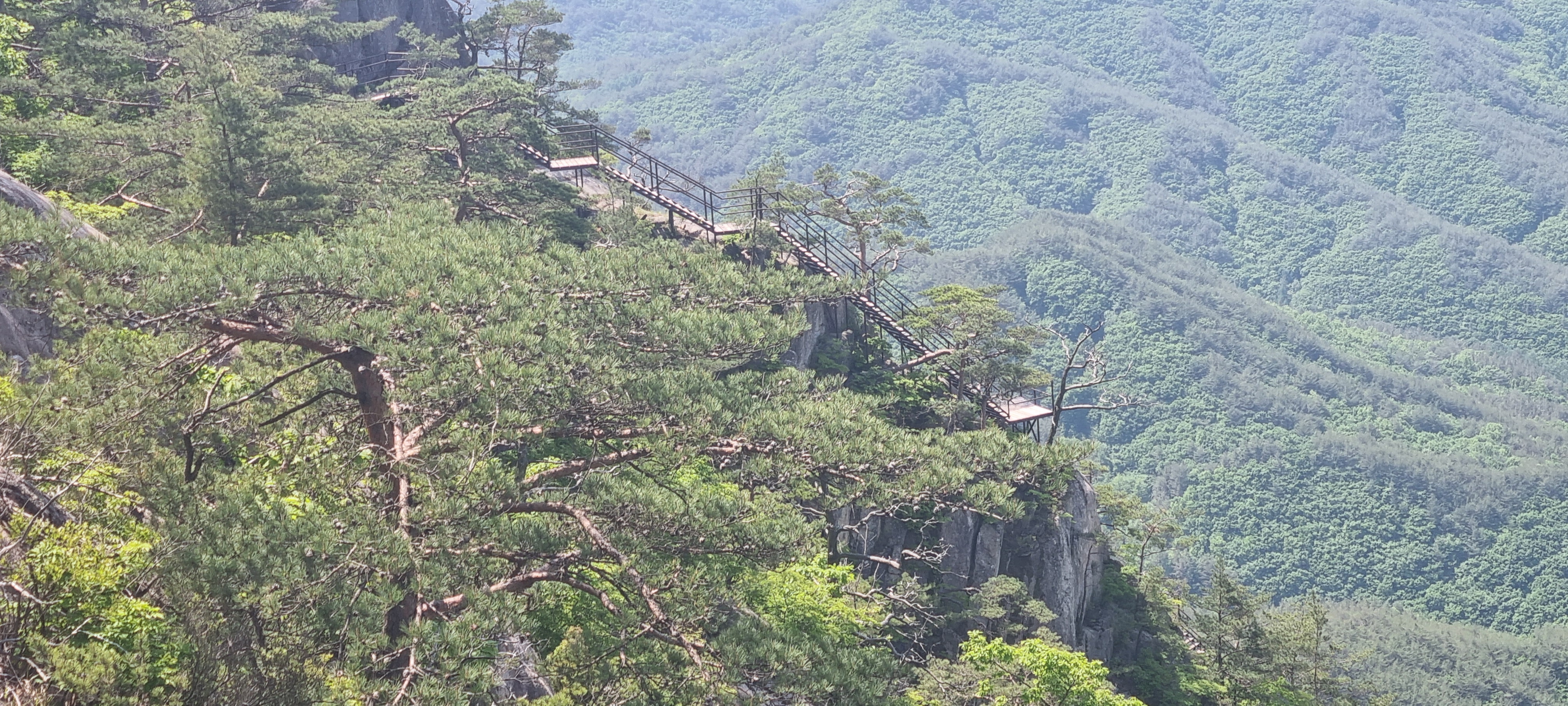 제봉 코스로 올라올 때 보았던, 바위 봉우리를 휘감고 있던 계단 데크길이