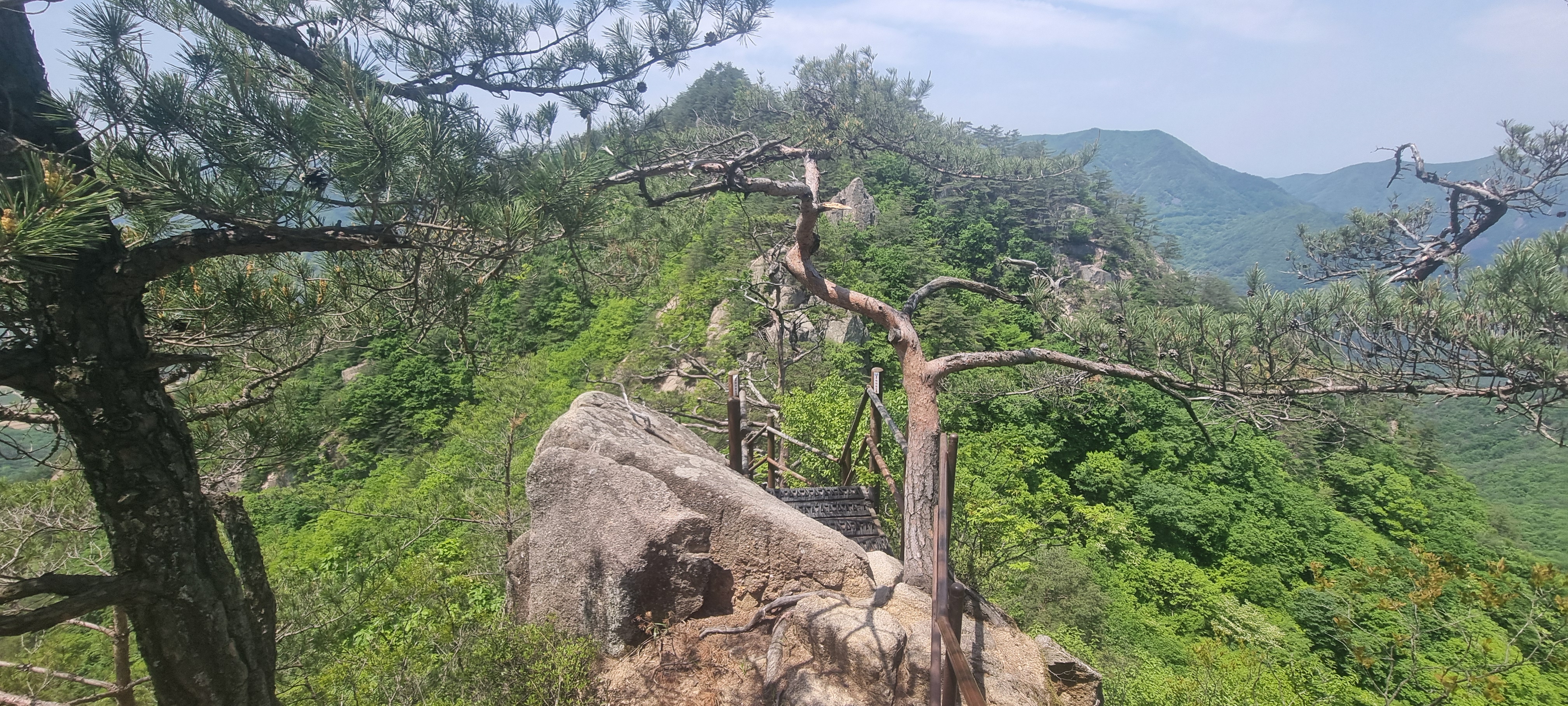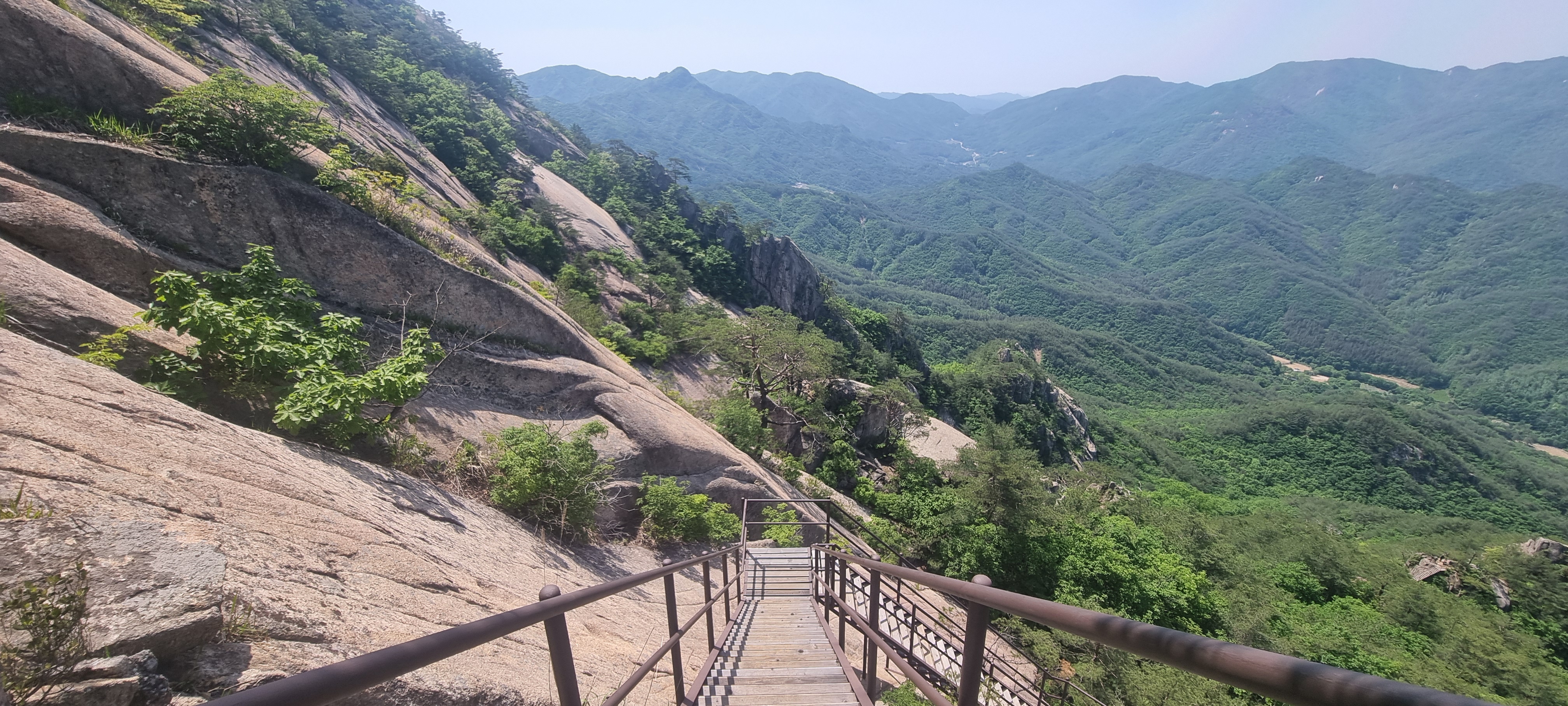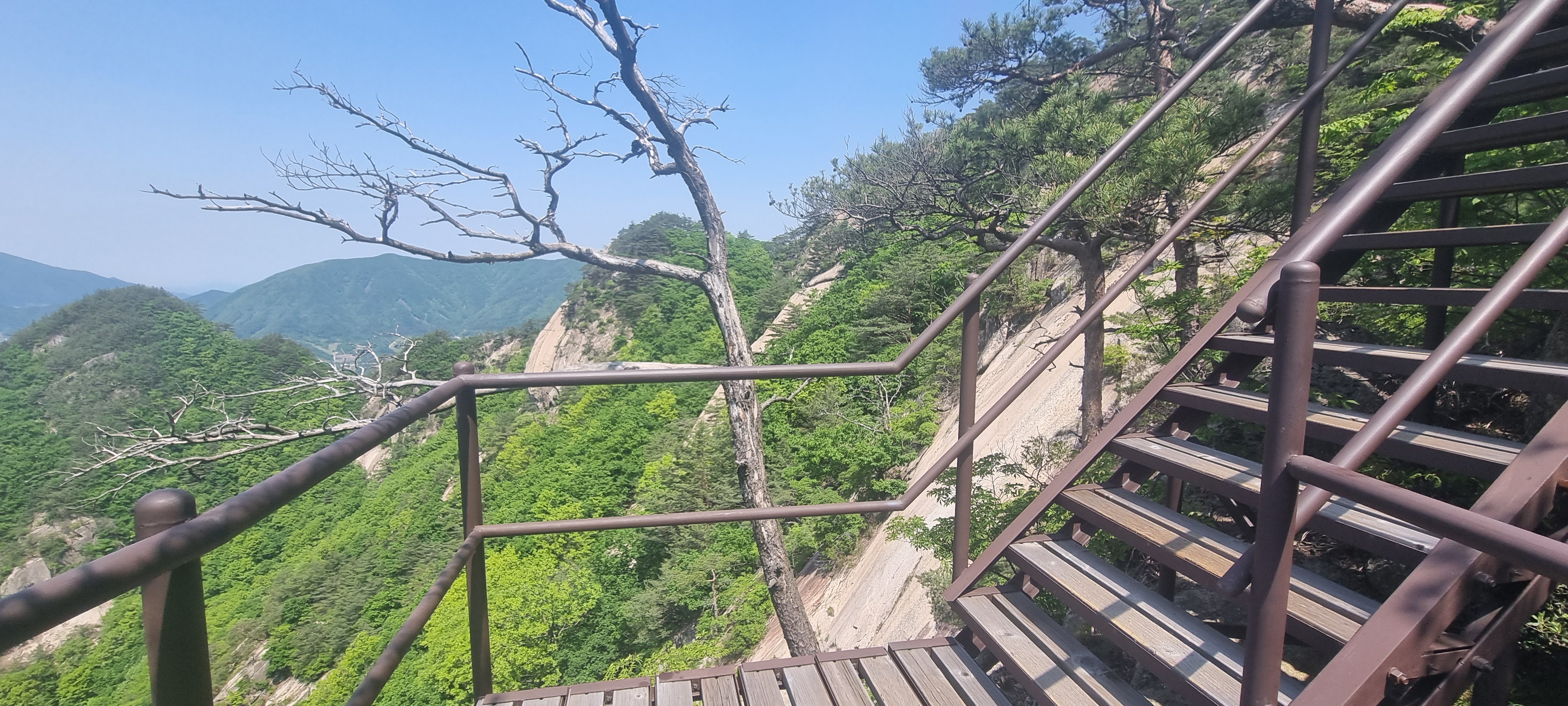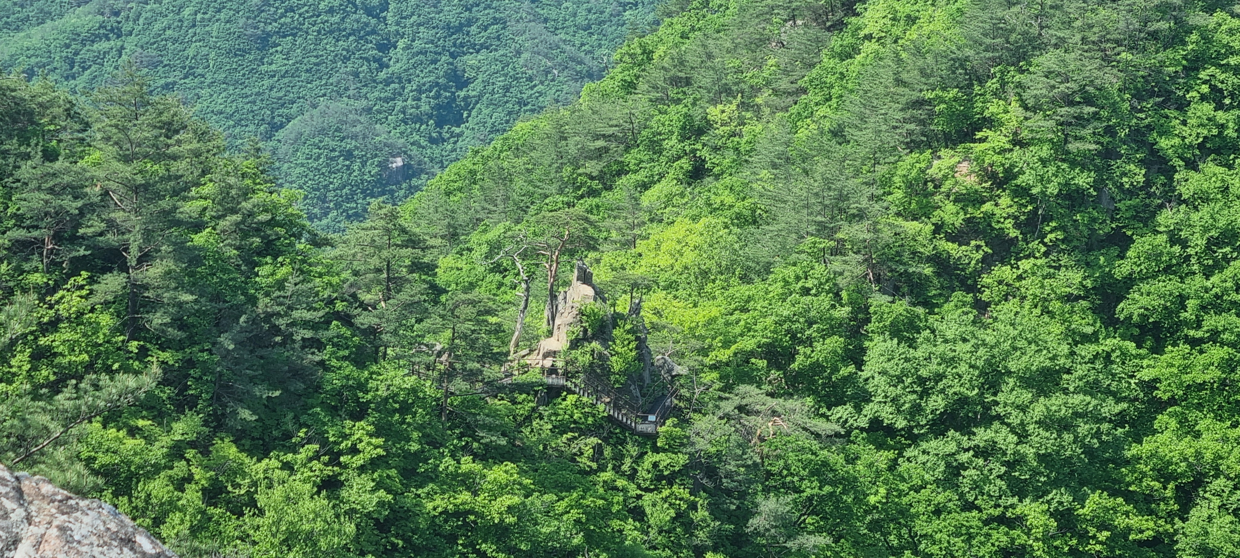 제봉 코스로 올라올 때 보았던, 바위 봉우리를 휘감고 있던 계단 데크길이