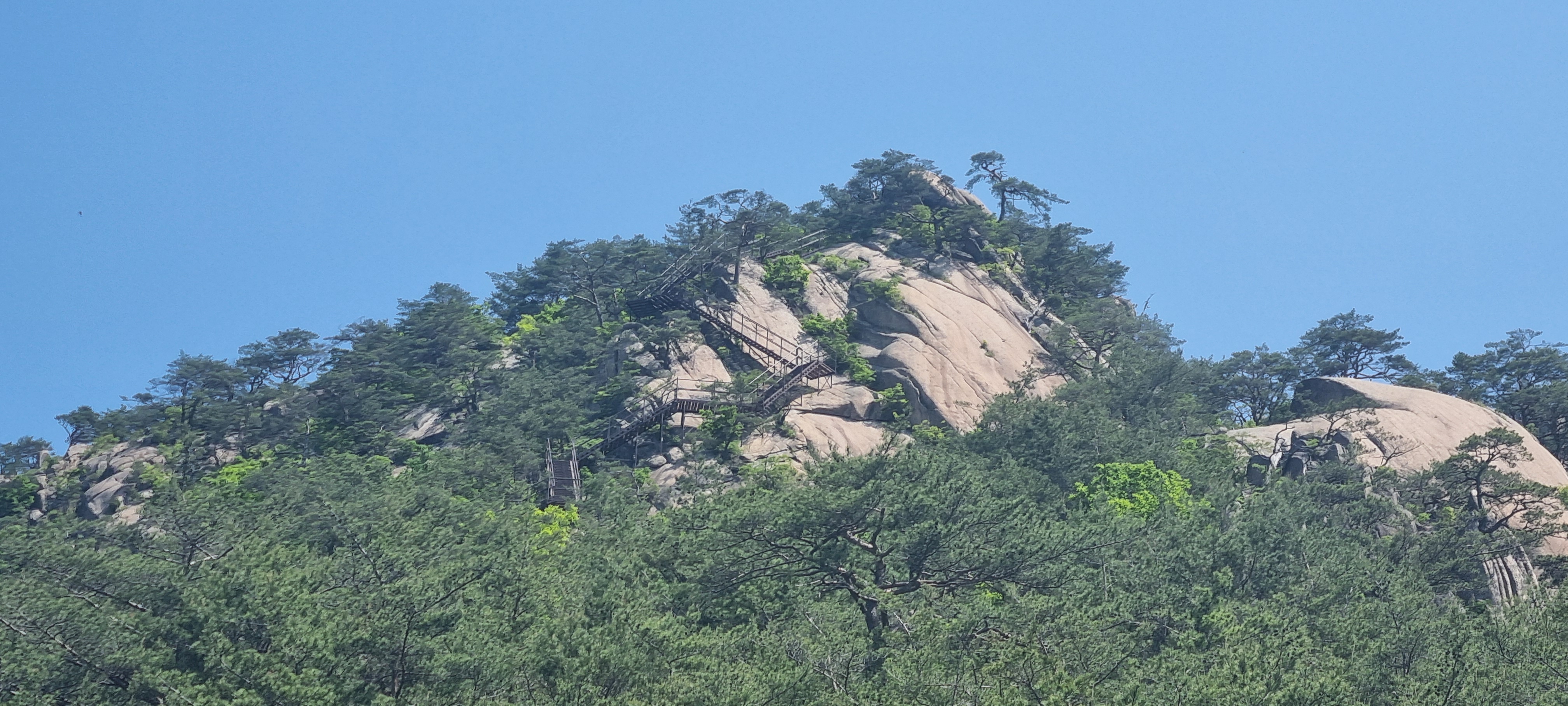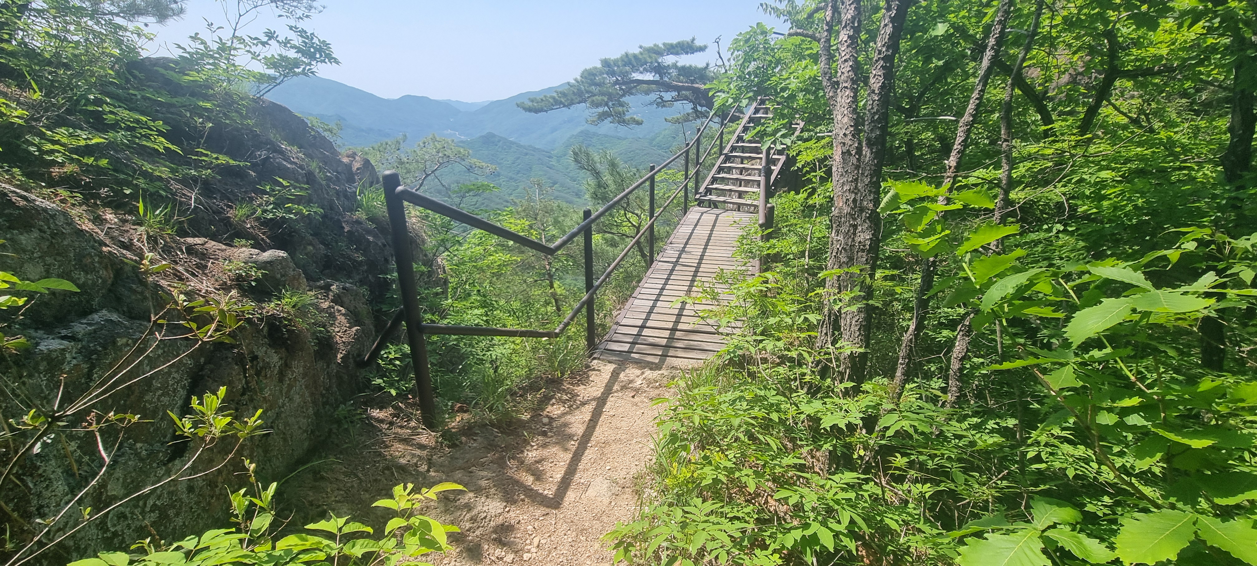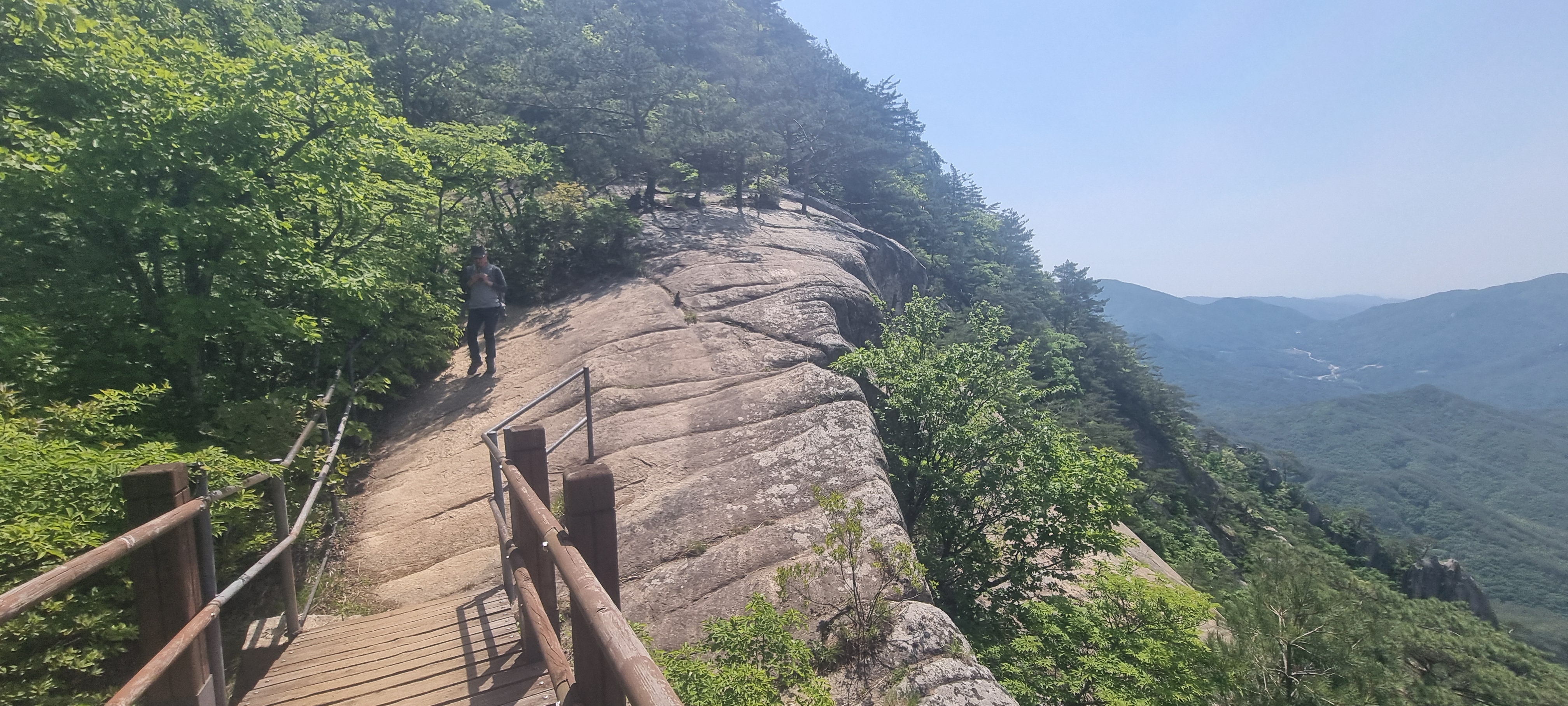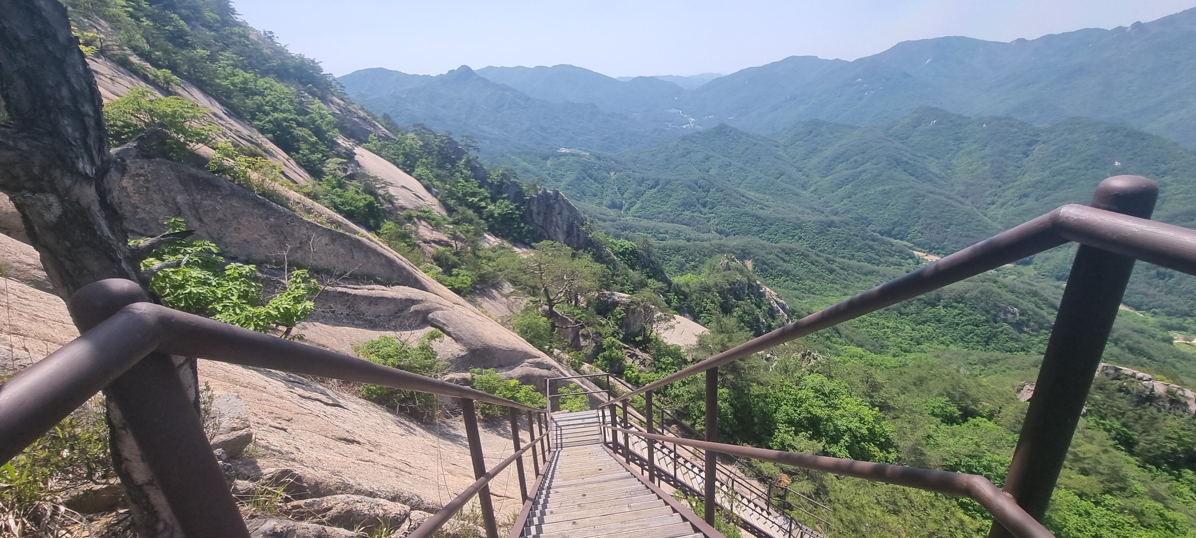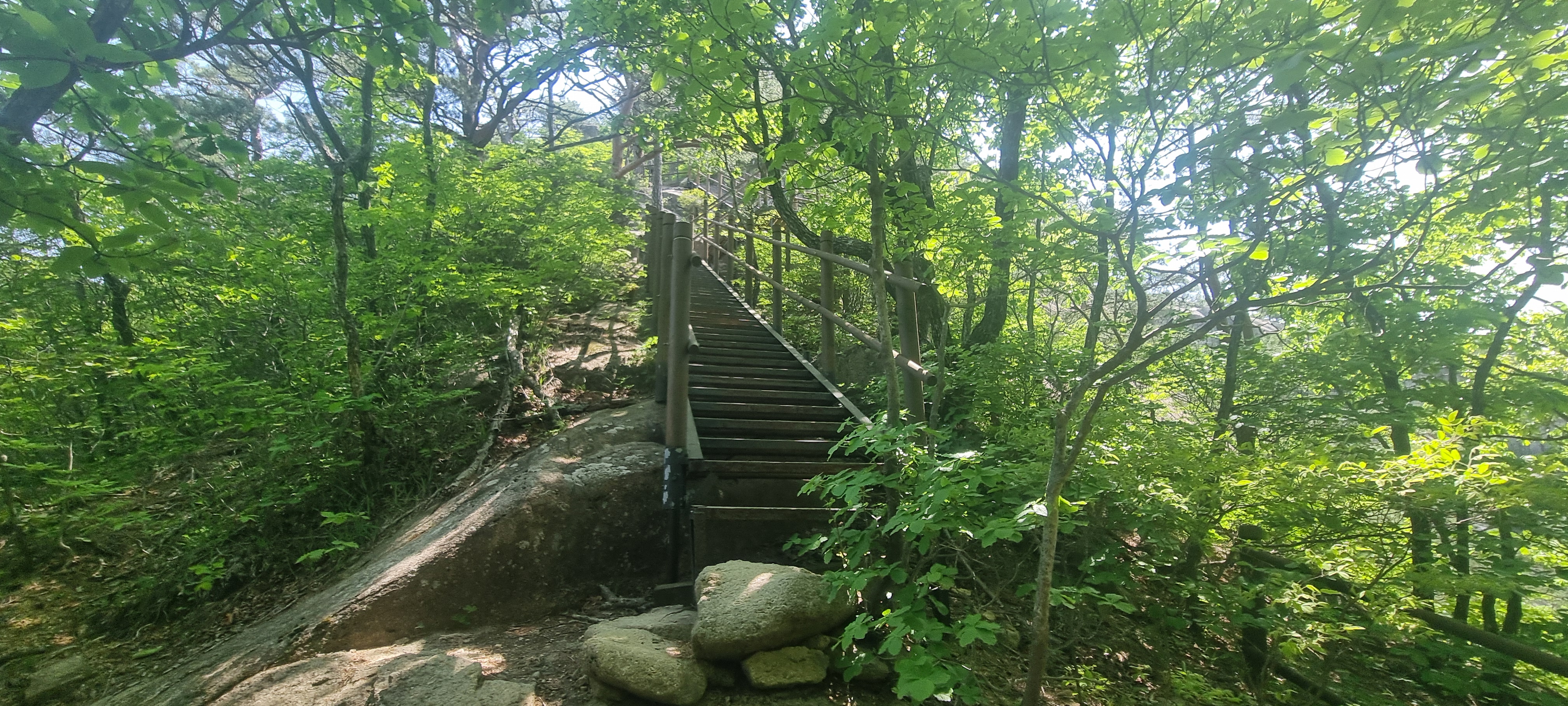 제봉 코스로 올라올 때 보았던, 바위 봉우리를 휘감고 있던 계단 데크길이