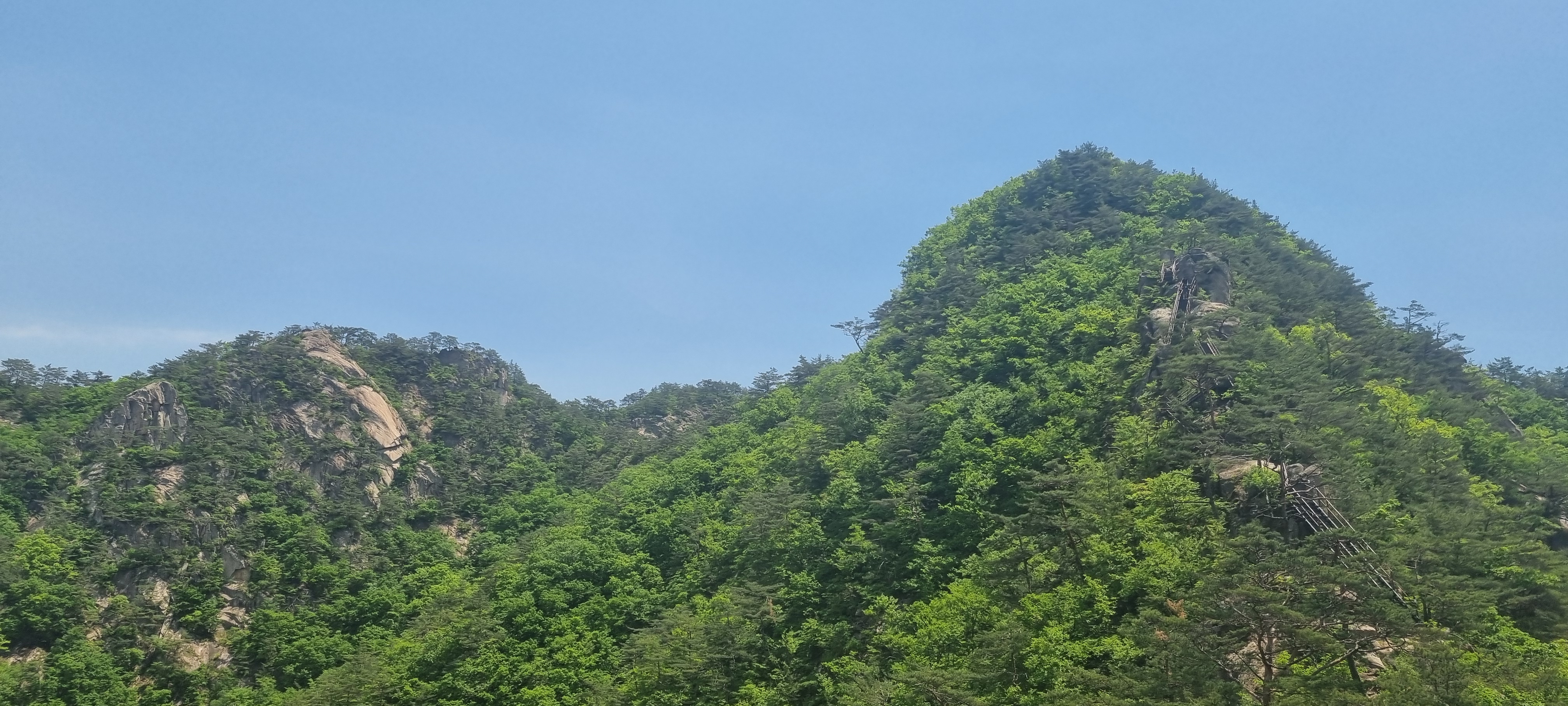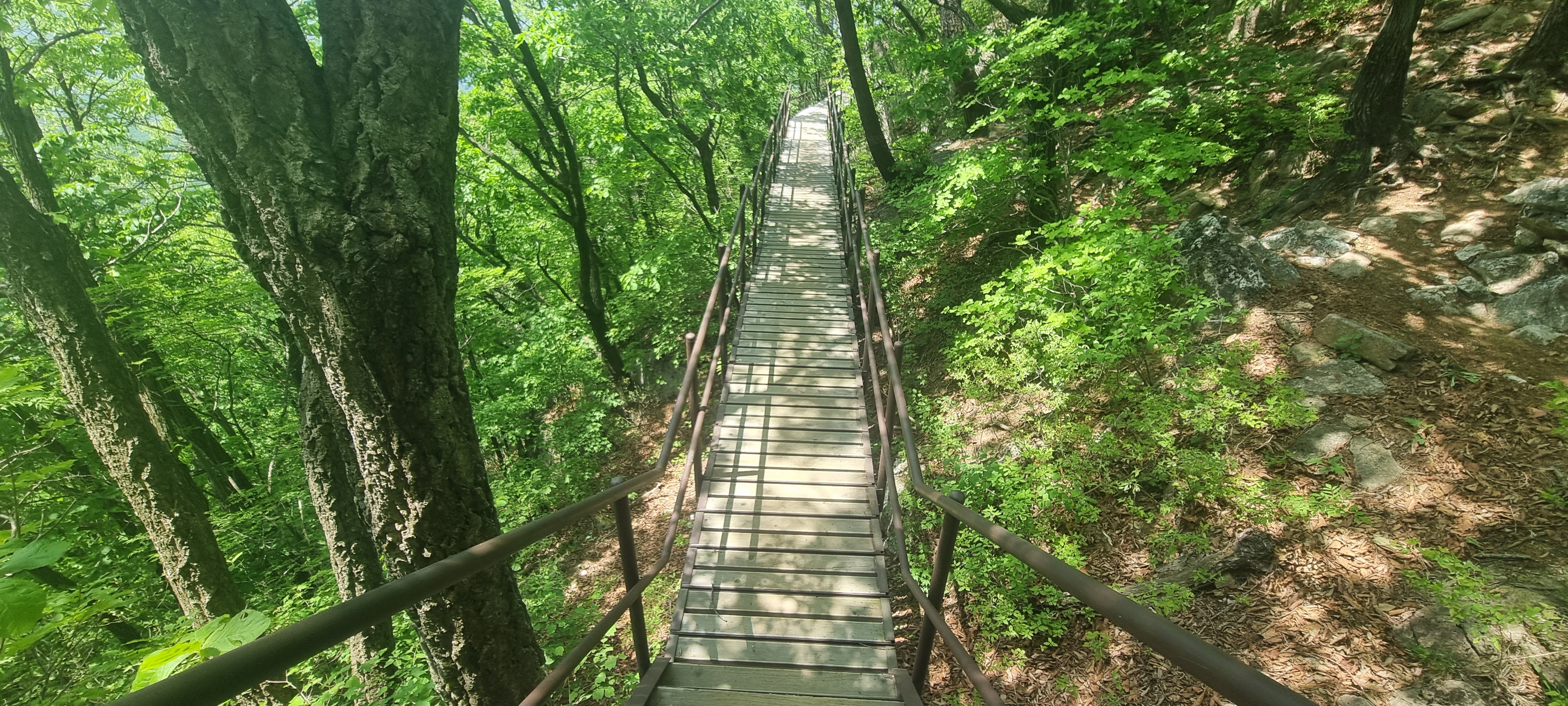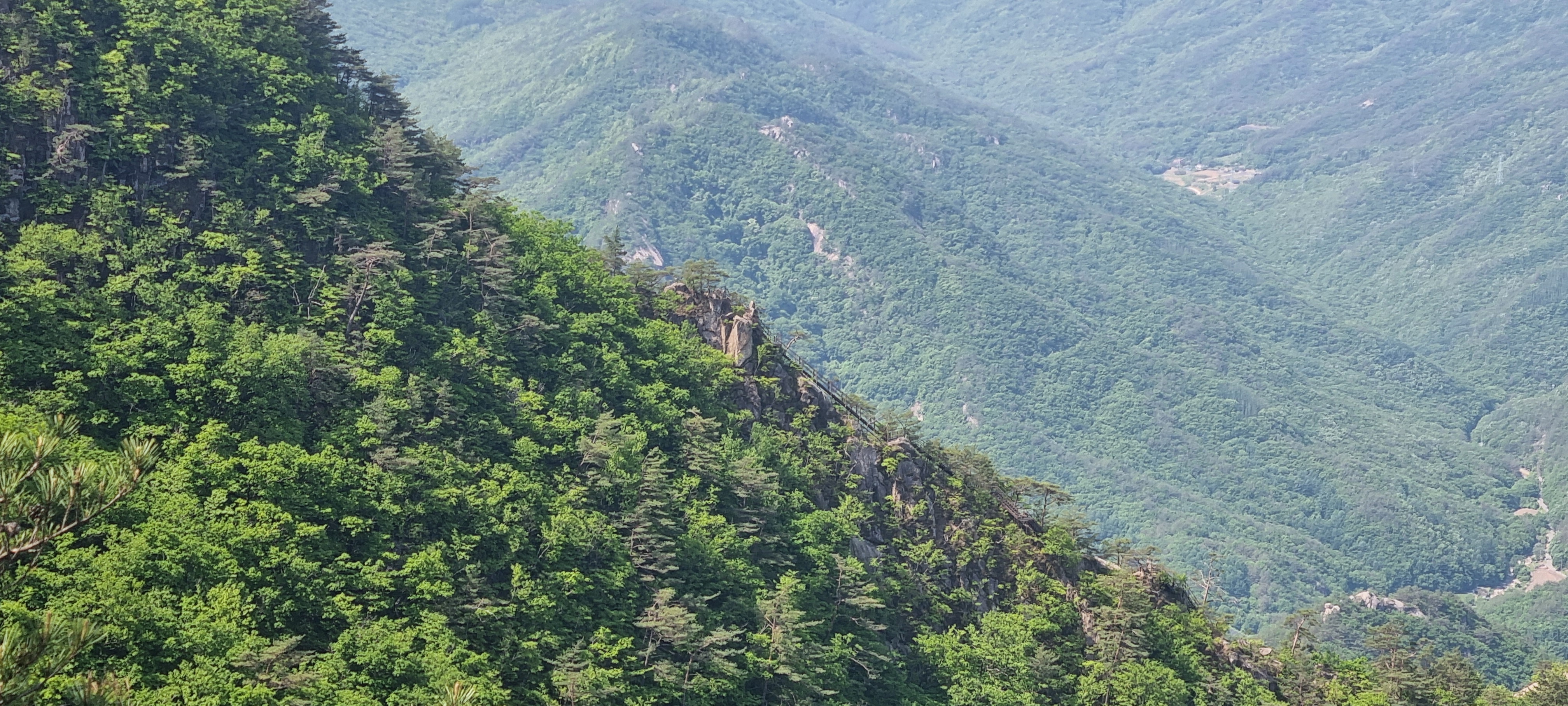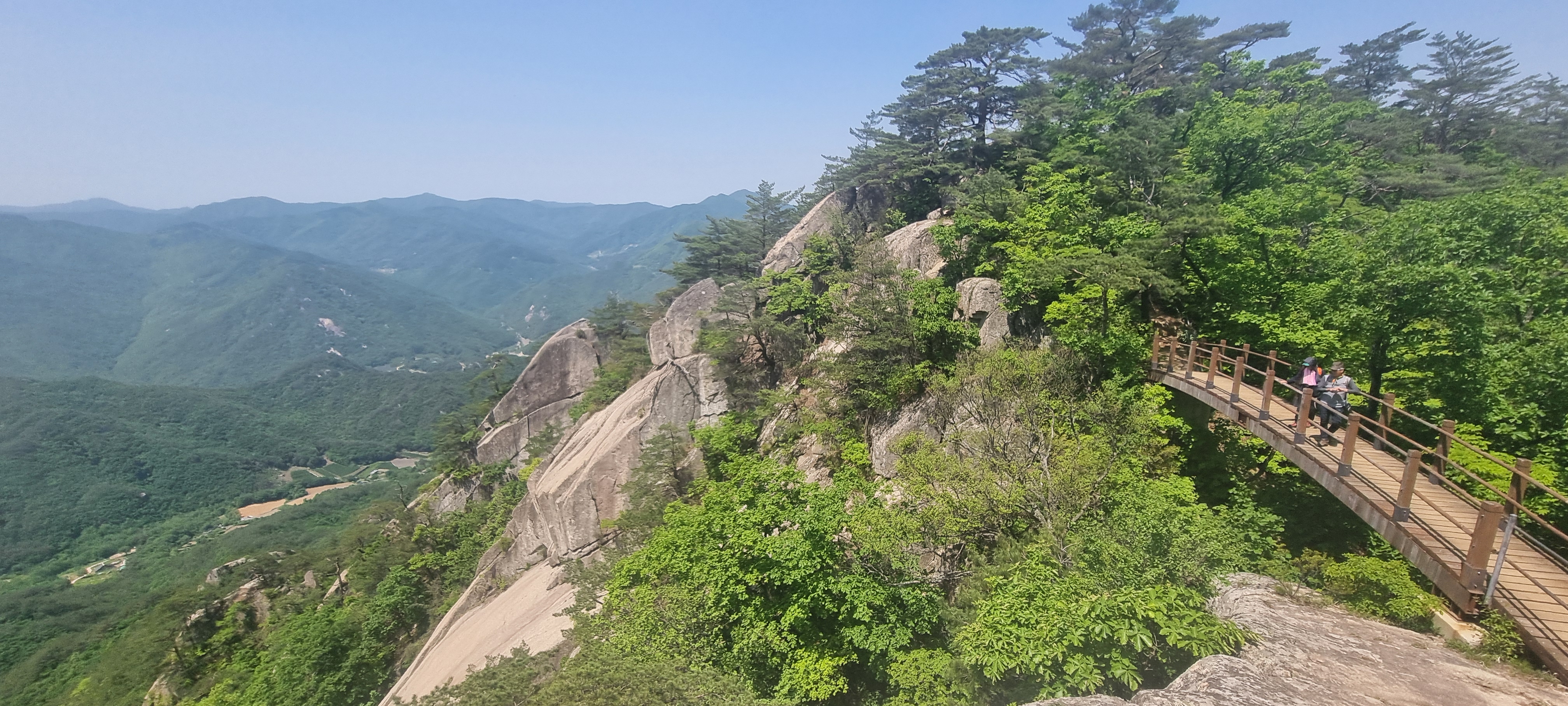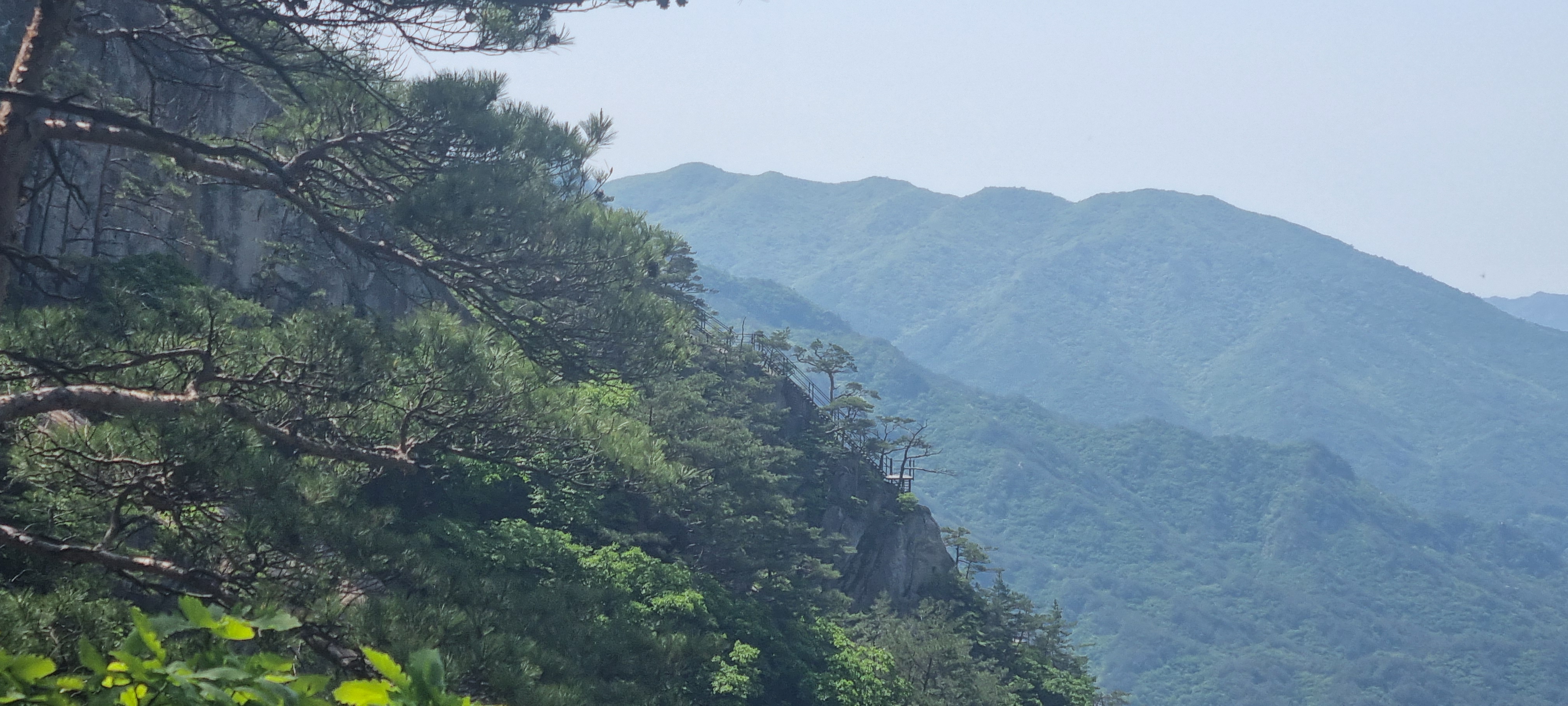 제봉 코스로 올라올 때 보았던, 바위 봉우리를 휘감고 있던 계단 데크길이