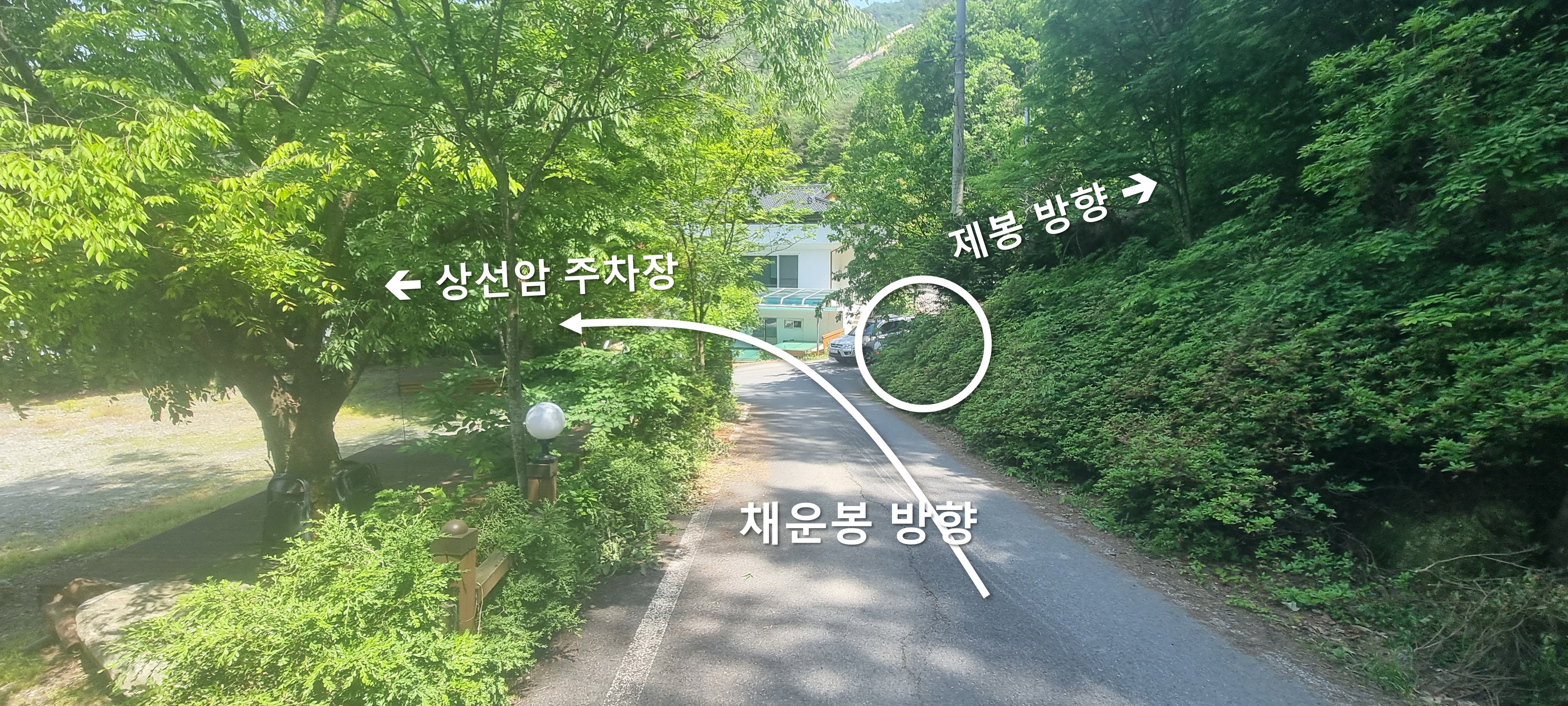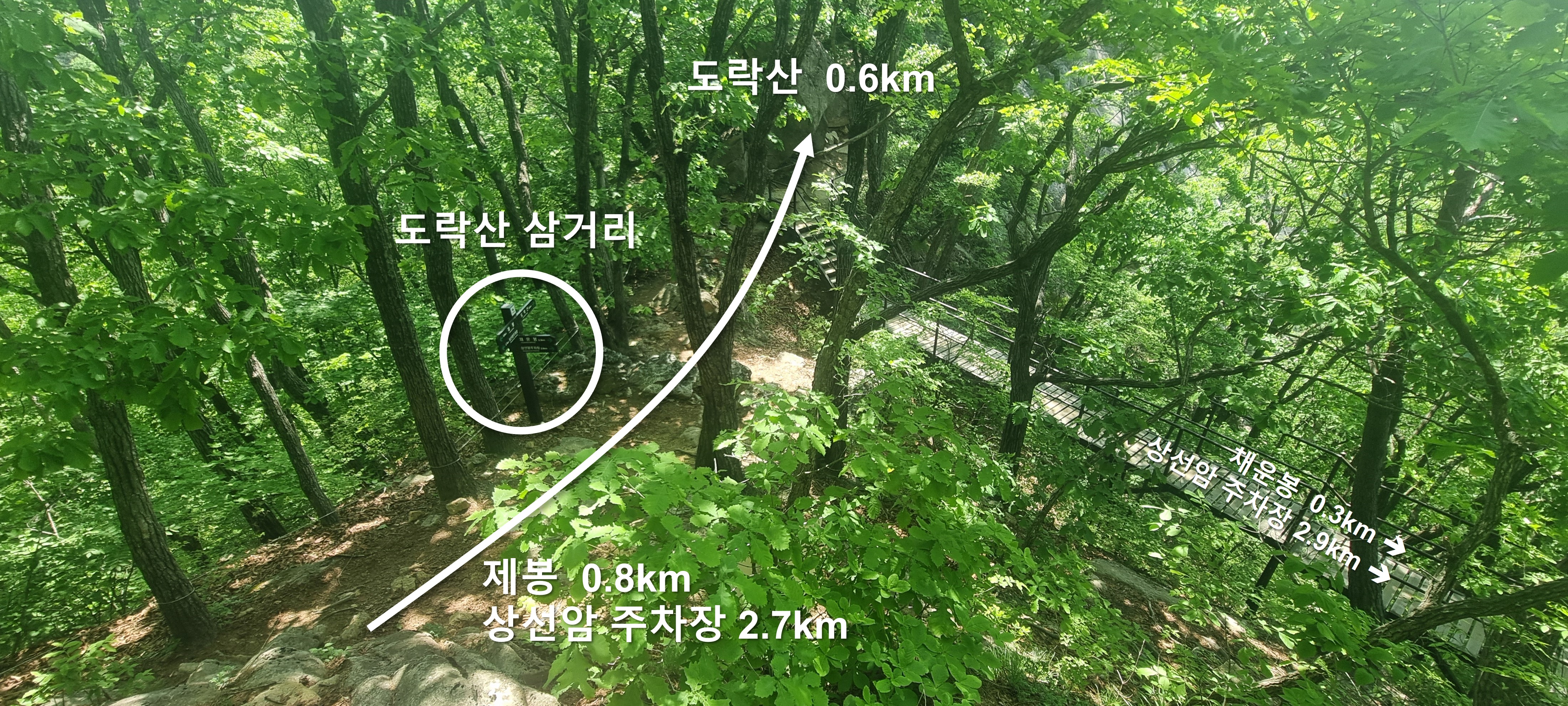 오른쪽 갈랫길은 채운봉 코스 하산길.