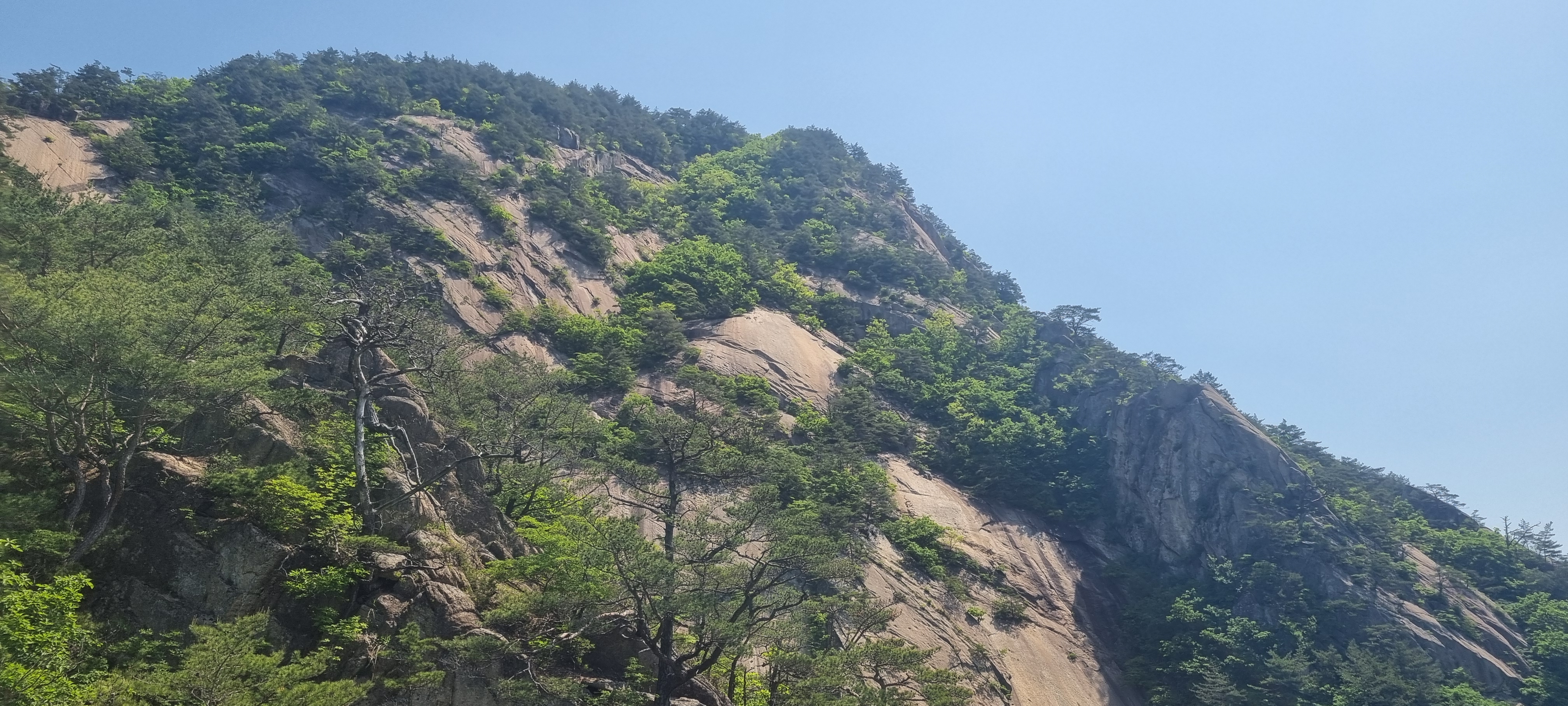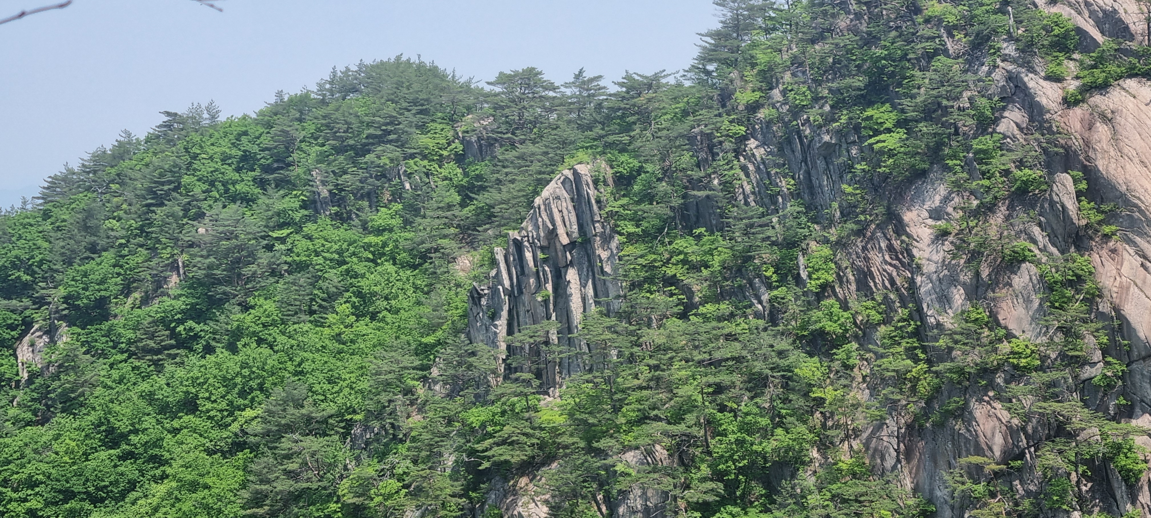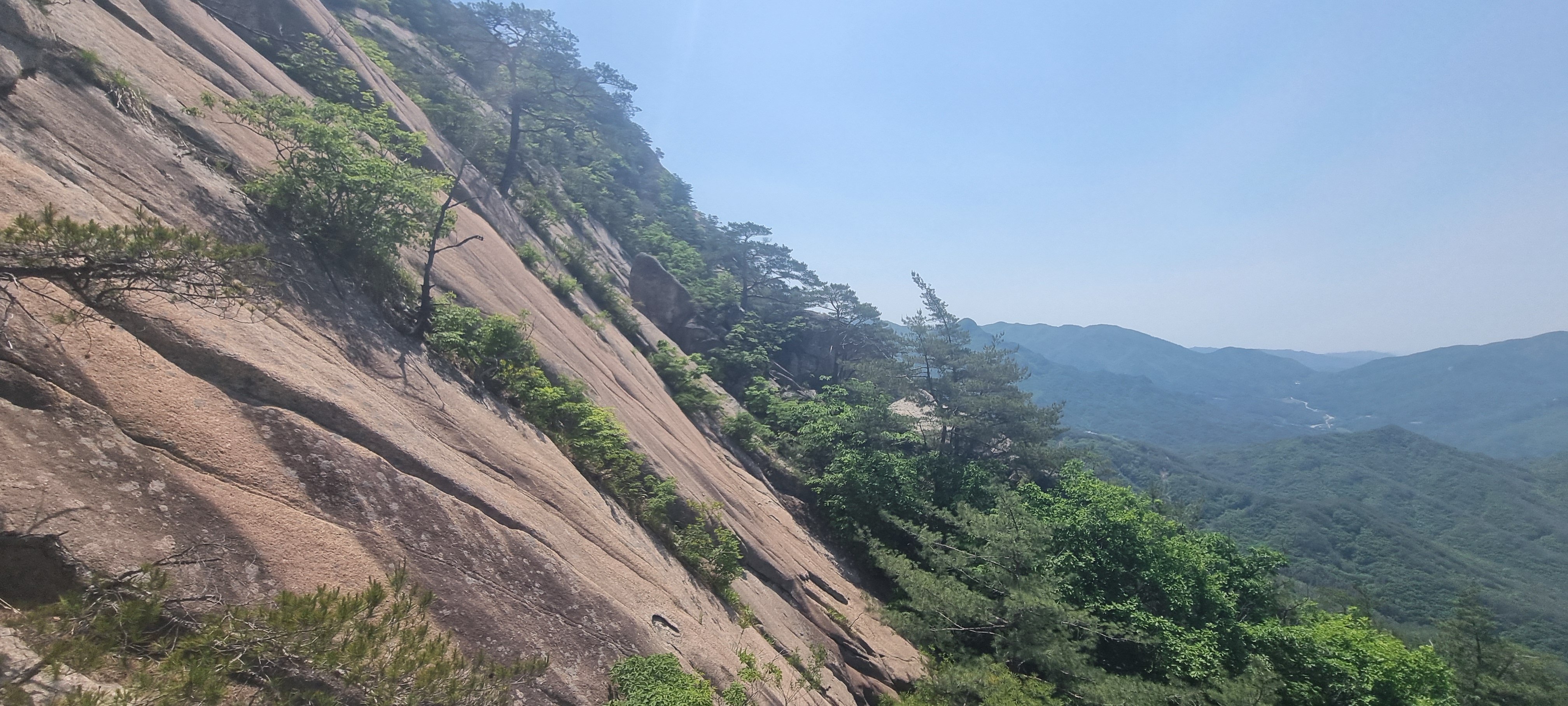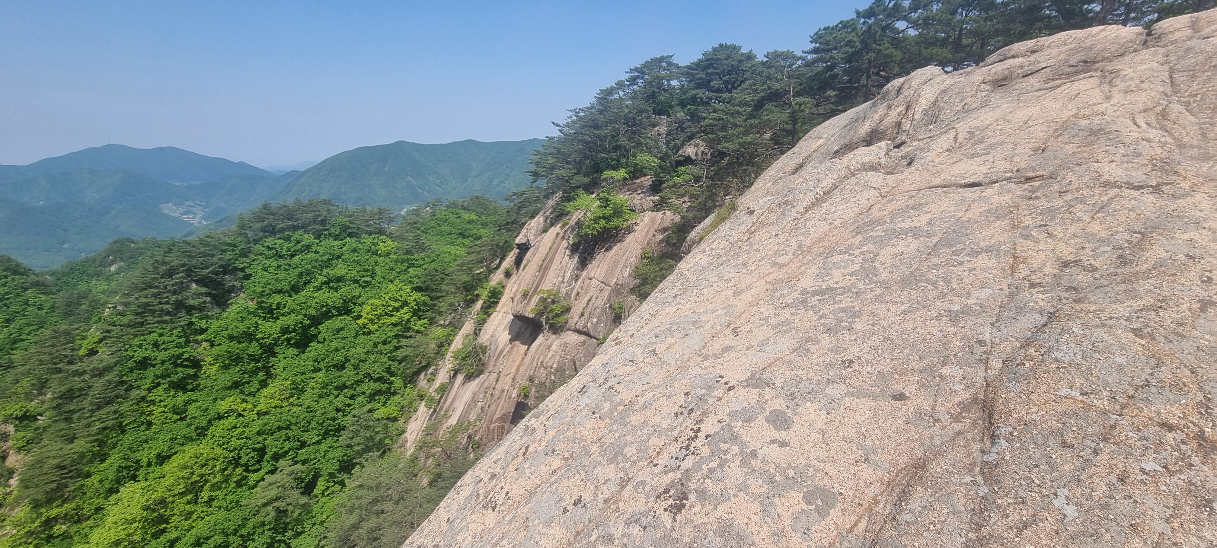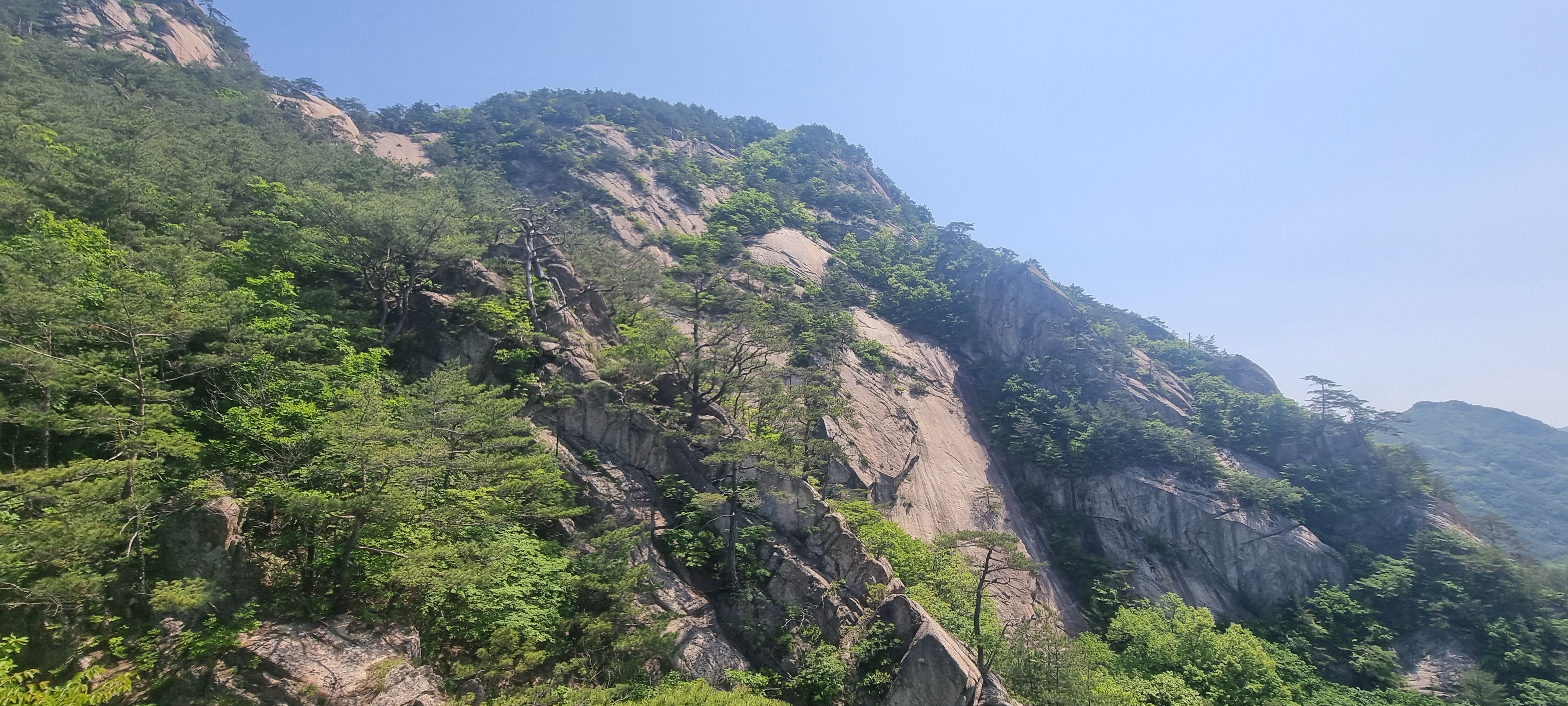 한 동안 슬랩 윗 부분에서 구경을 한 뒤. 도락산 정상 방향으로 다시 진행.