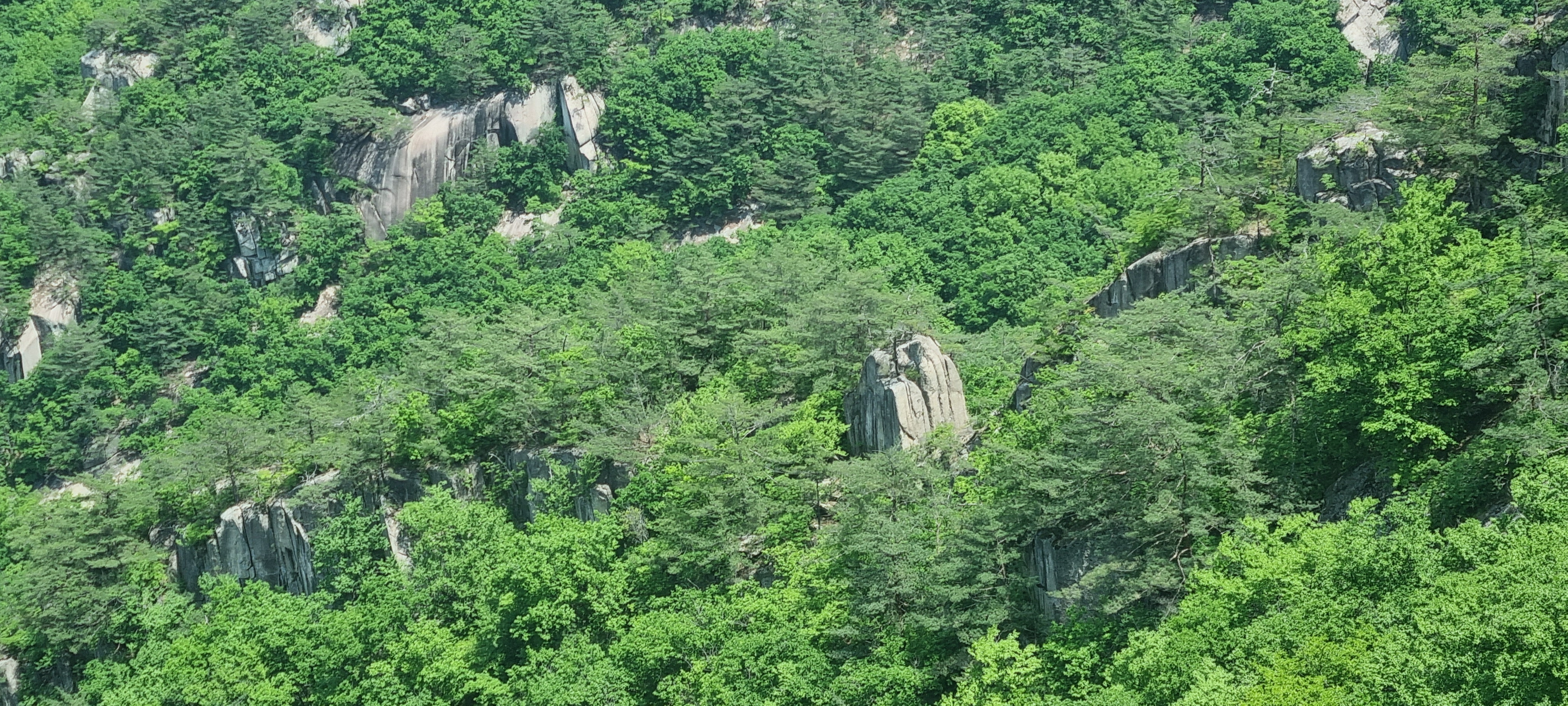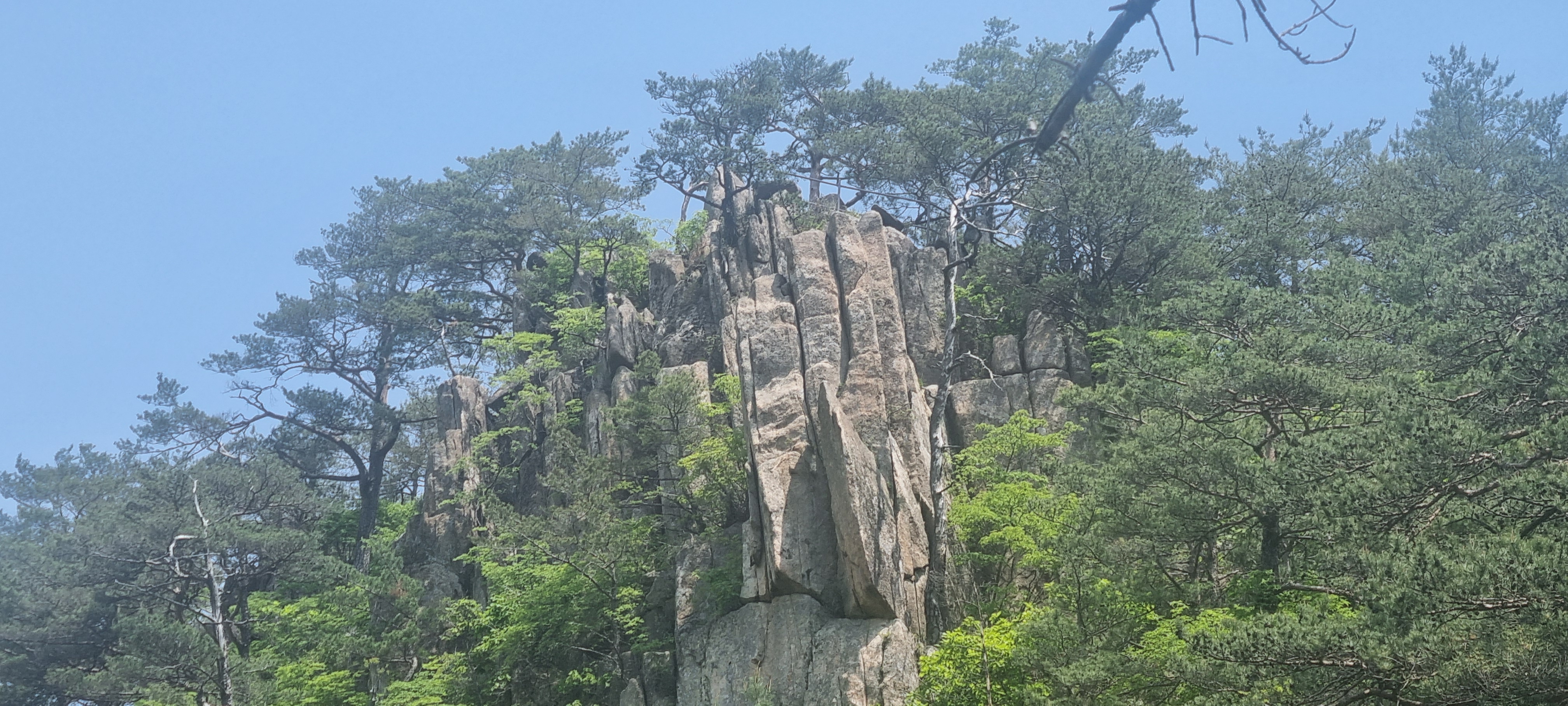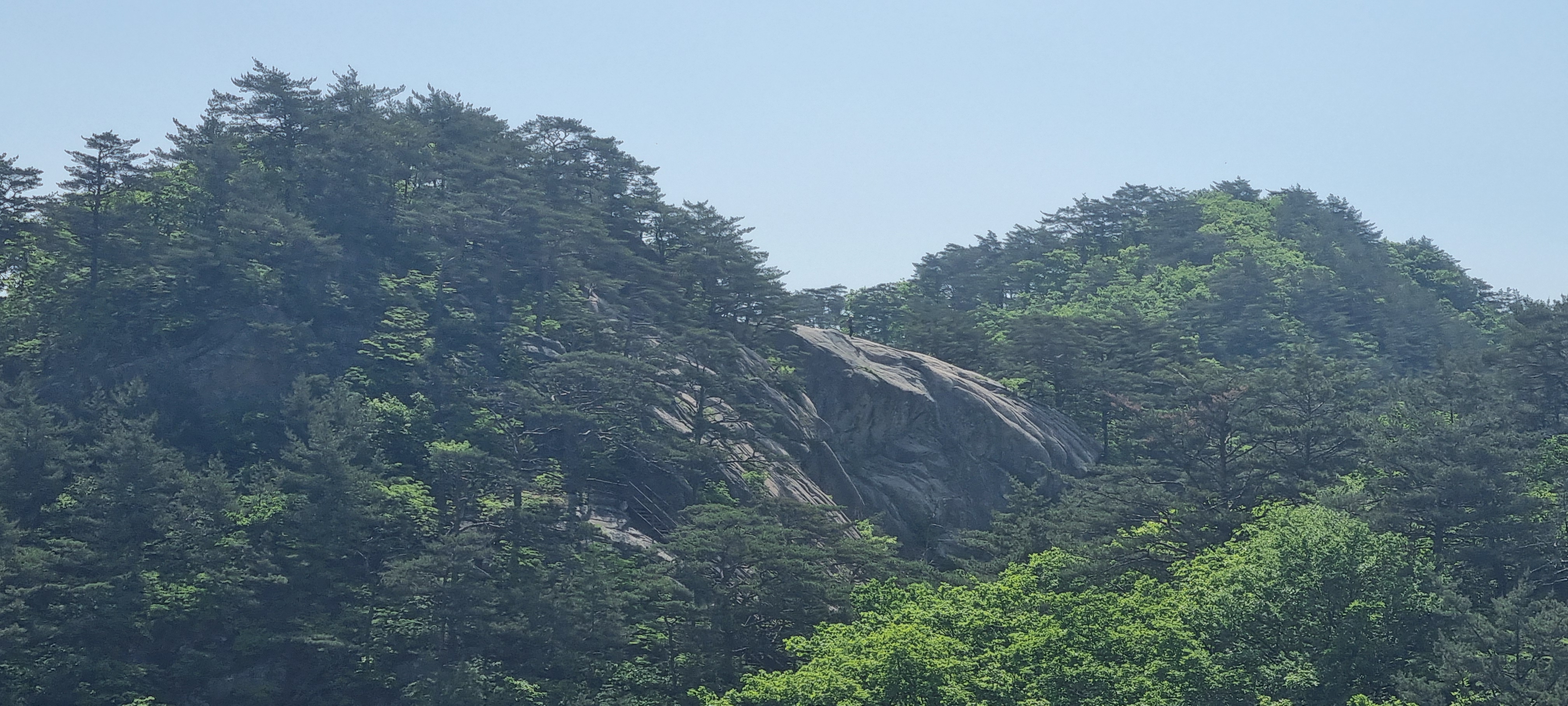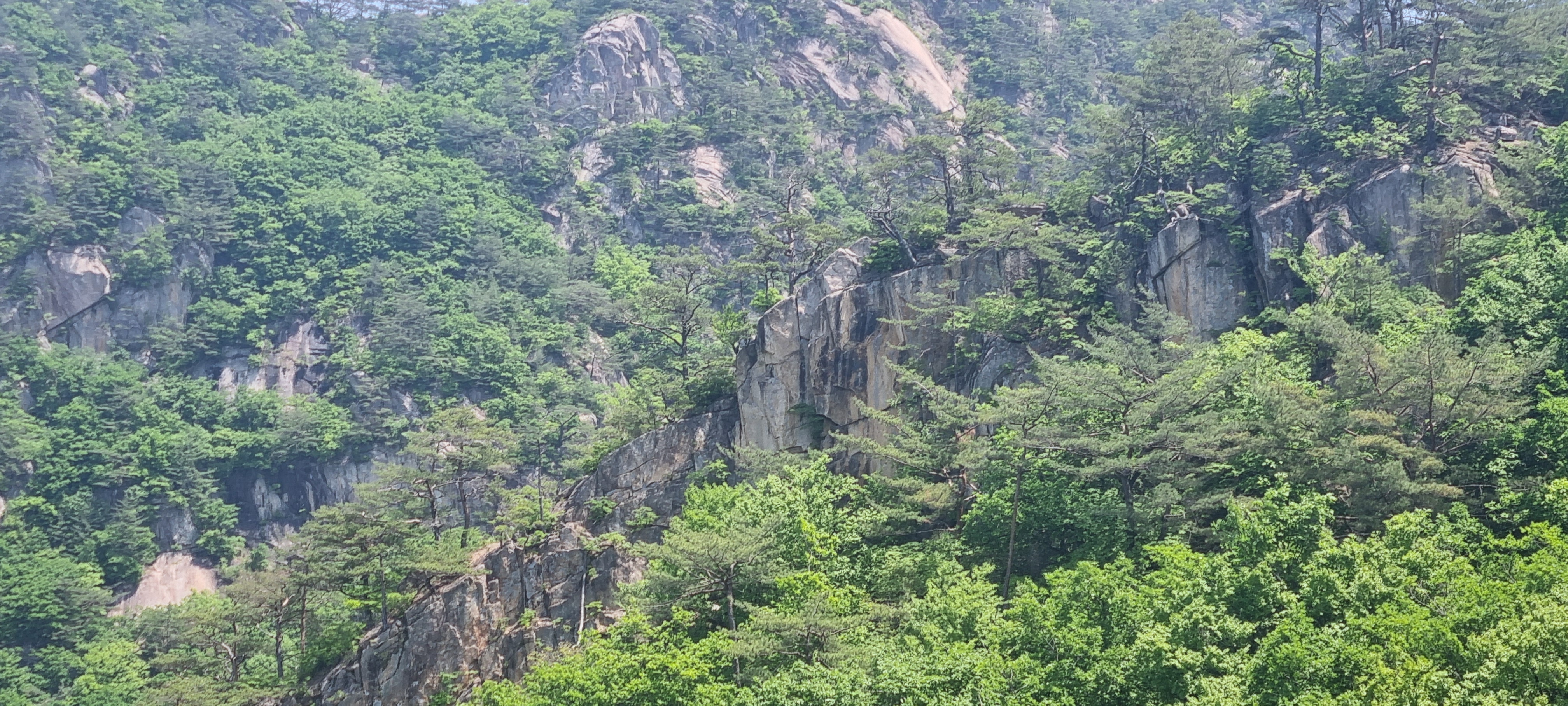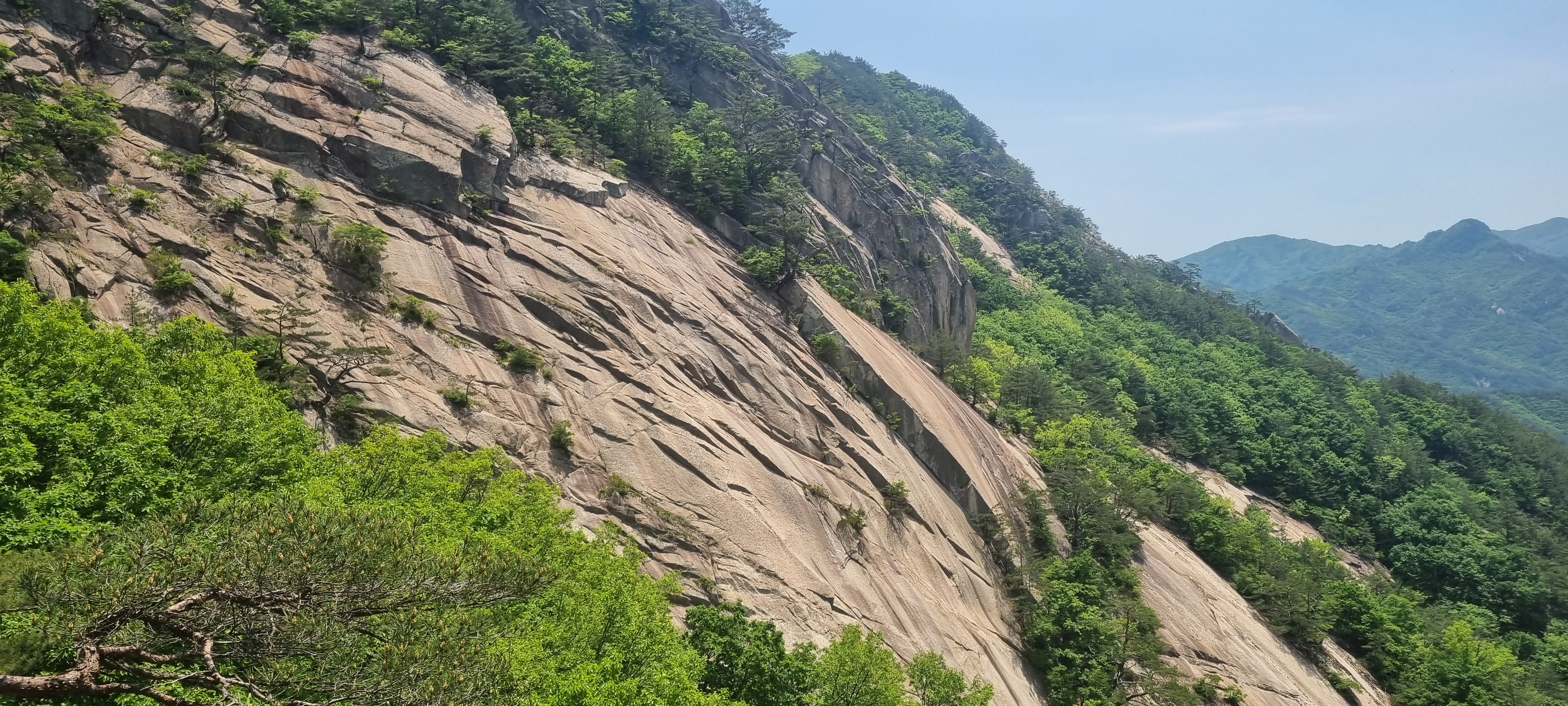 한 동안 슬랩 윗 부분에서 구경을 한 뒤. 도락산 정상 방향으로 다시 진행.