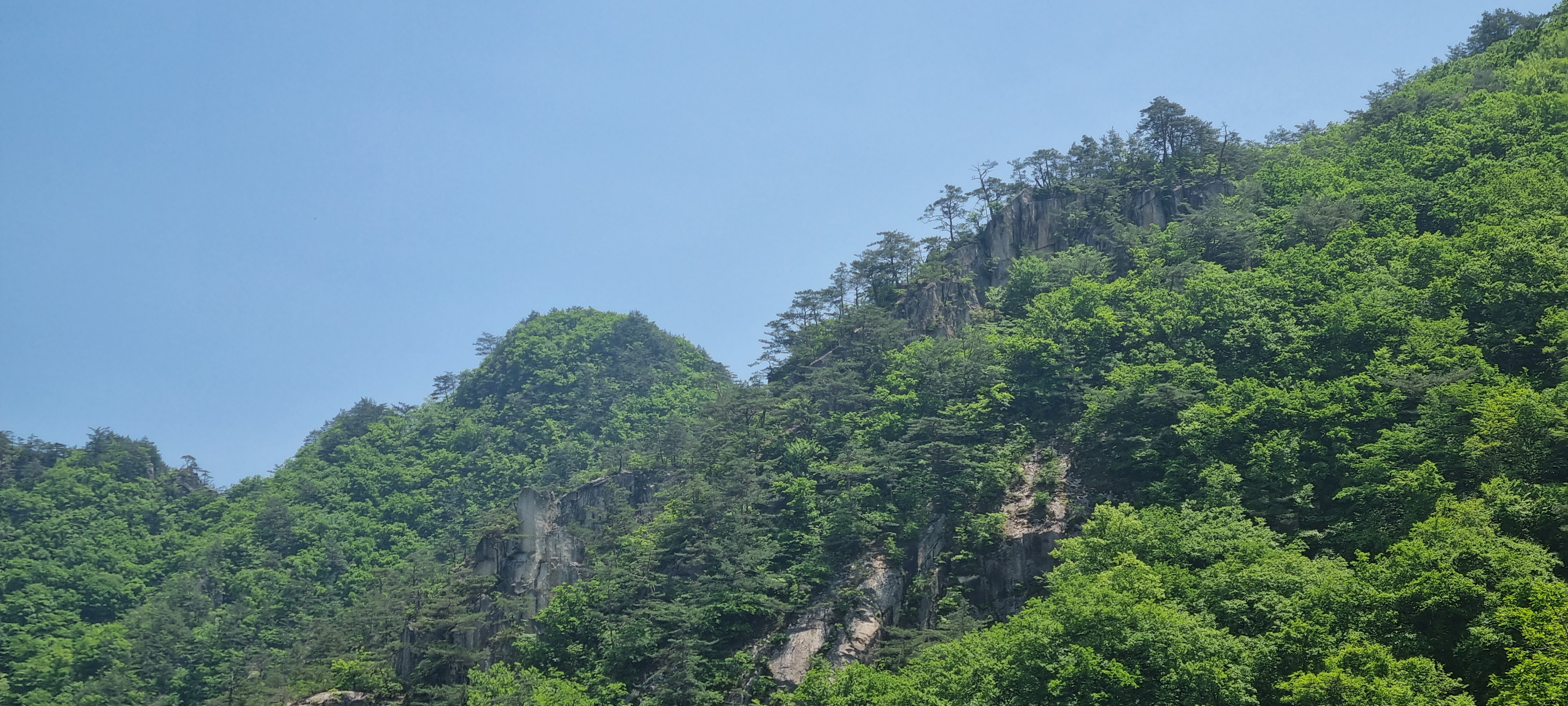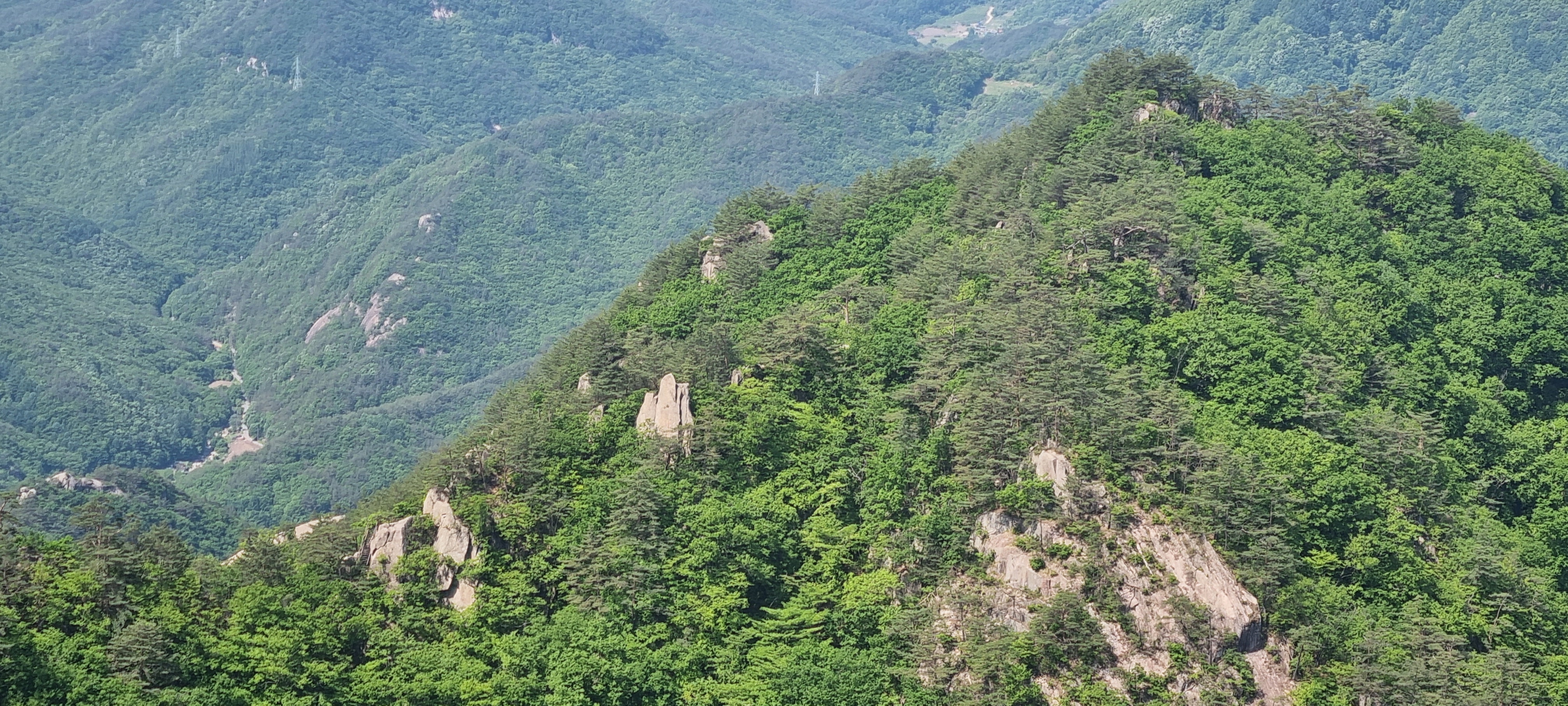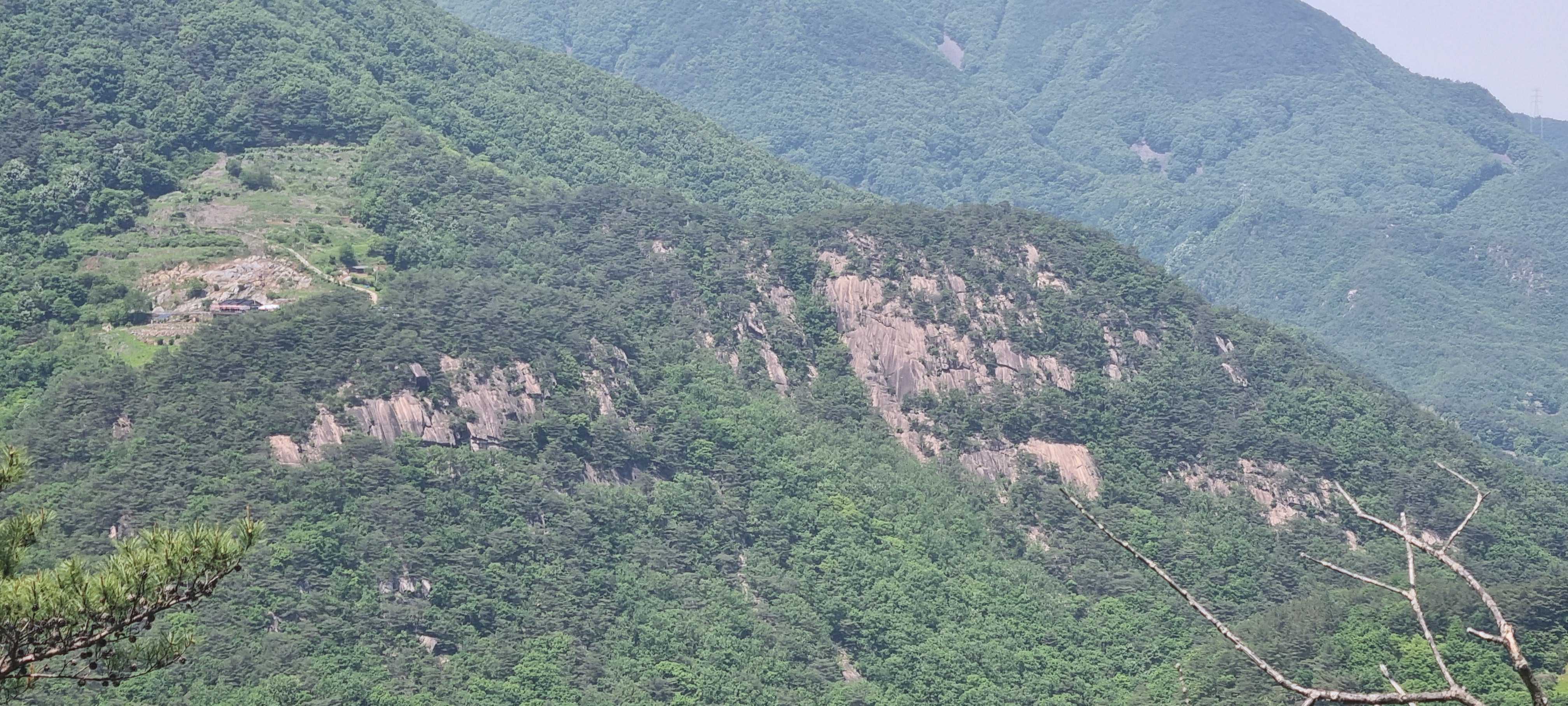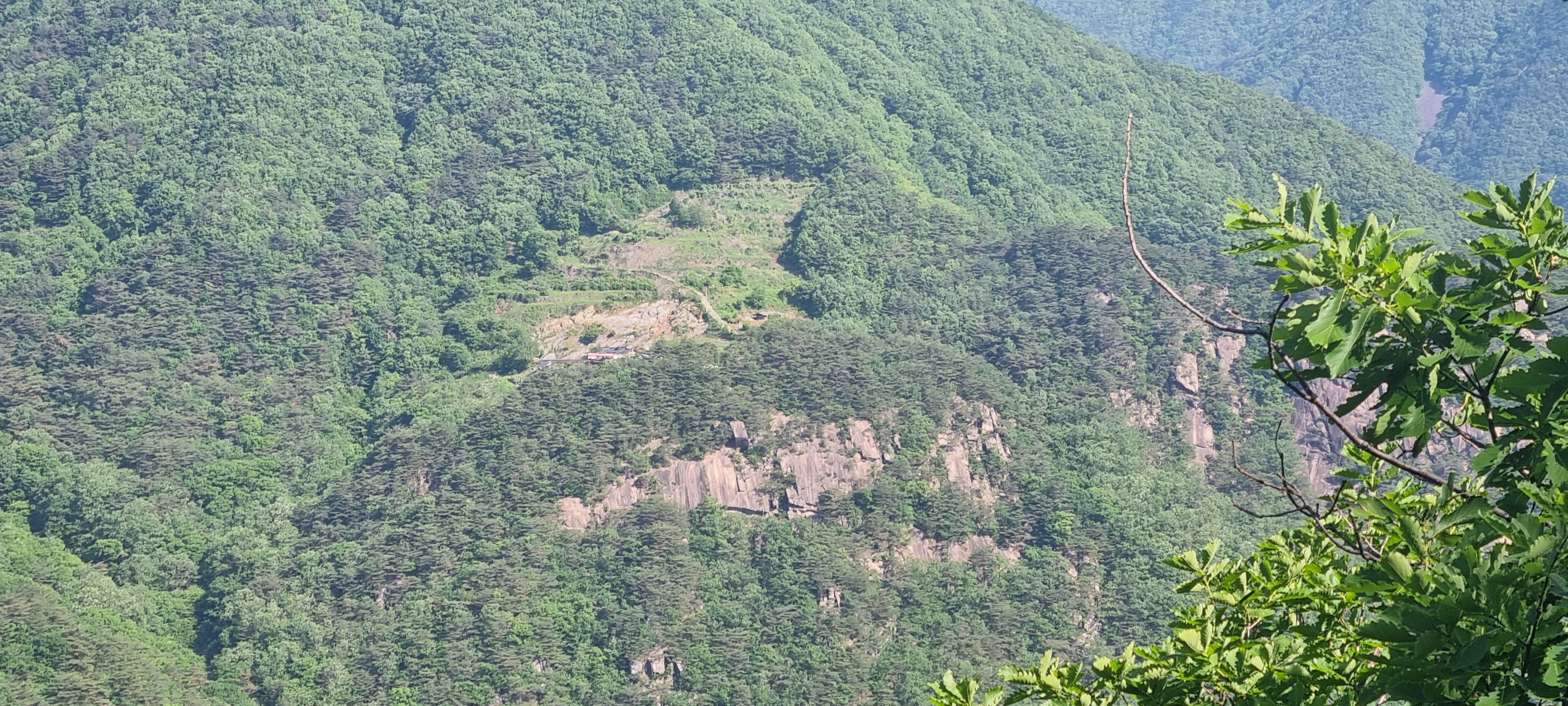 삼거리에서 딱 400미터 내려온 셈인데....................이 곳에서 올려다 보는 도락산 풍경이 어마무시 하네요. 👍😮