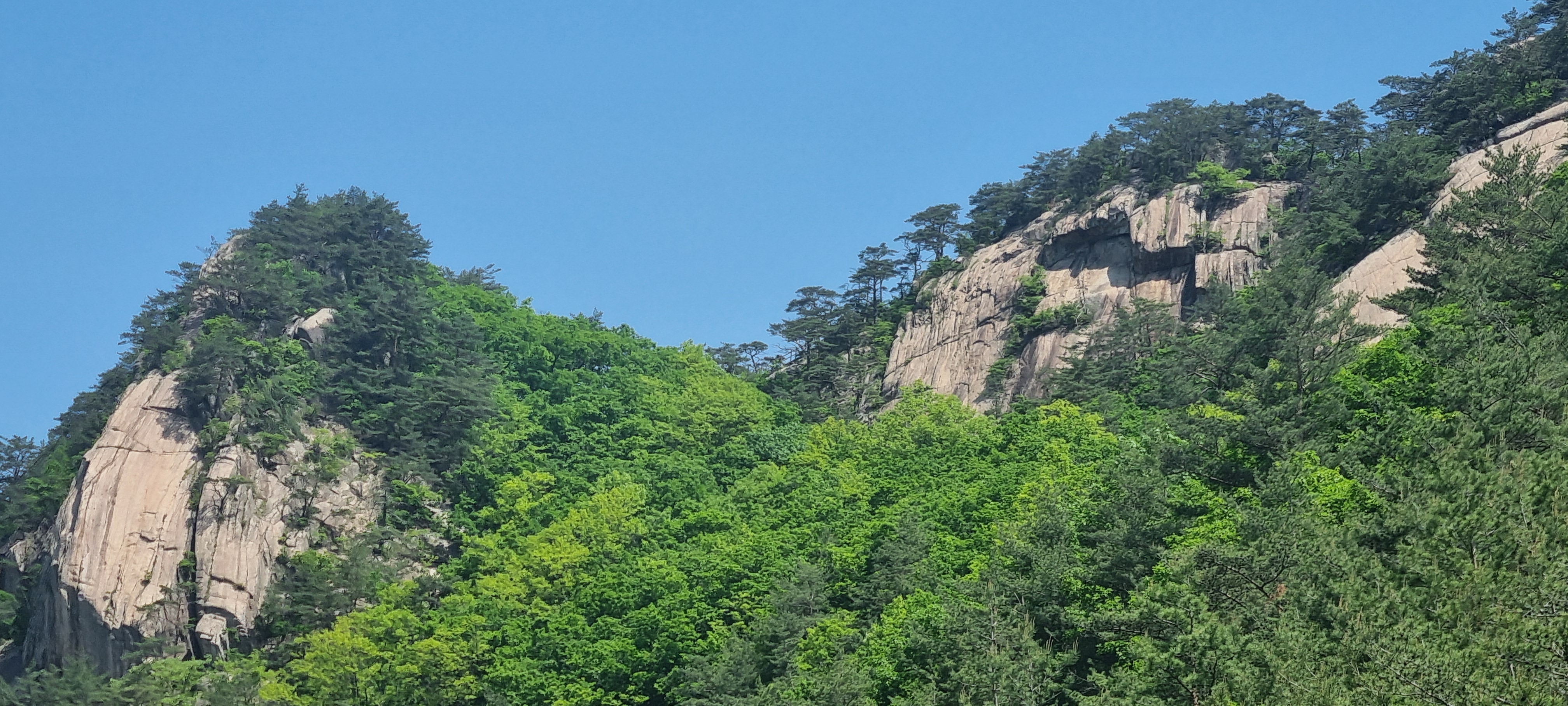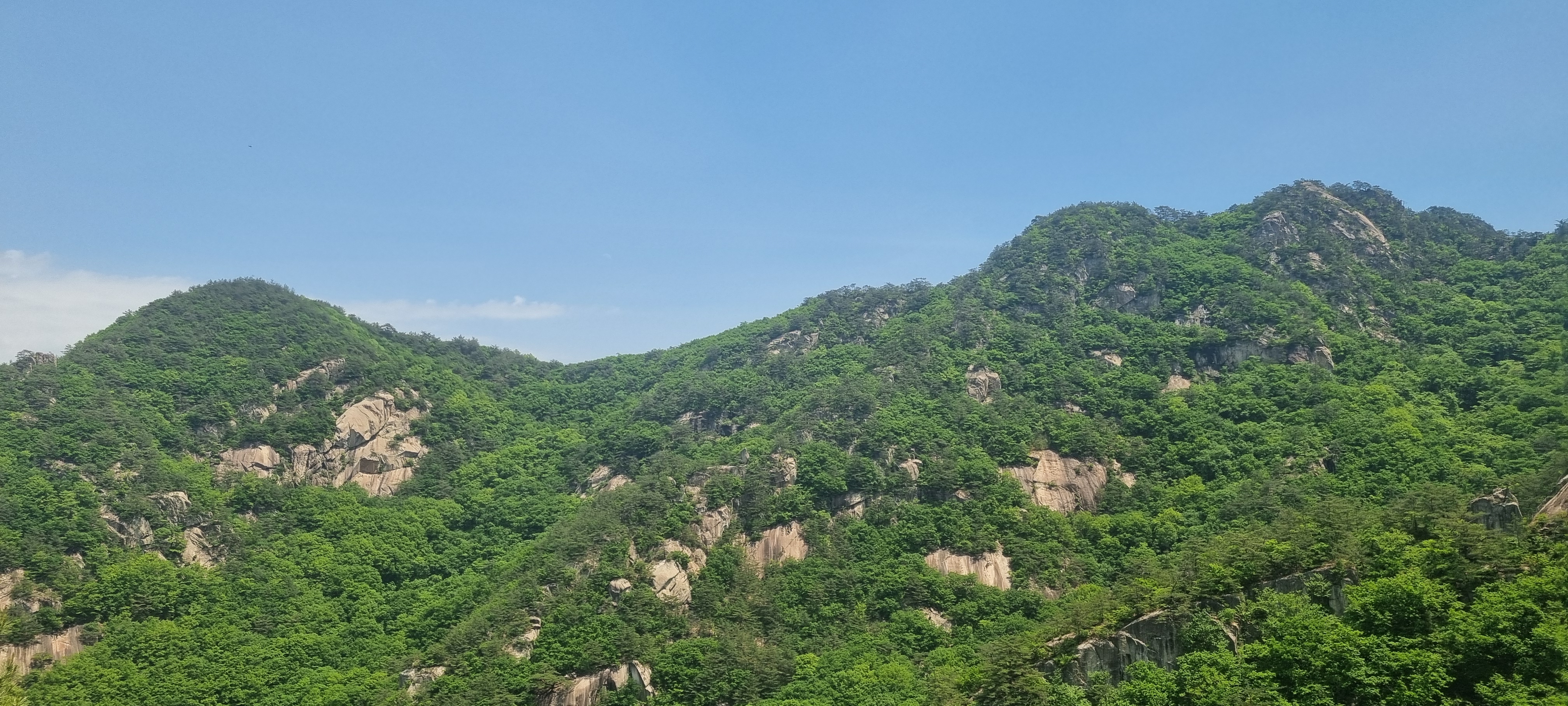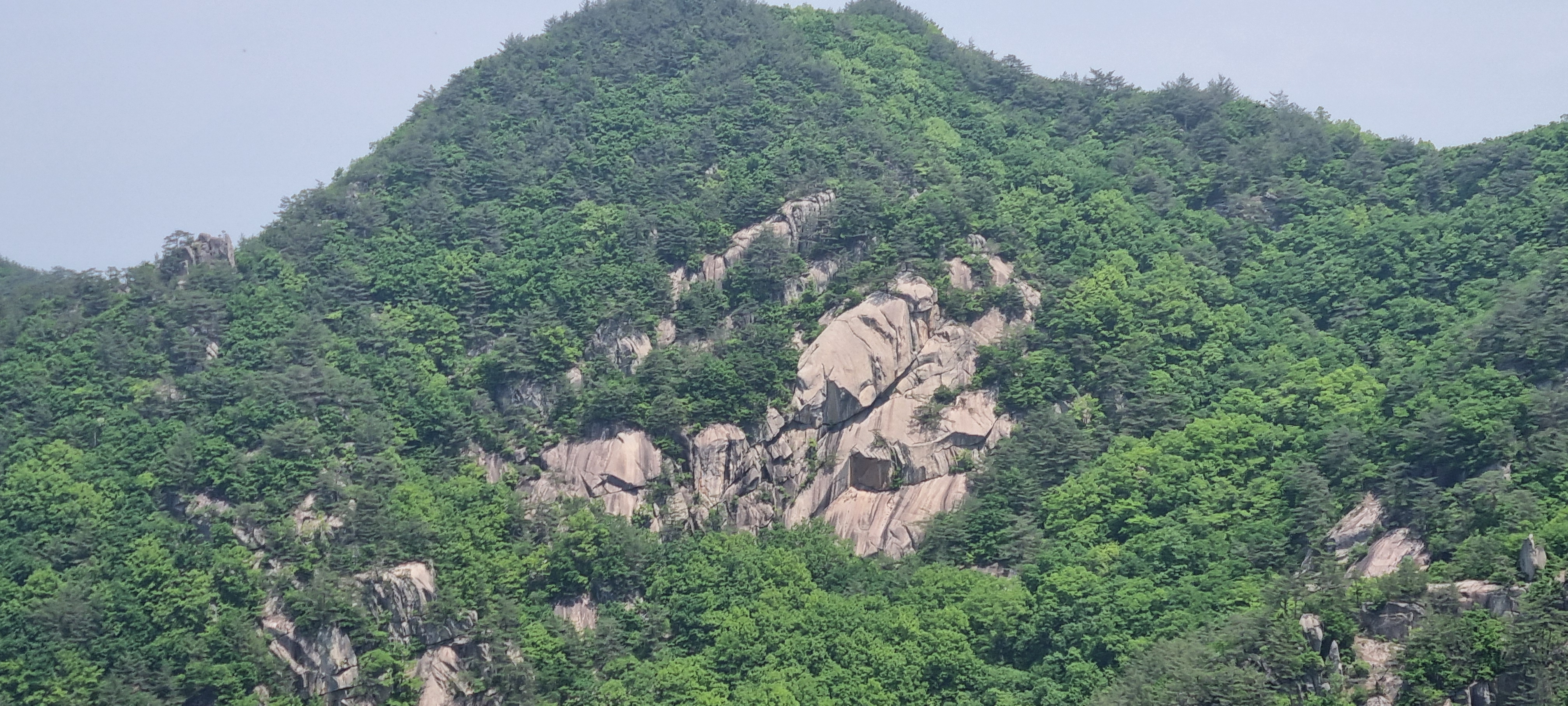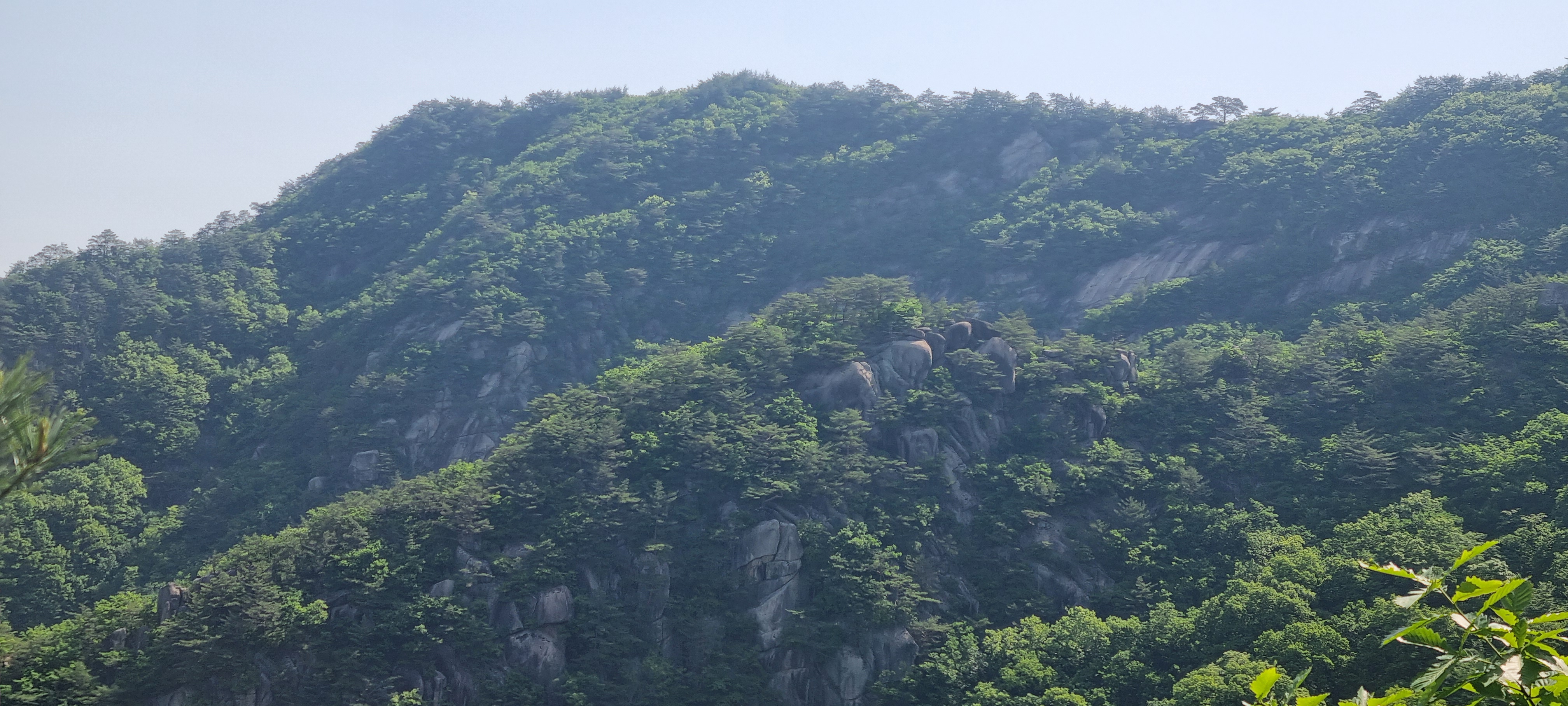 삼거리에서 딱 400미터 내려온 셈인데....................이 곳에서 올려다 보는 도락산 풍경이 어마무시 하네요. 👍😮