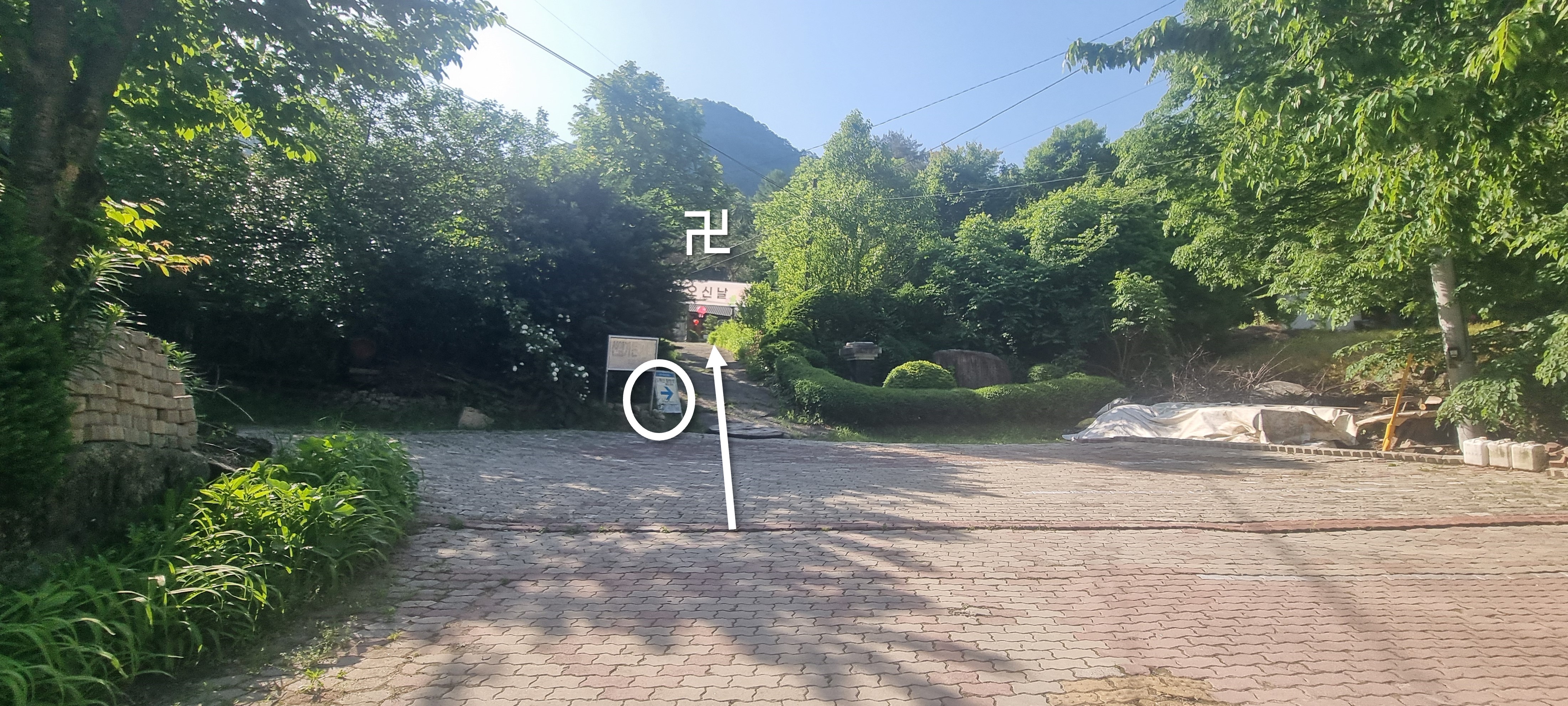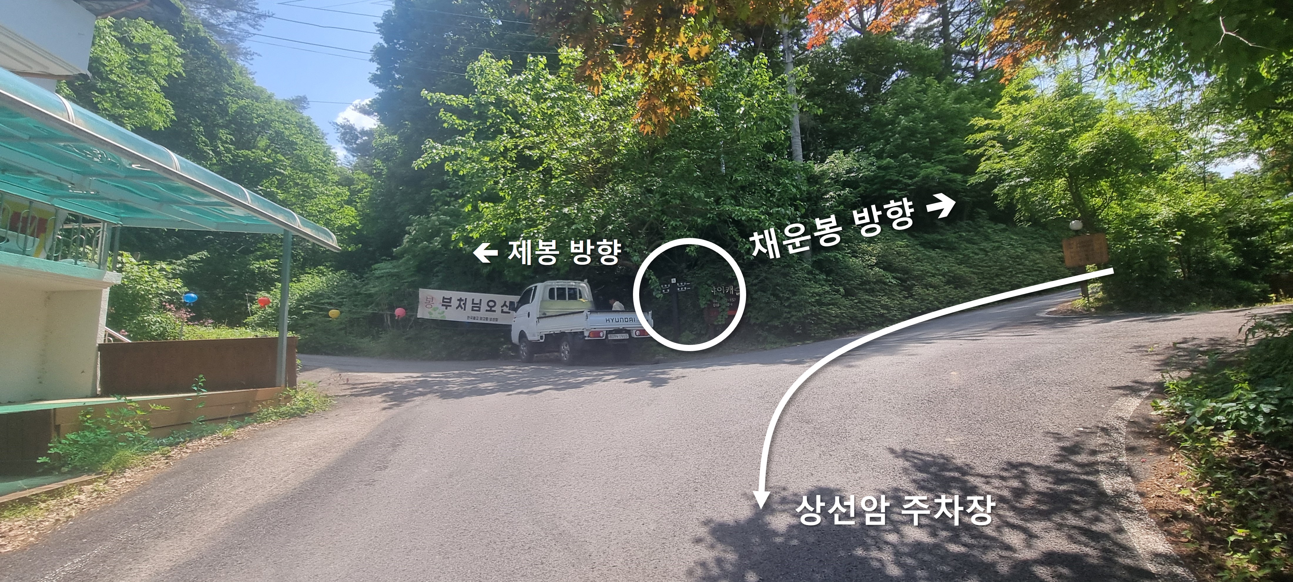 처음 제가 절 방향으로 직진했던 첫 이정표 위치 입니다.