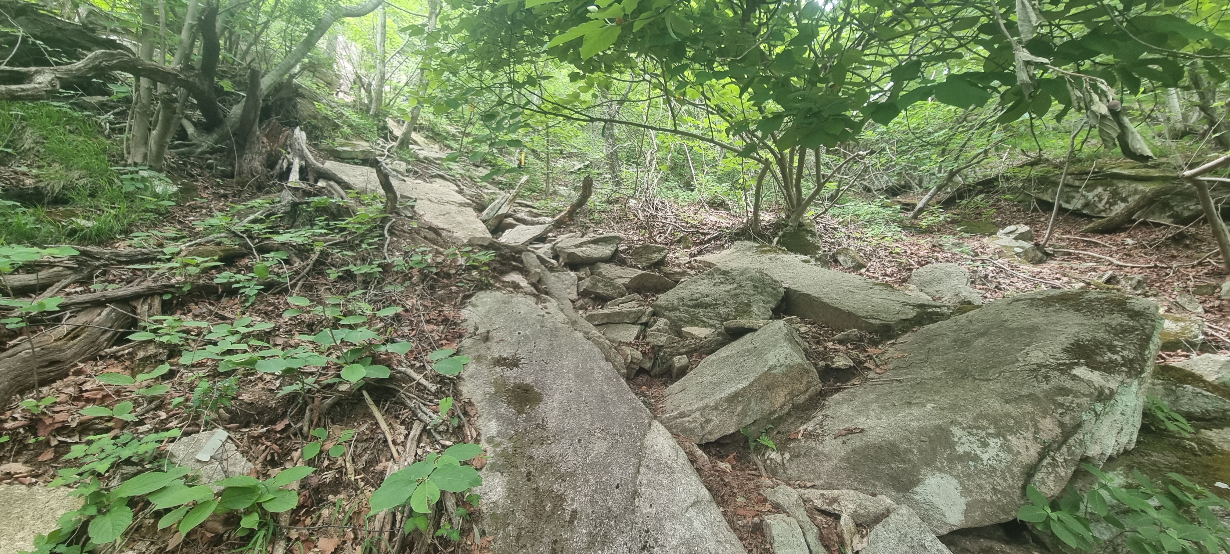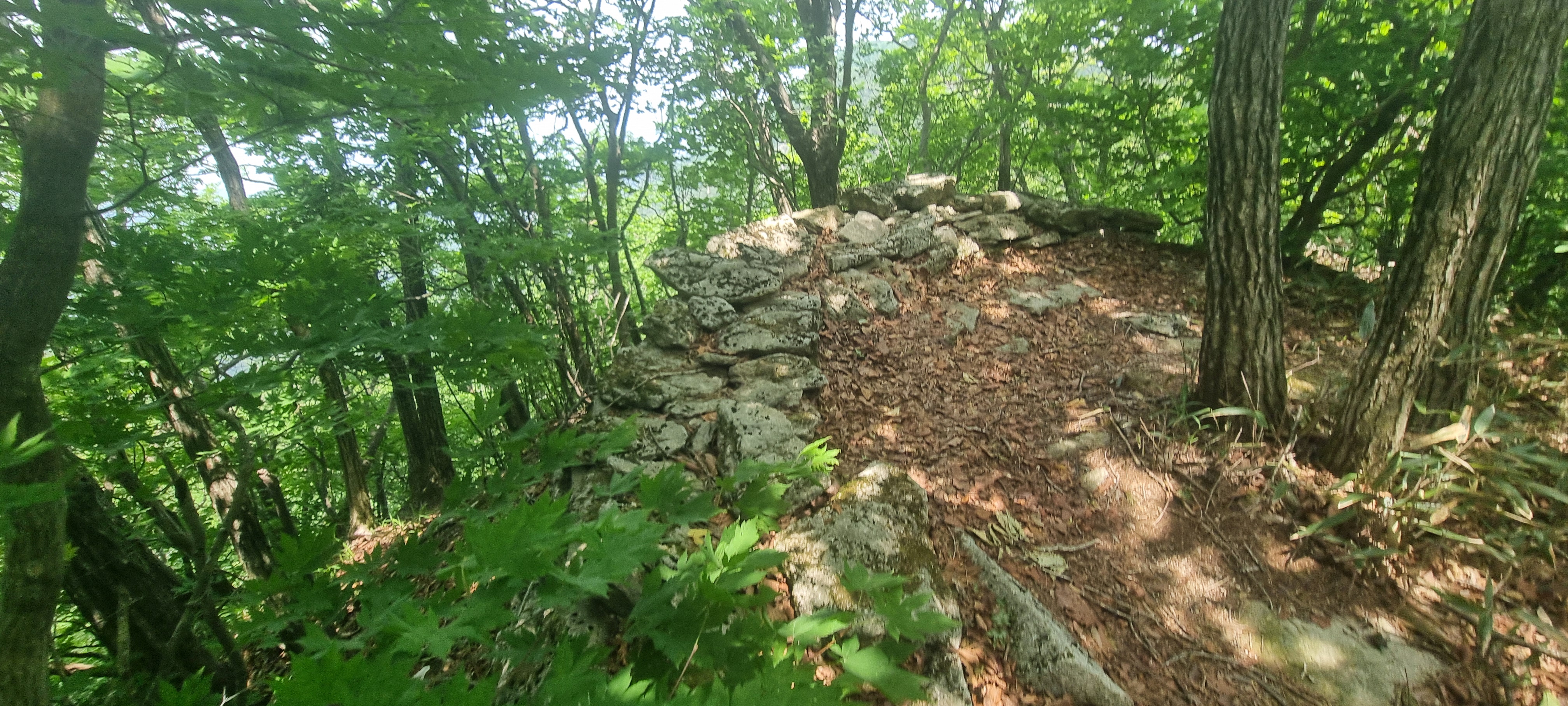 조금 내려오니, 길 왼편에 성터가 살짝 살짝씩 보이네요.