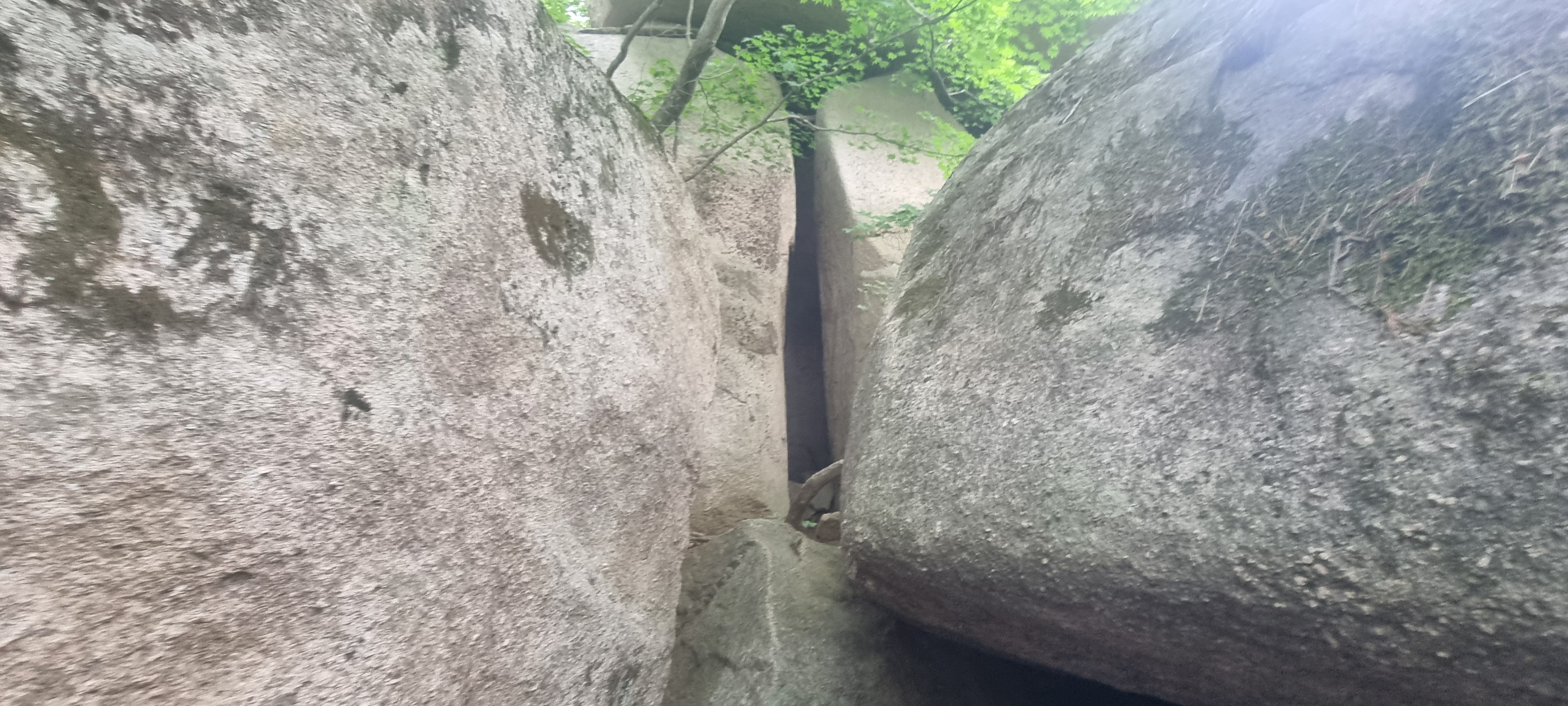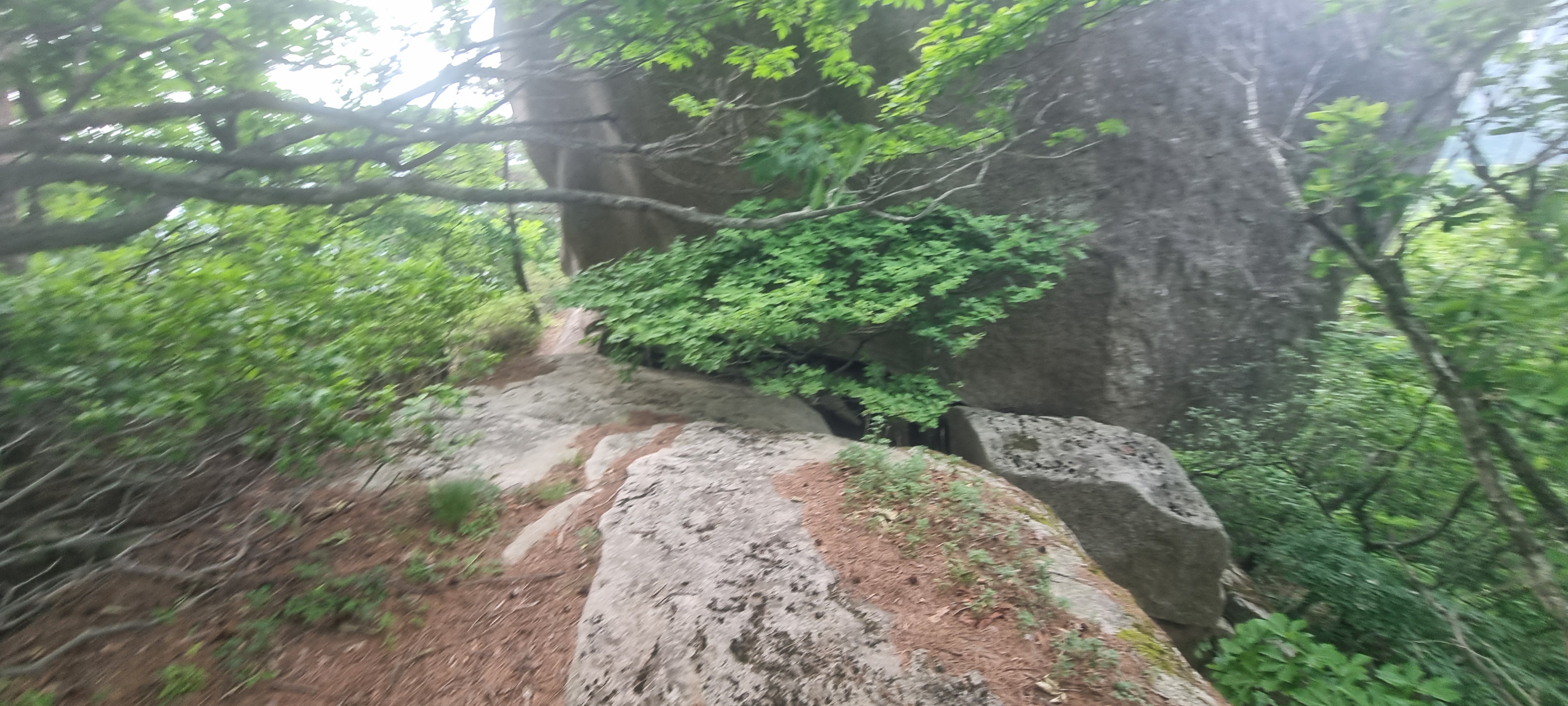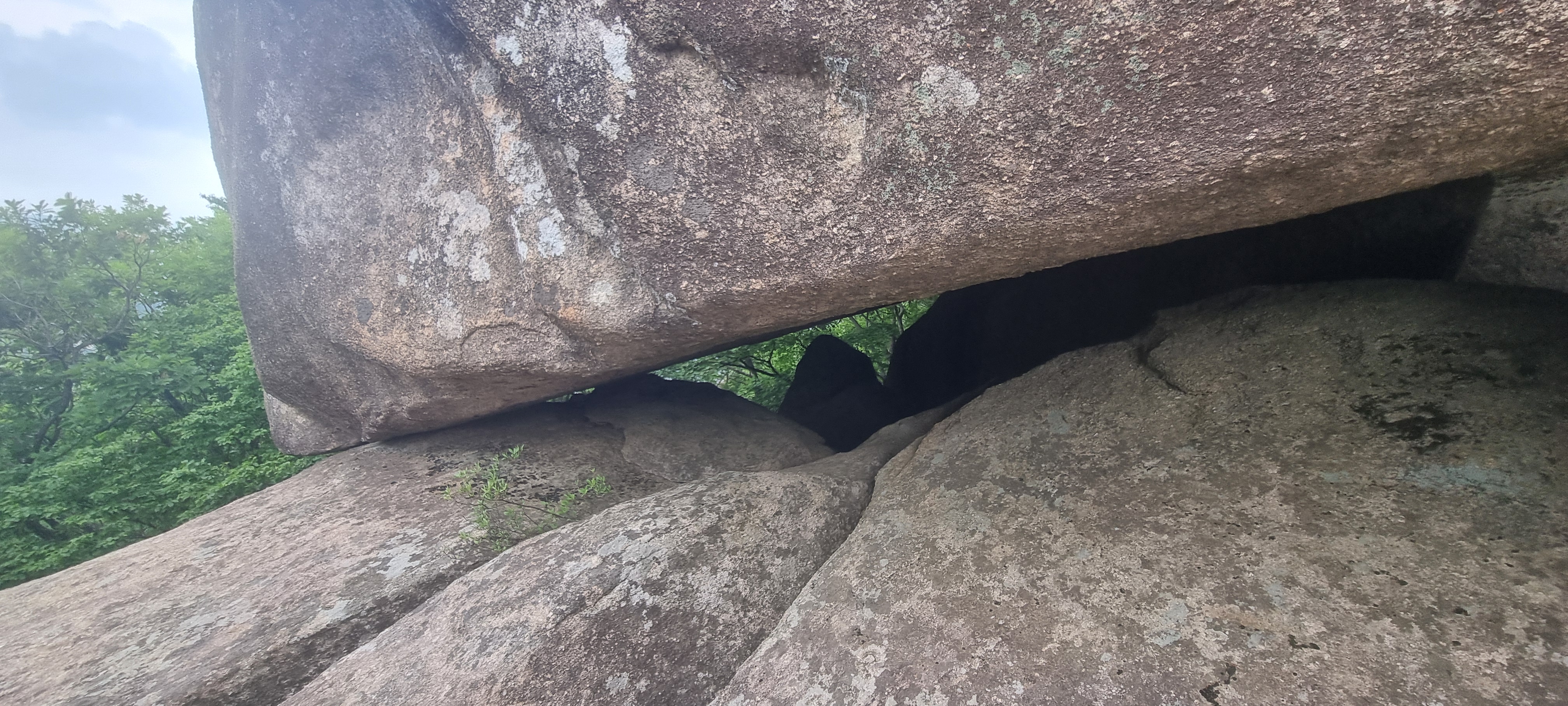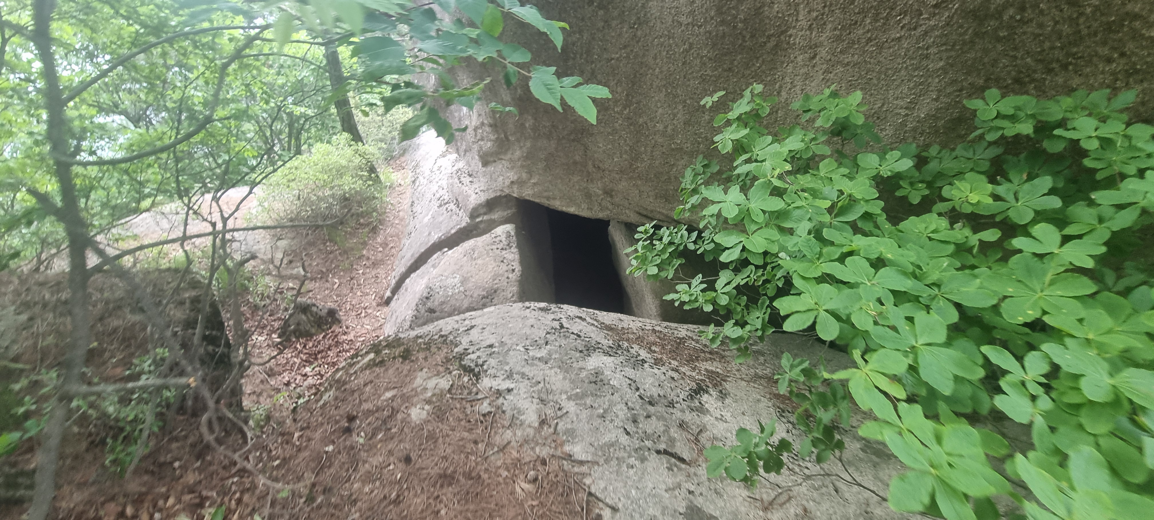 등산로 오른쪽에 커다란 고래등(지네등) 같은 바위가 줄줄이 있는데......틈새가 보여 들어가 봤더니....