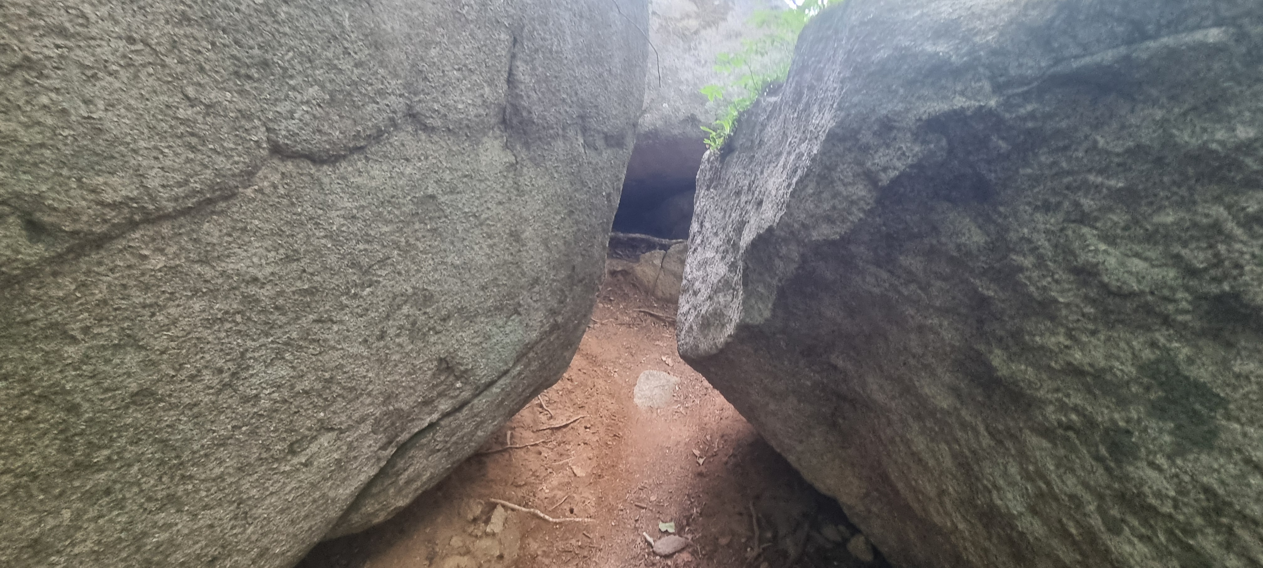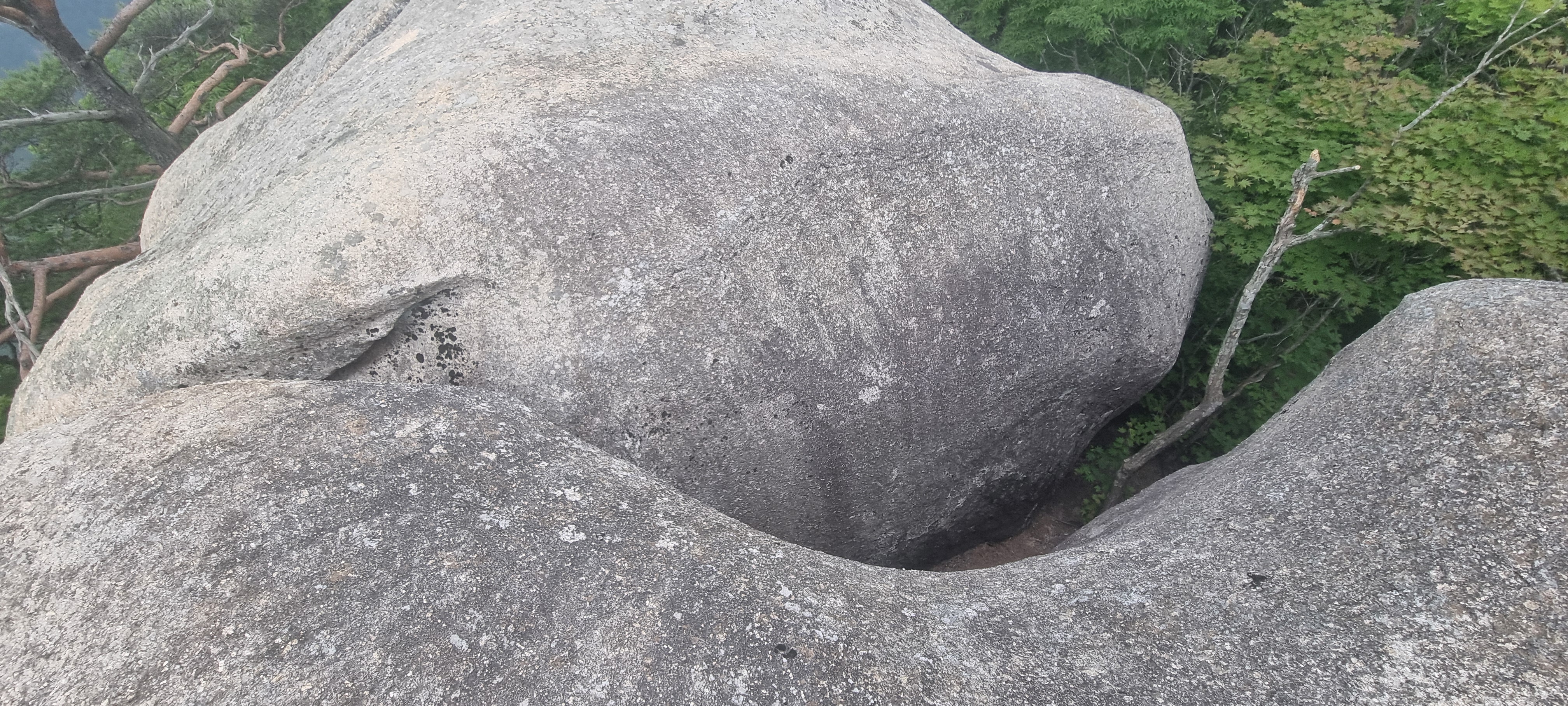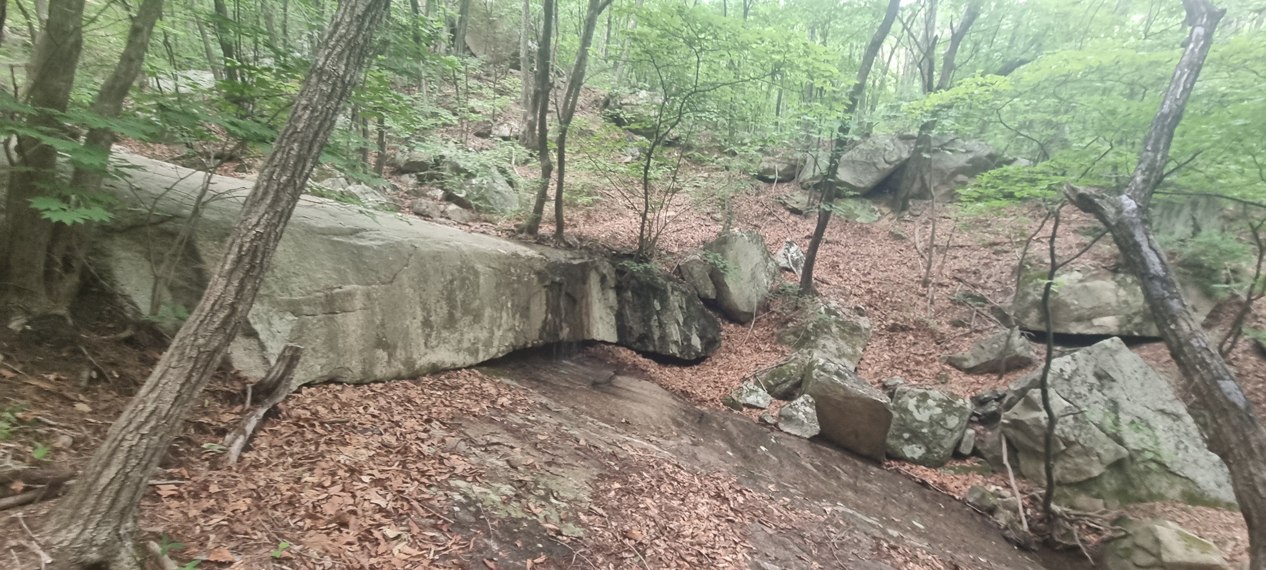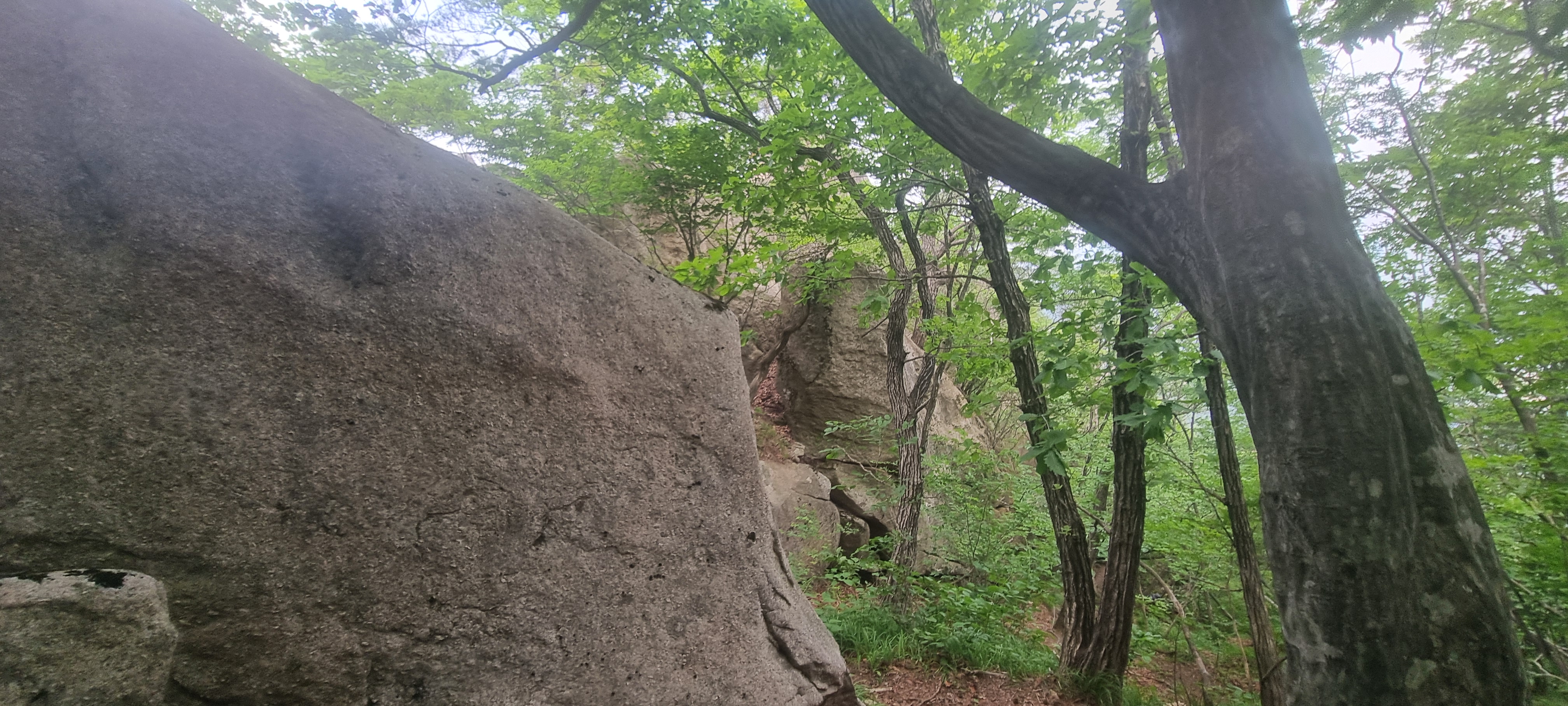 등산로 오른쪽에 커다란 고래등(지네등) 같은 바위가 줄줄이 있는데......틈새가 보여 들어가 봤더니....
