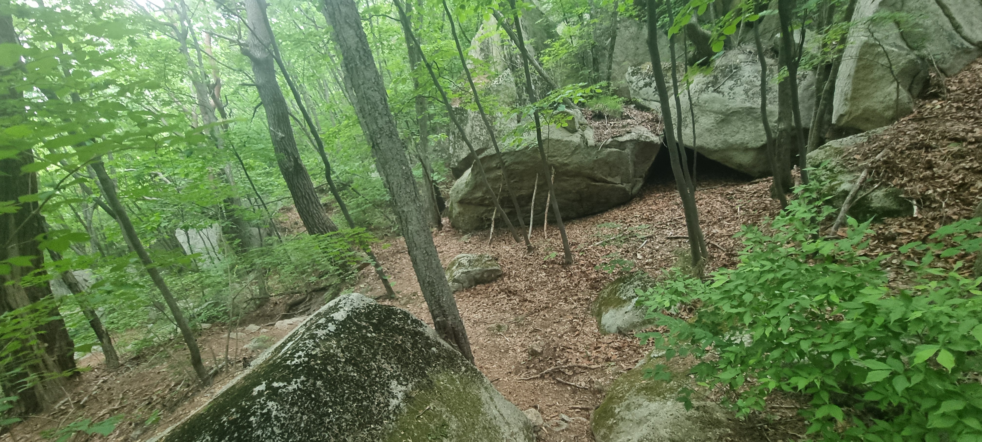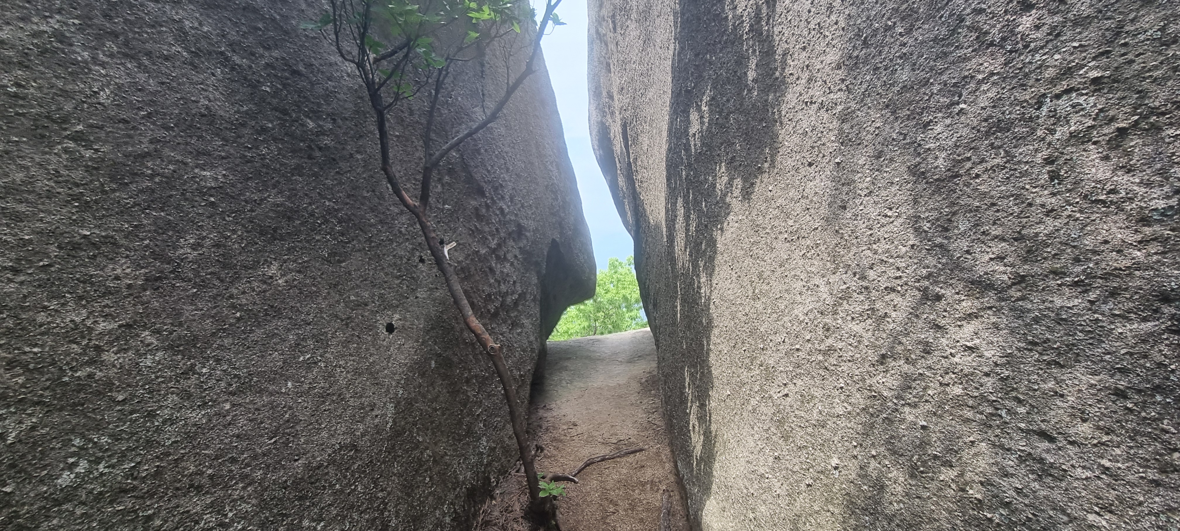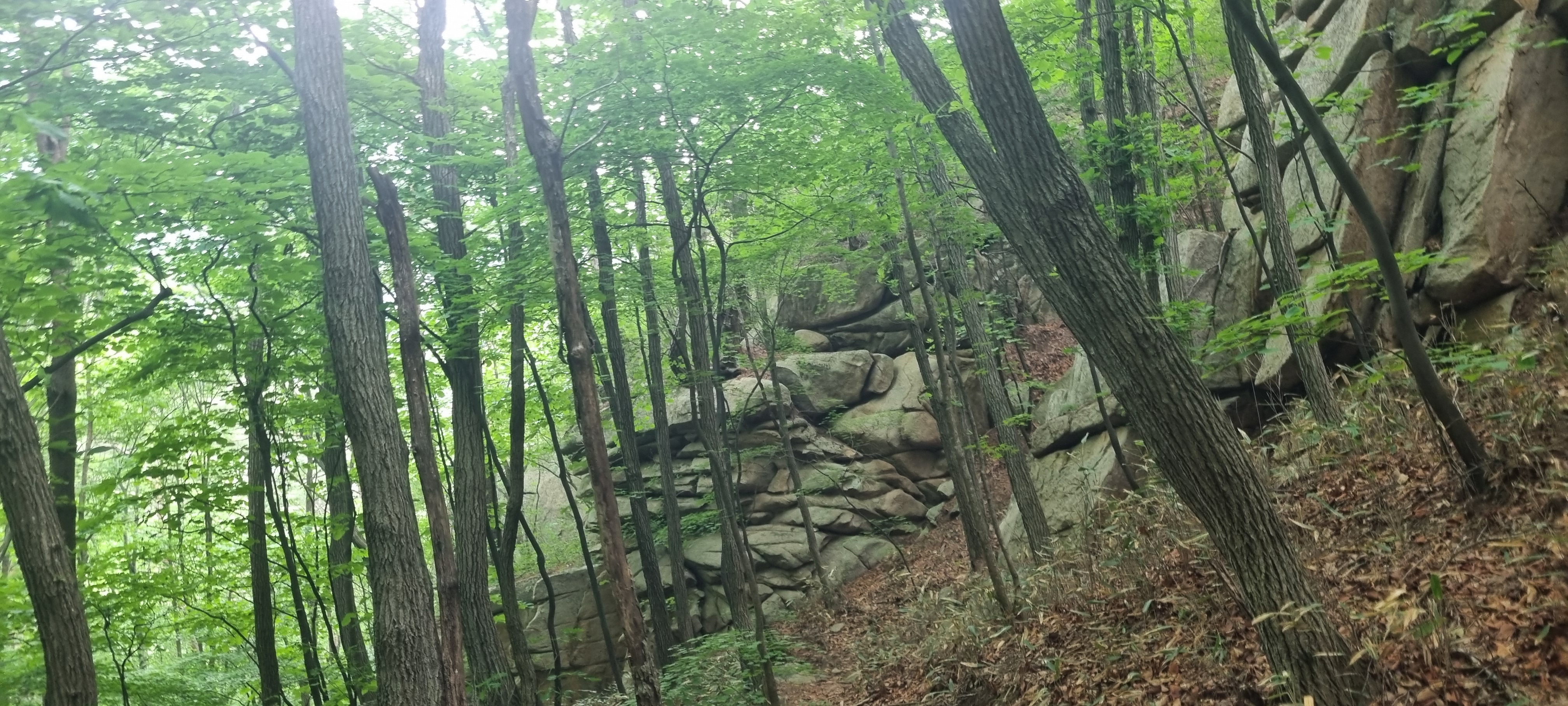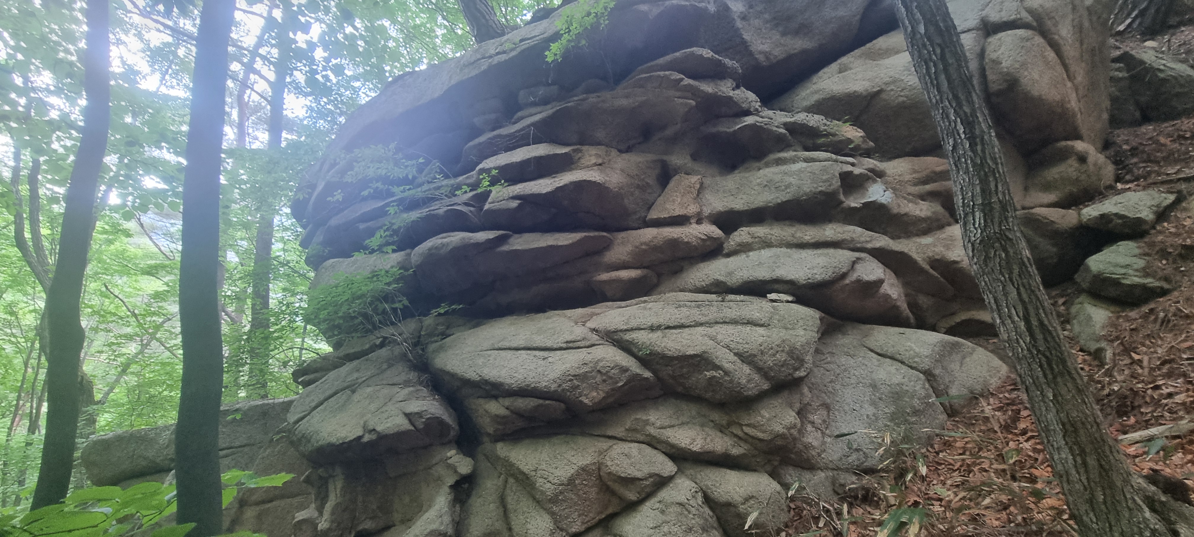 등산로 오른쪽에 커다란 고래등(지네등) 같은 바위가 줄줄이 있는데......틈새가 보여 들어가 봤더니....