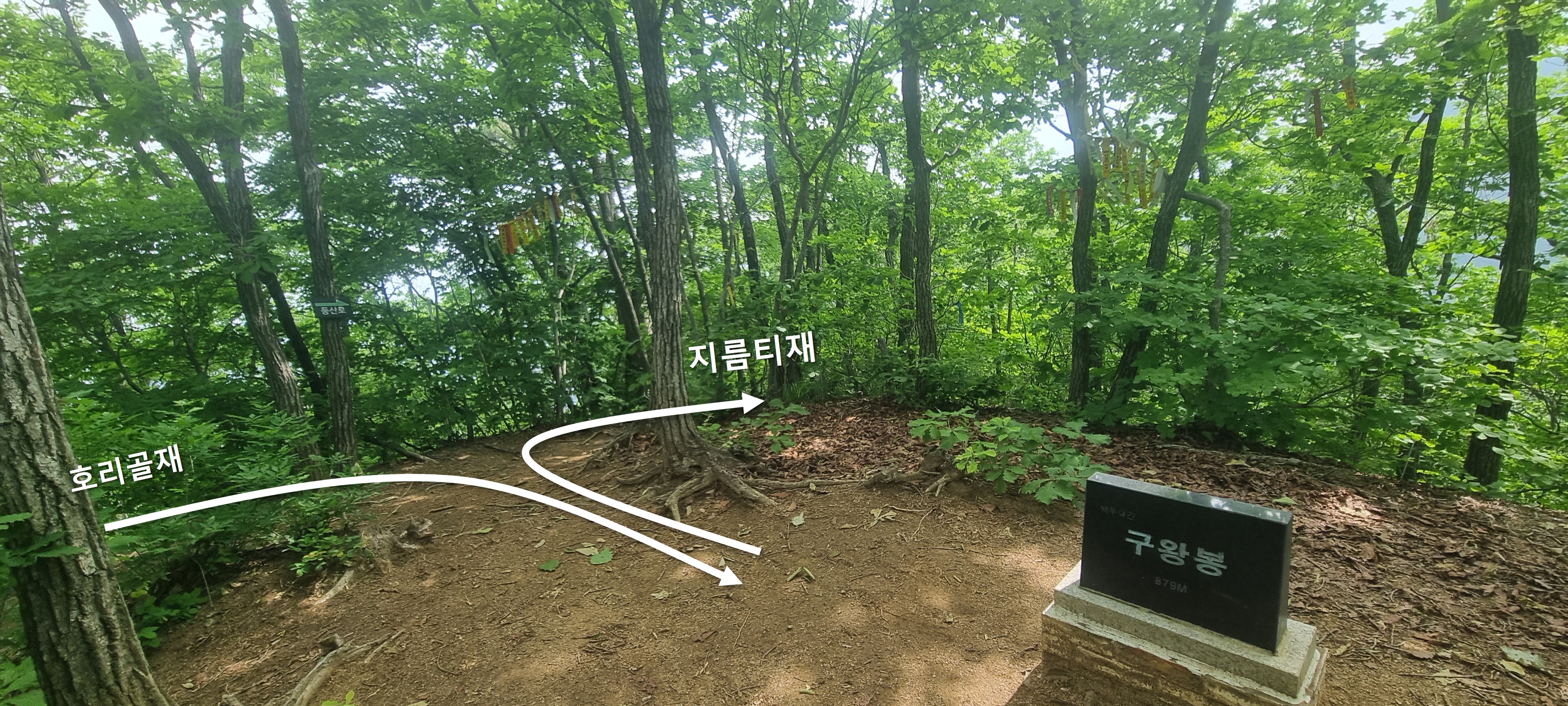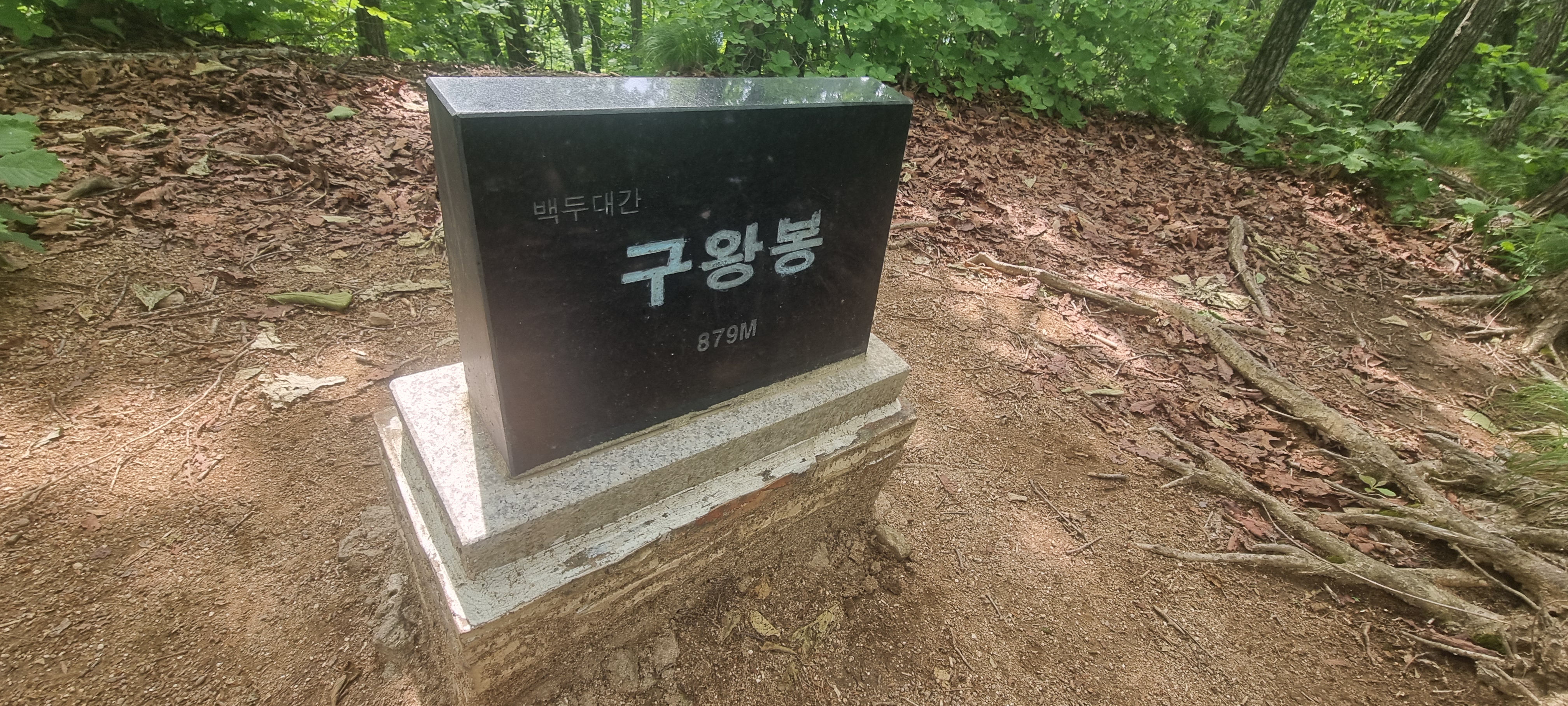 구왕봉(879m) 도착! 나무로 둘러싸여 조망은 없습니다.