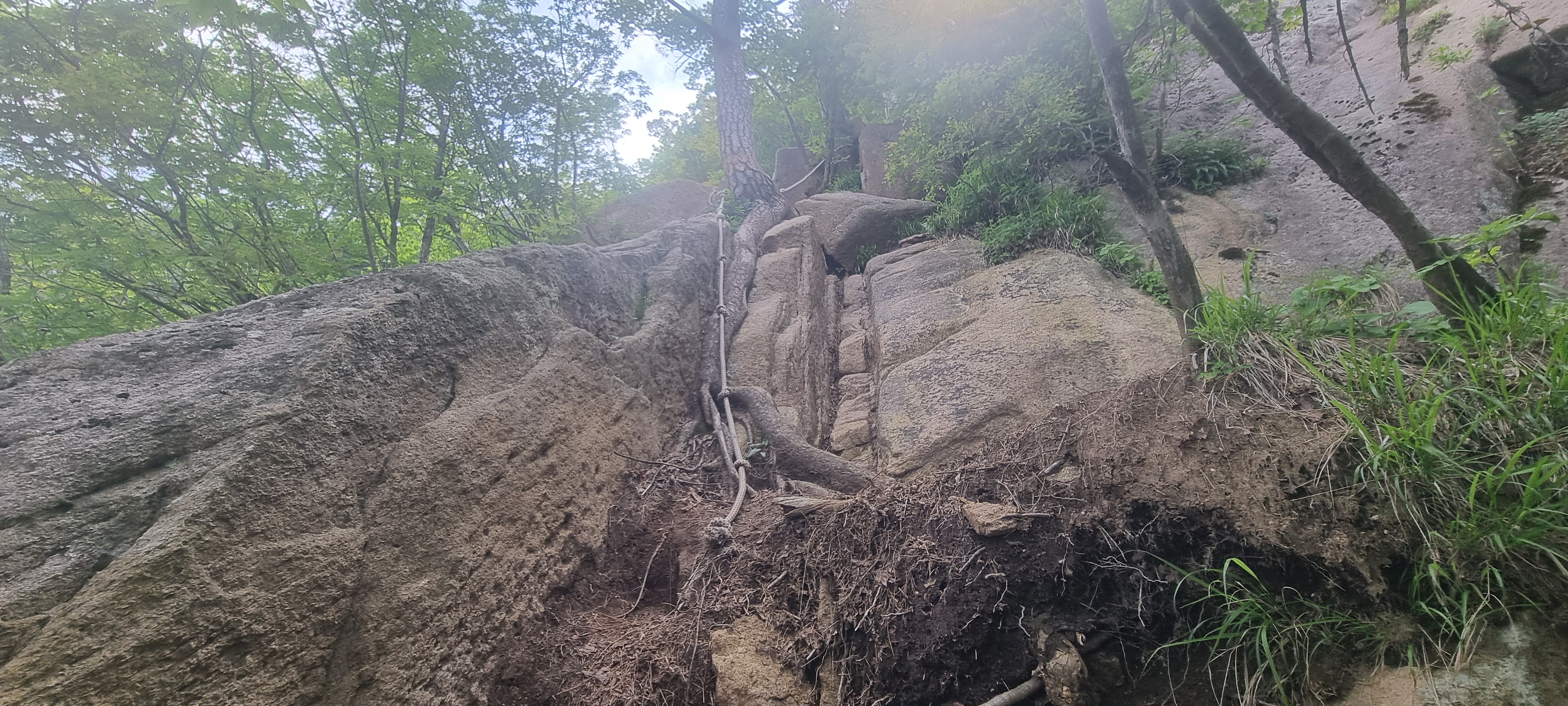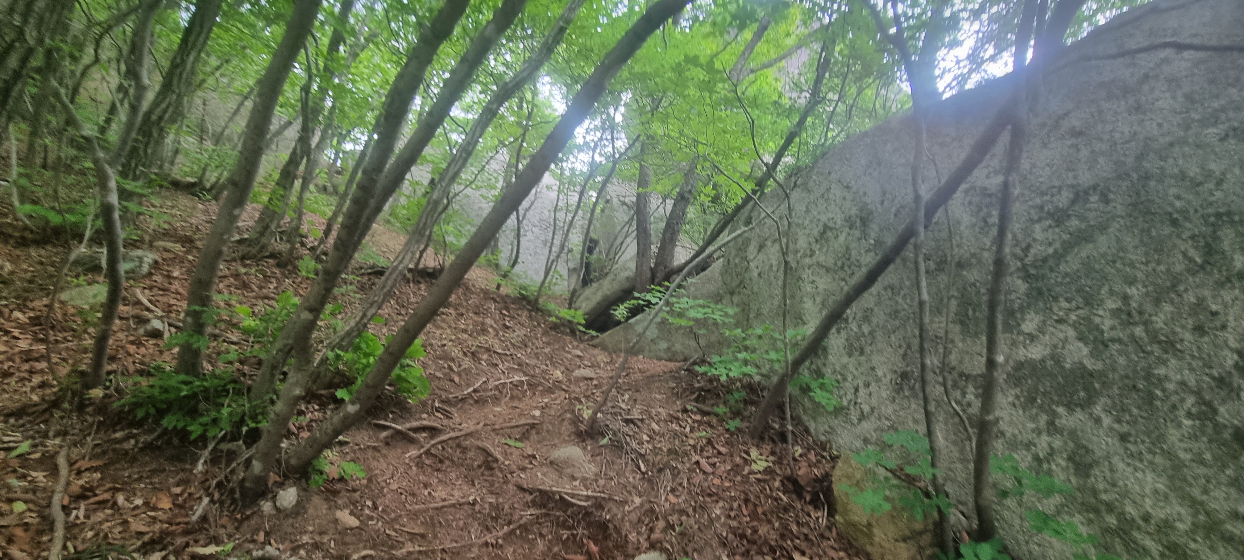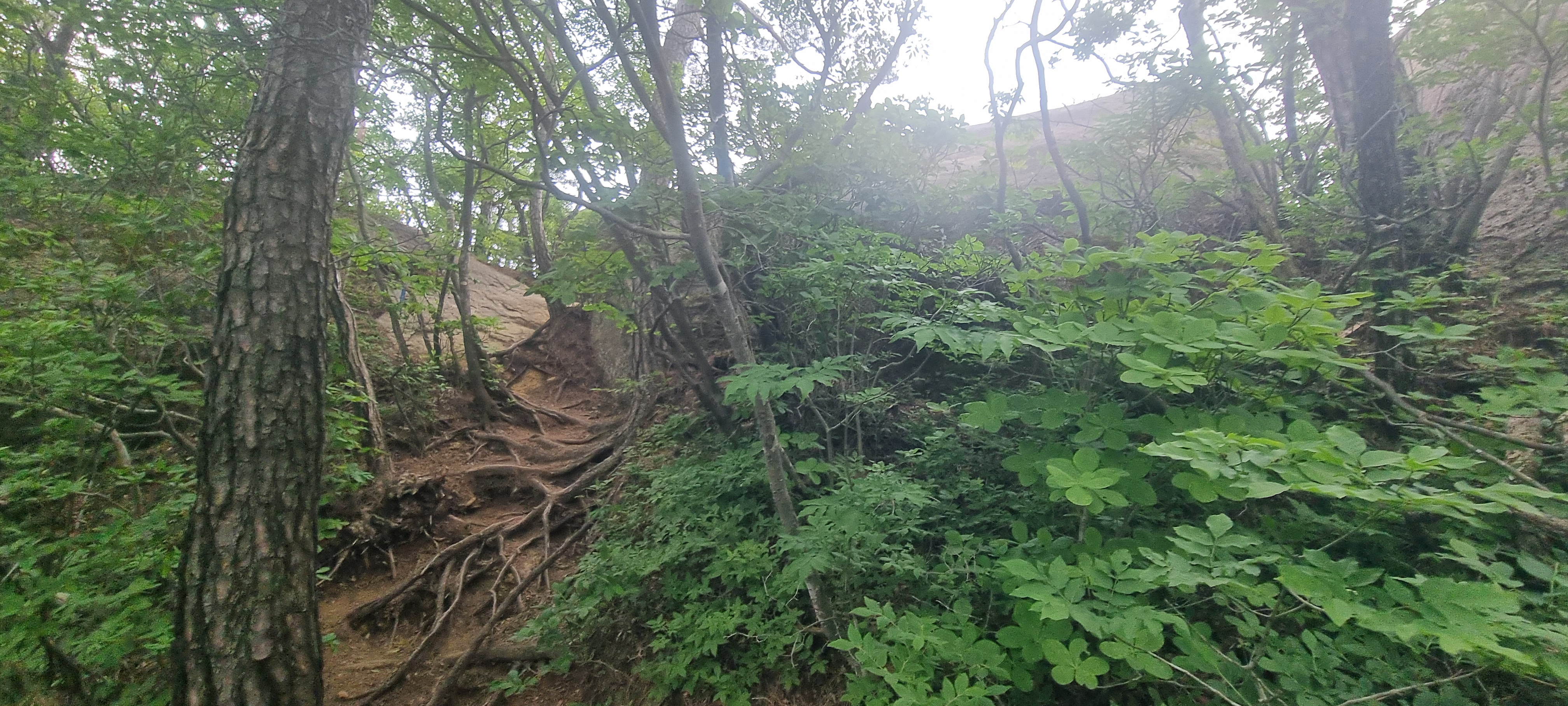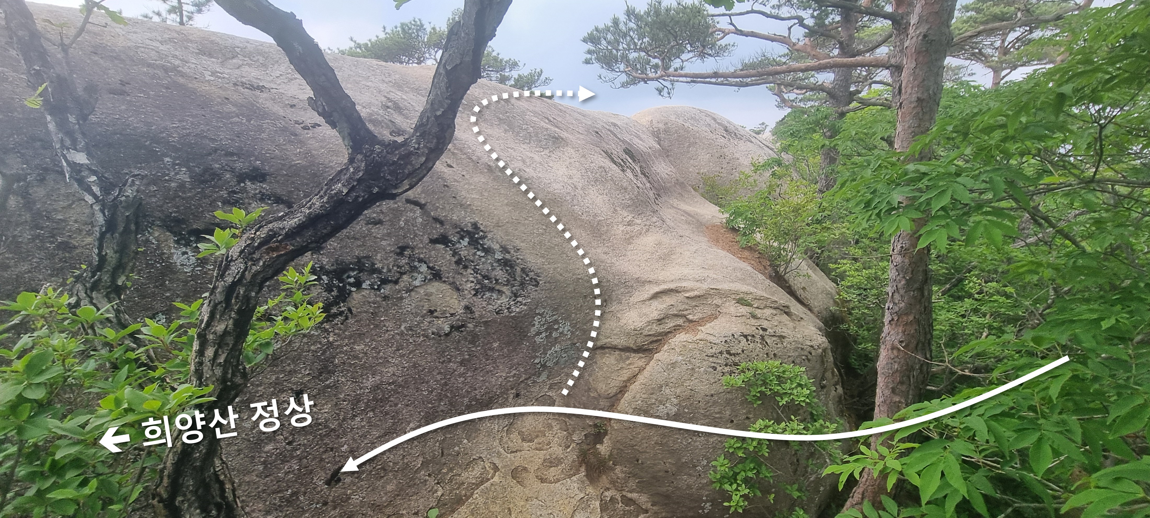 발자국이 많이 있는 바윗결을 따라서 올라가 봤더니, 유튜브에서 보던 바윗등 코스가 나왔습니다.