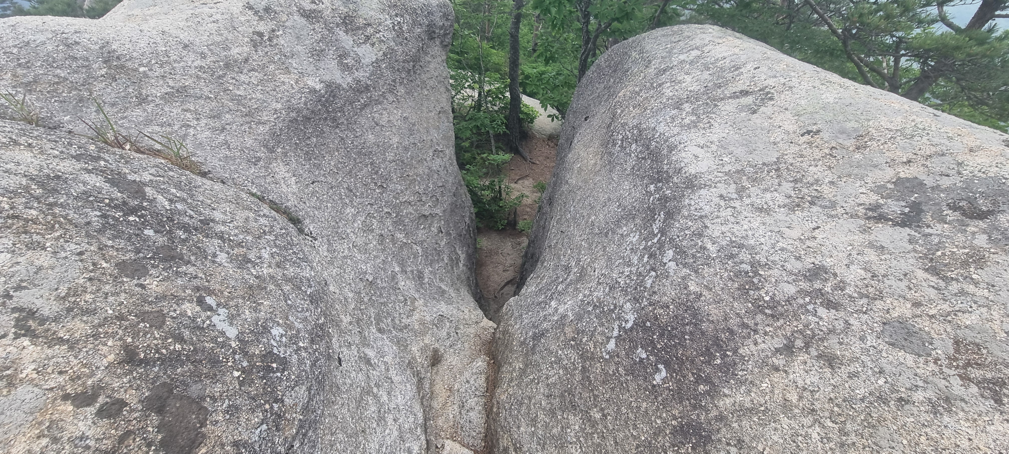 윗 바위 틈새가 좀 전에 들어가봤었던 그 틈새 였네요.