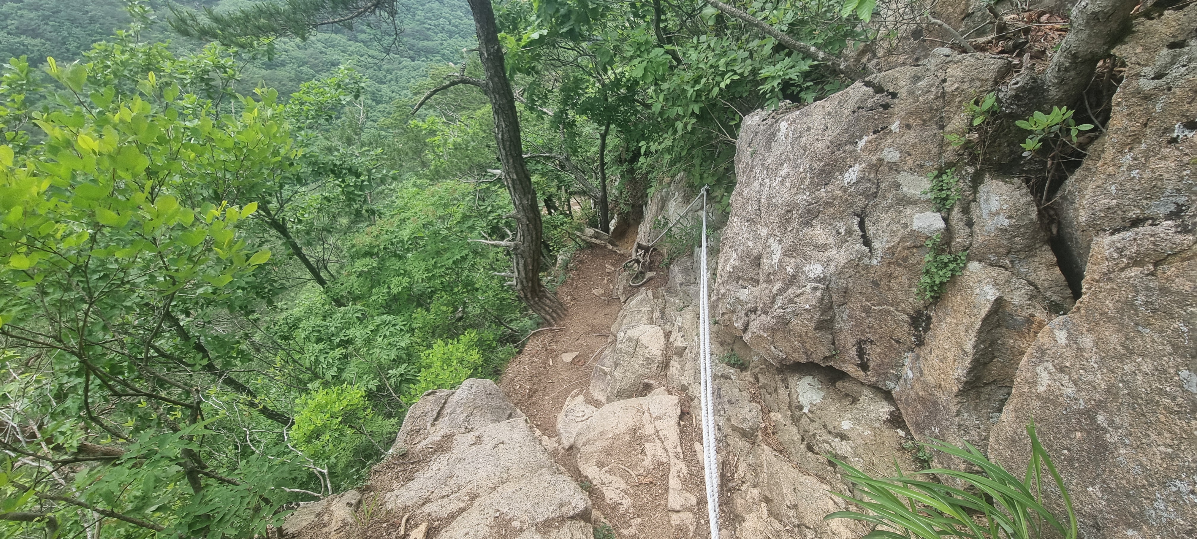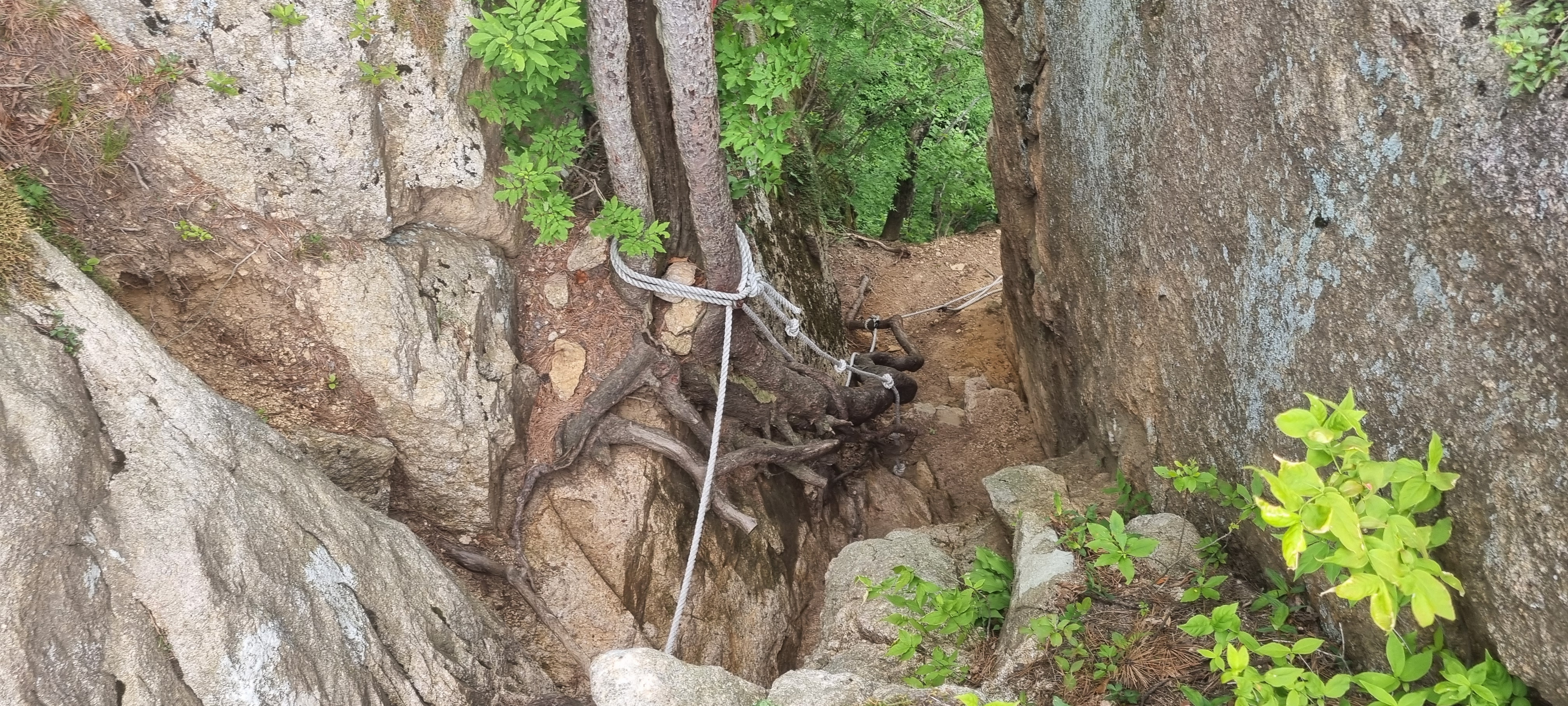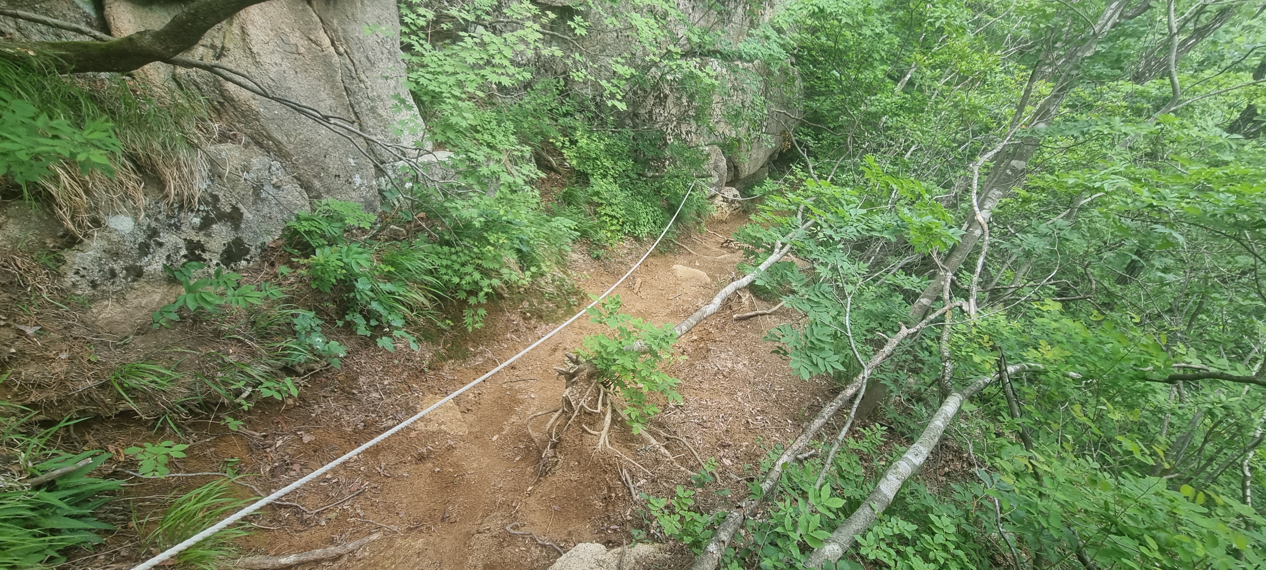 다시 이정표 있는 곳으로 와서, 로프 구간 내리막길을 지나쳐서,