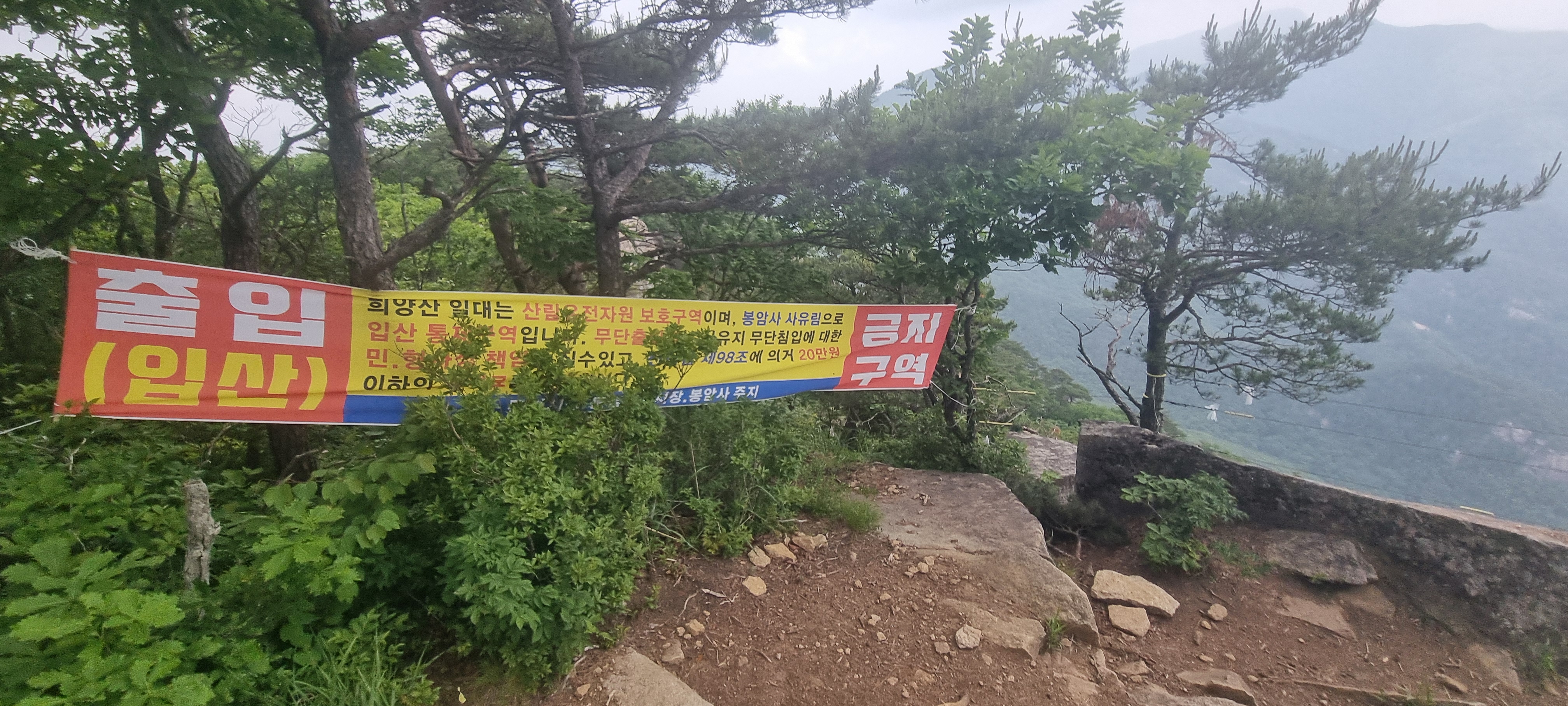 역시나 정상 반대편 방향은 봉암사 사유림이라서 출입 금지 입니다.