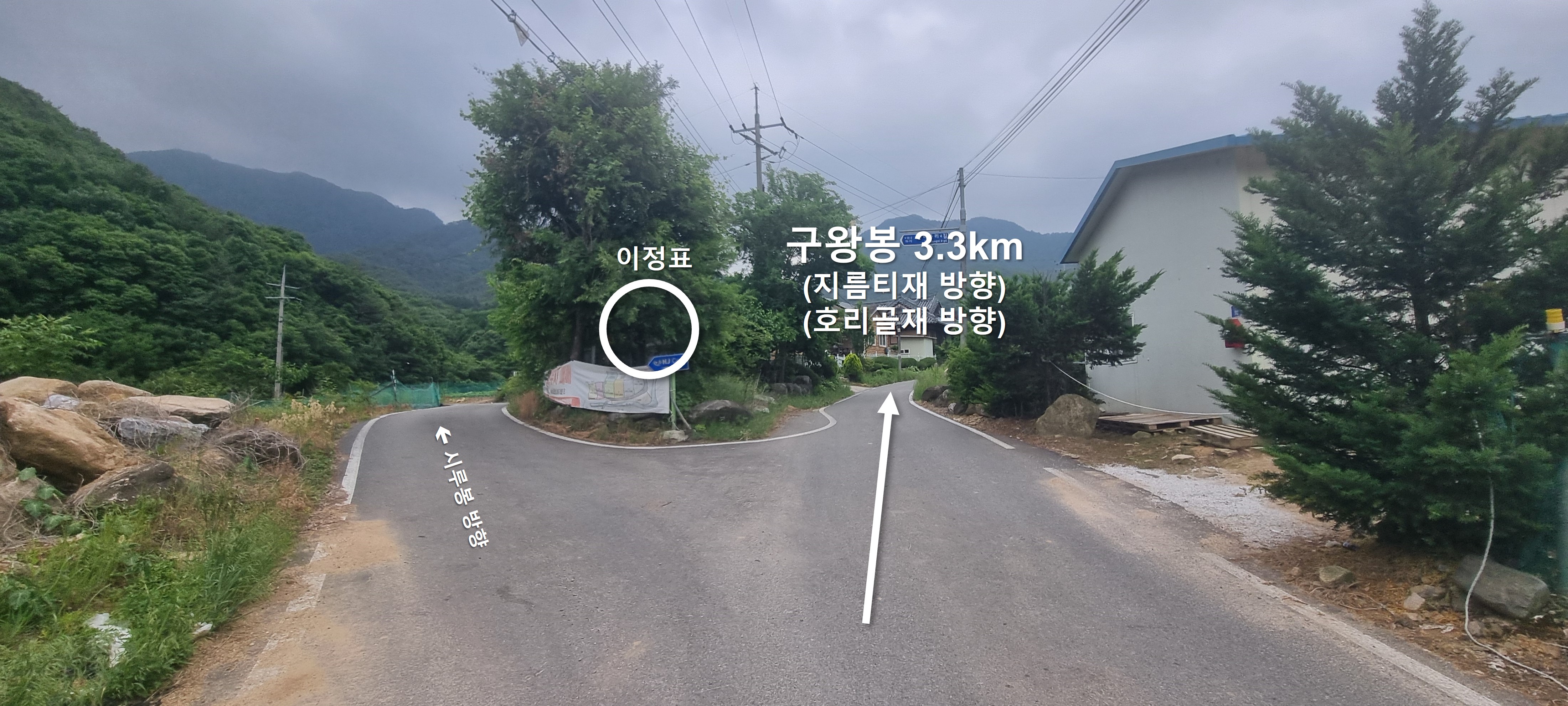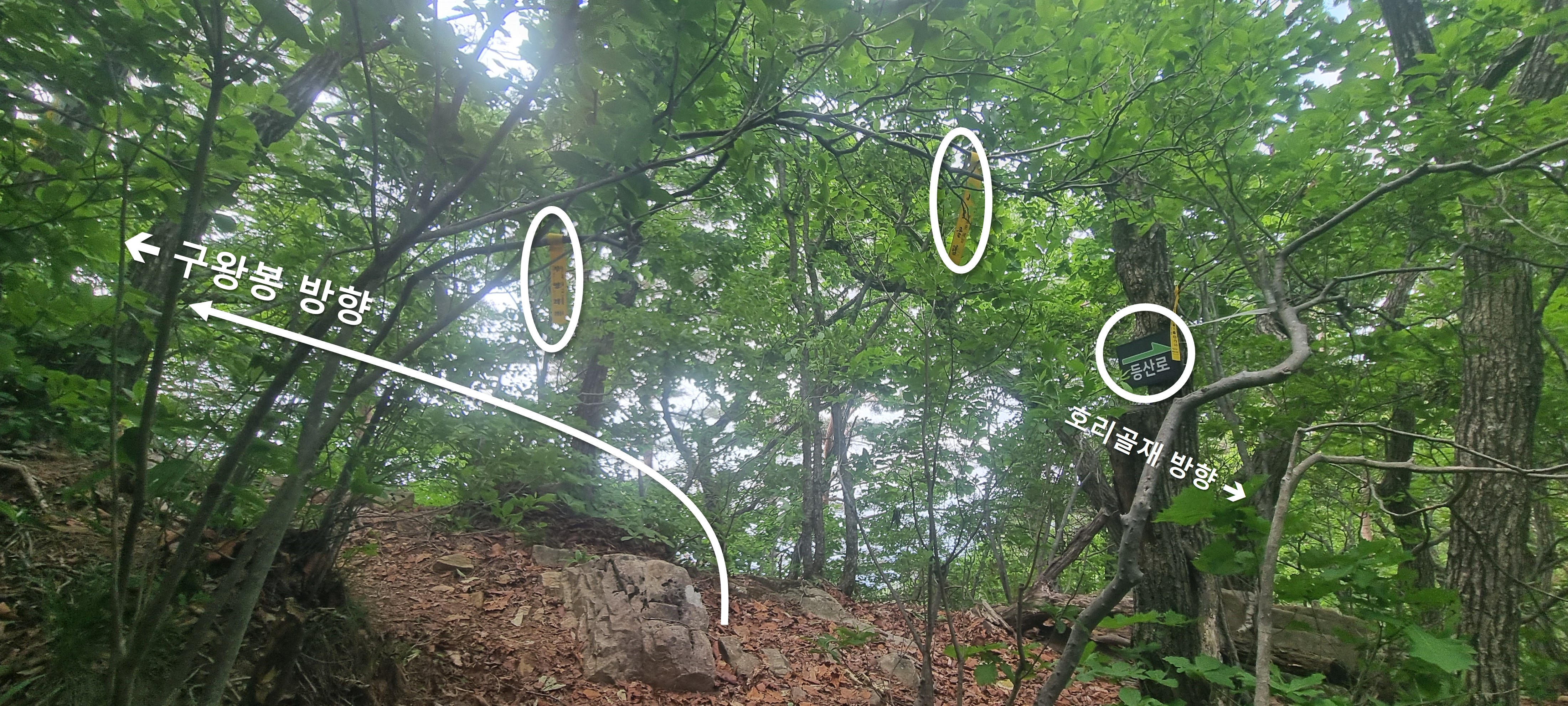처음 호리골재 방향으로 갈라졌던 삼거리로 다시 합류 했네요.