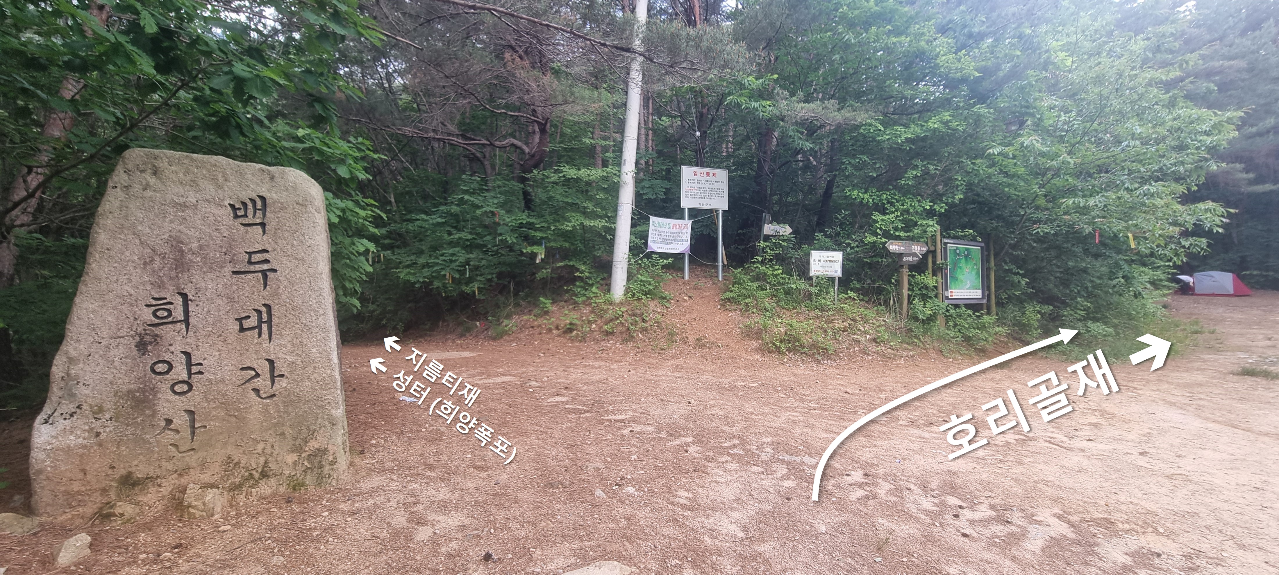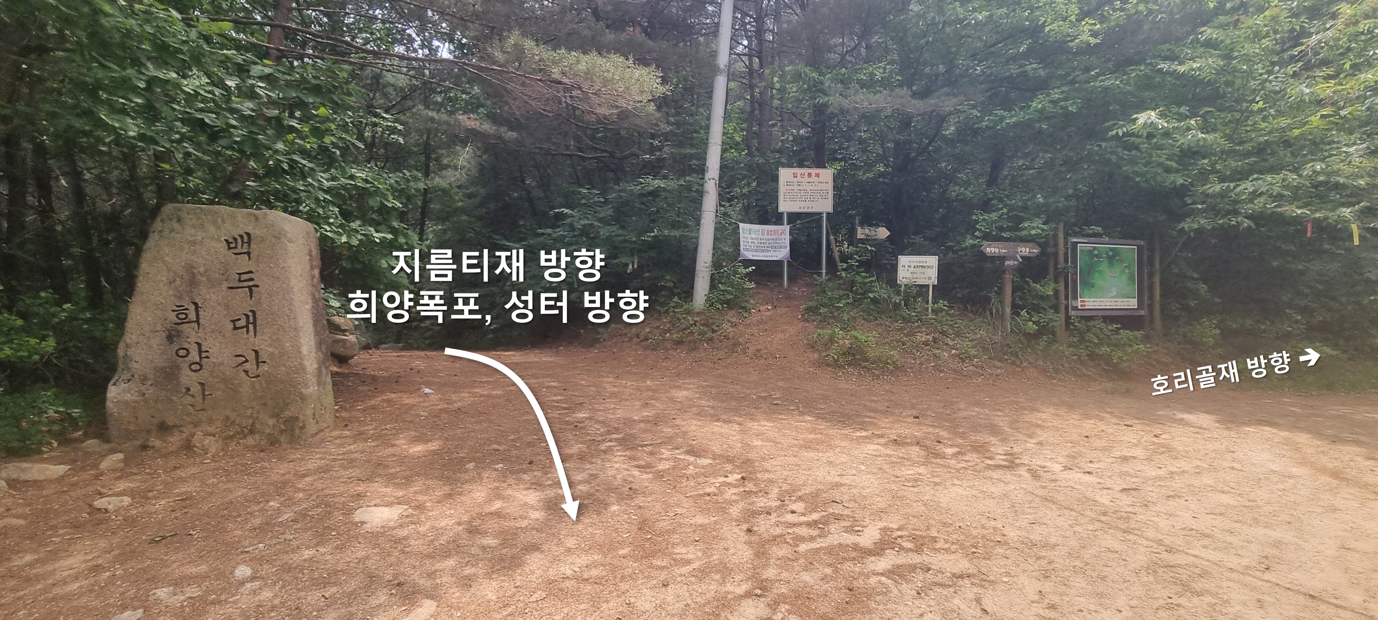 '성터' '희양폭포' 계곡길로 내려오시는 걸 선택합니다. 가장 무난한 코스 선택.)
