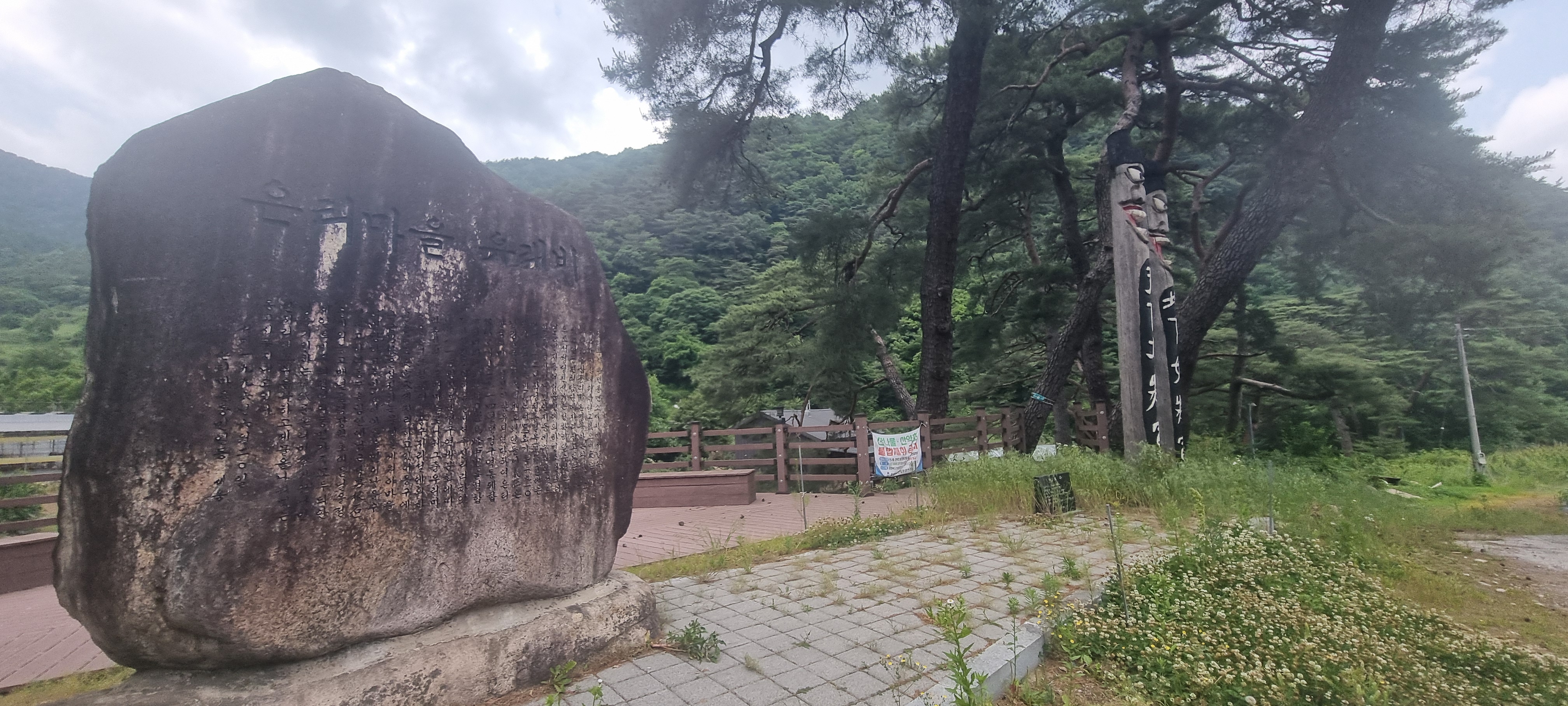 바위에 유성펜으로 글씨가 써져있는데, 좀 헷갈리게 적혀 있네요.