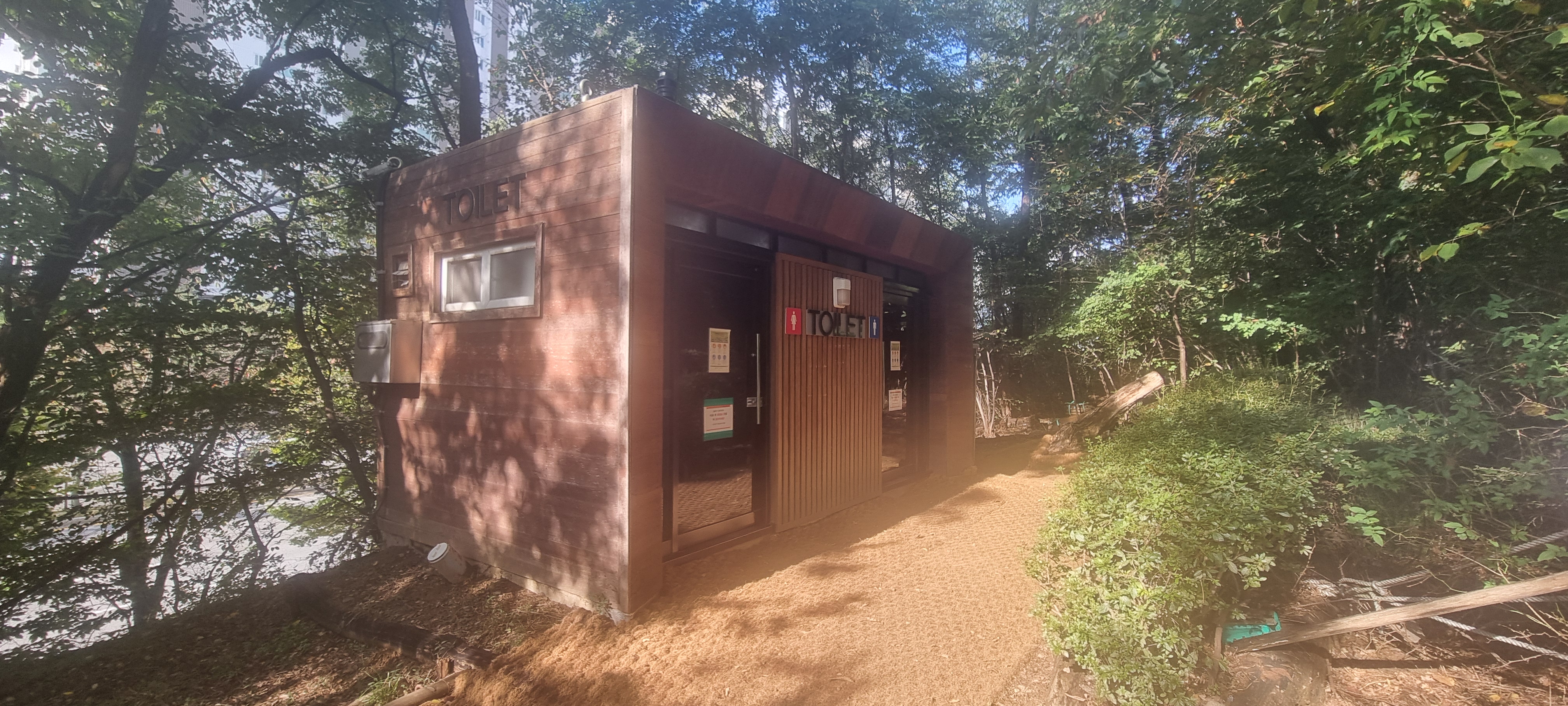 도로쪽 인도에서는 화장실이 나무에 가려 보이진 않지만, 냄새는😰 쫌 납니다.