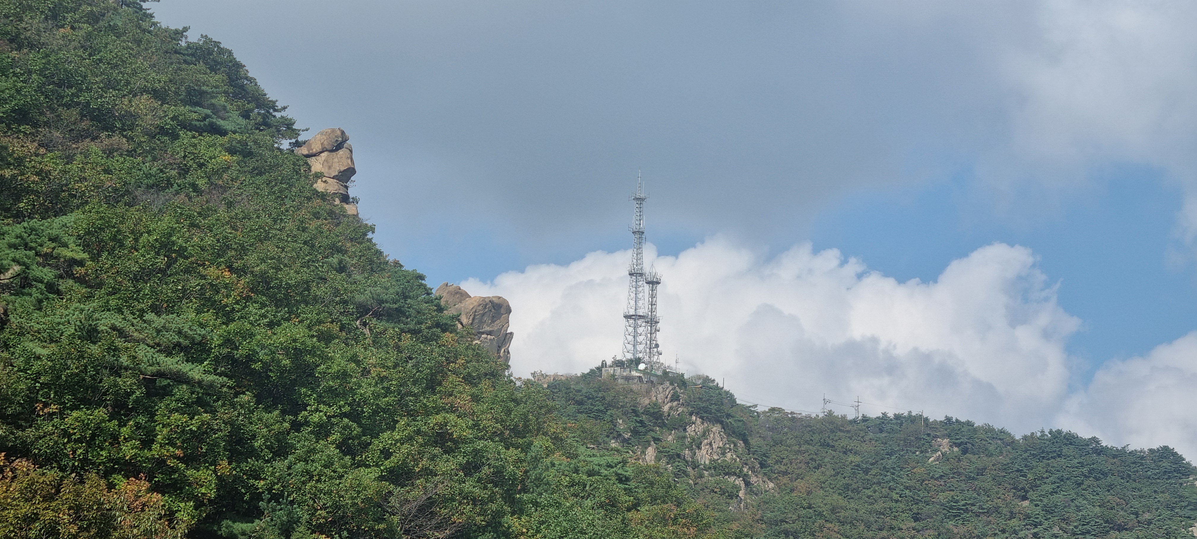 '삼성산A코스'를 타고 올라와서, '제1,2전망대'를 지나, '학우봉'을 넘어서