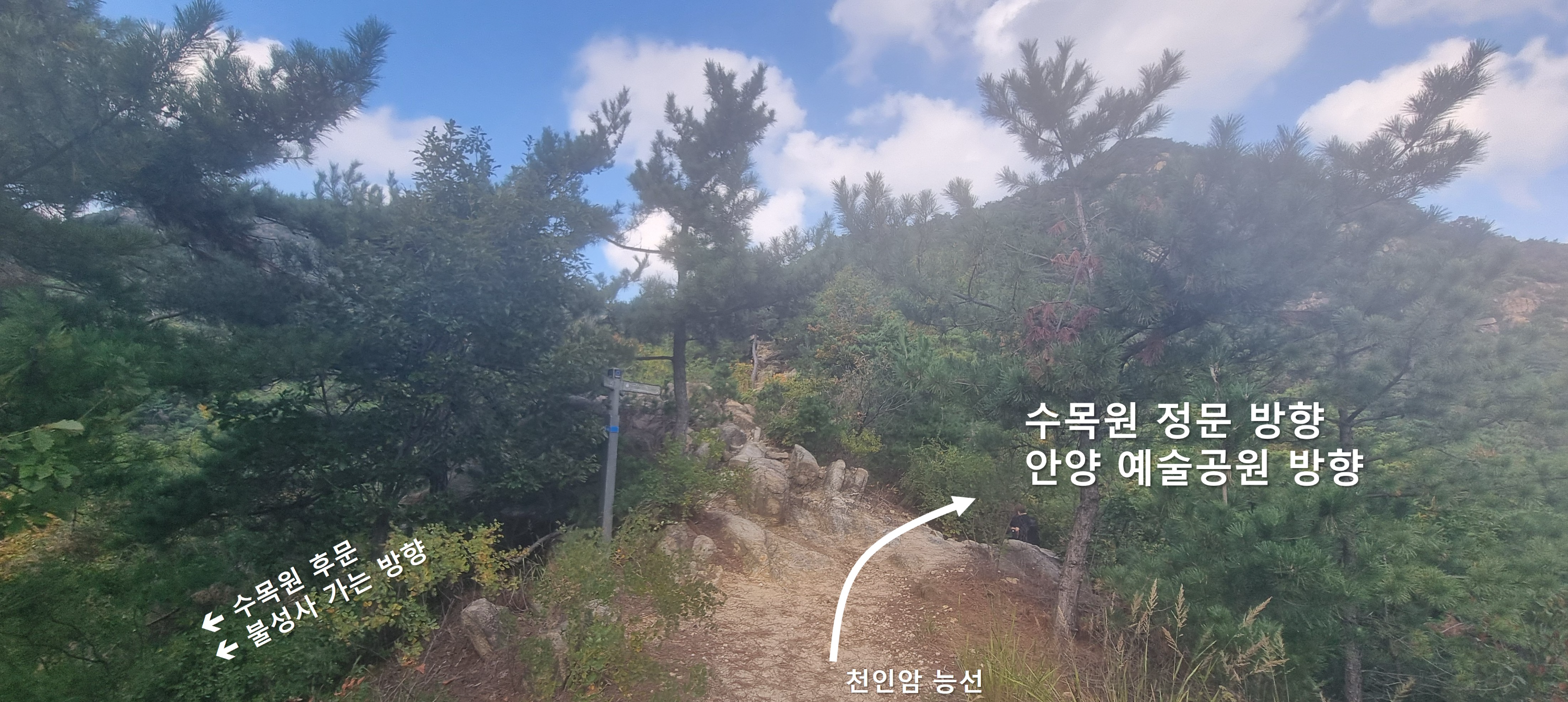 제가 내려왔던 '천인암 능선' 길의 방향은 이정표 표시가 없습니다.